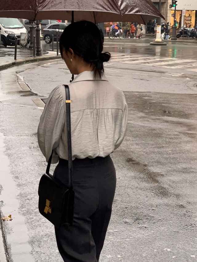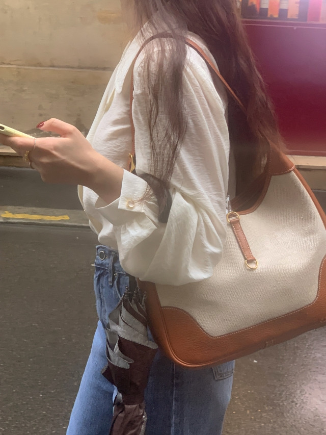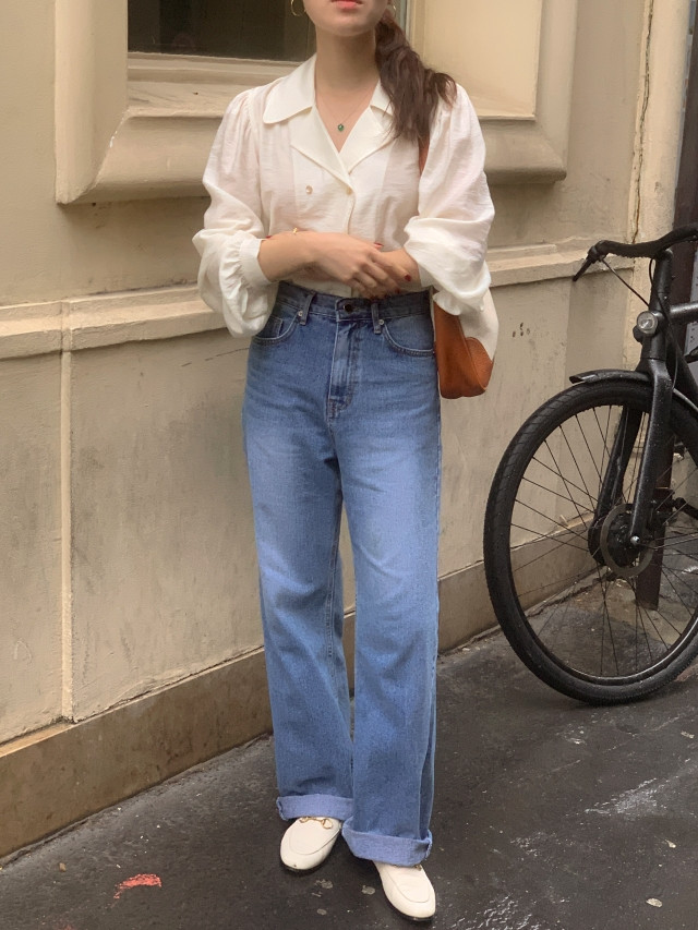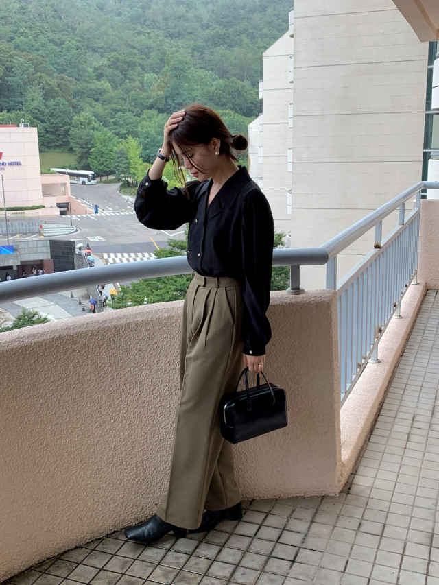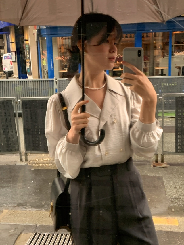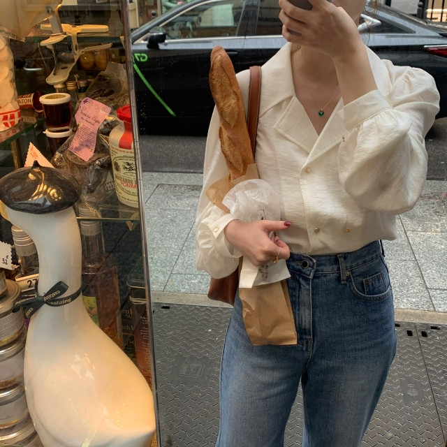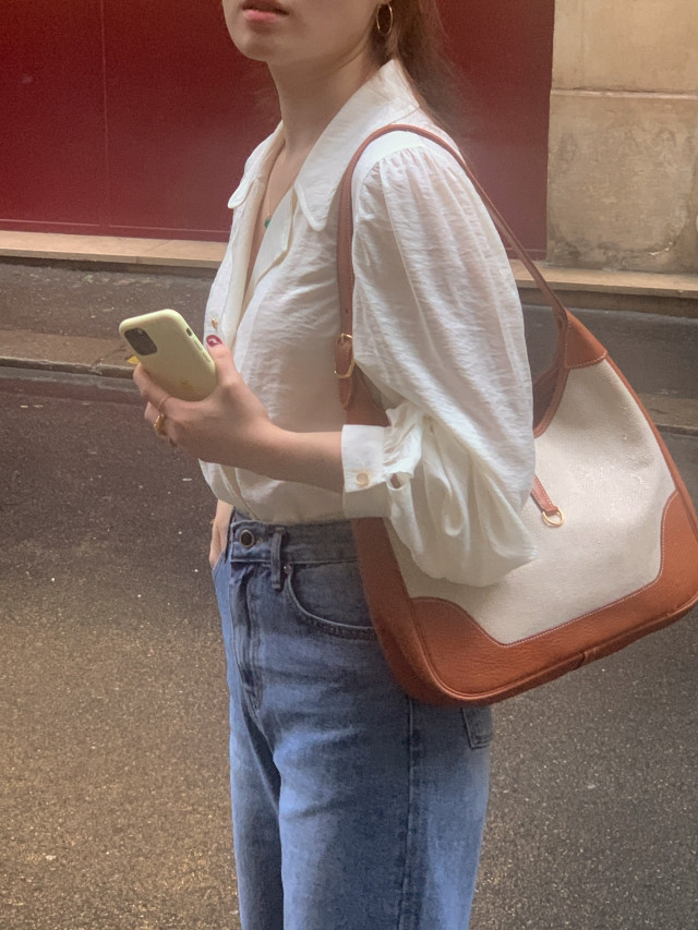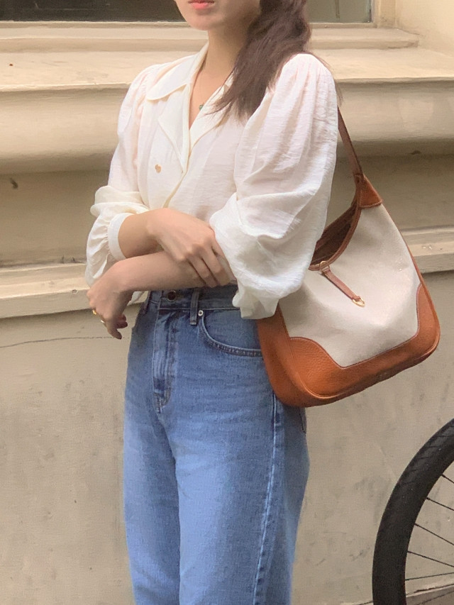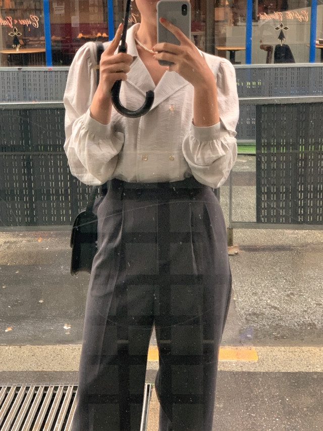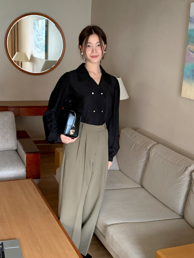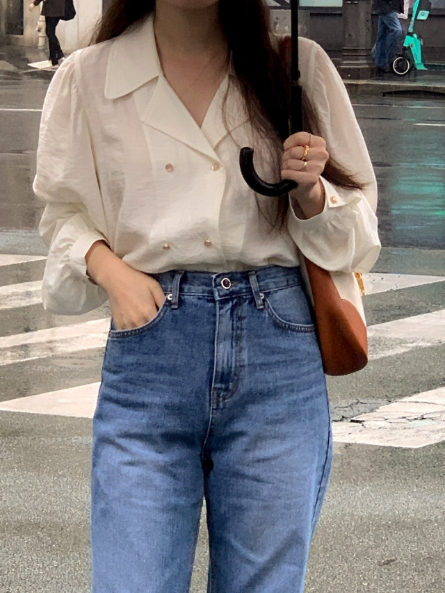 [original] Monetサテンシャーリングカラーパフブラウス