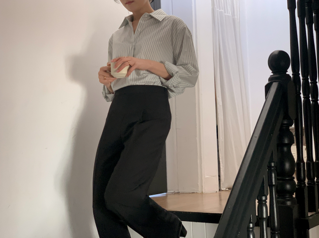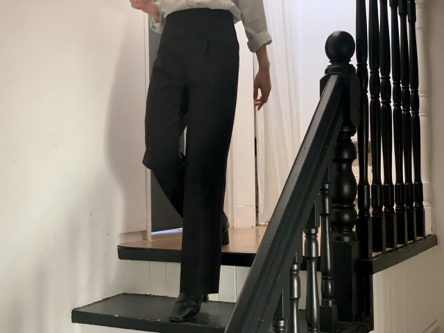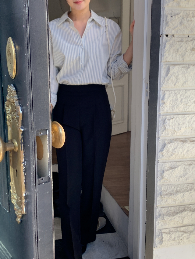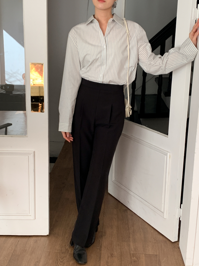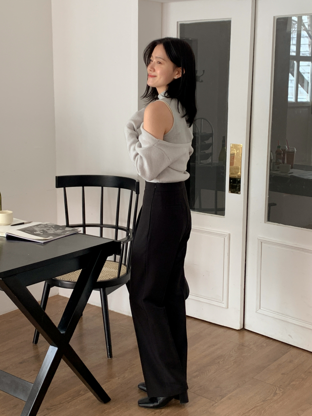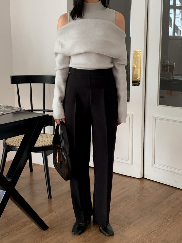 [original] Modernハイウエストセミワイドピンタックスラックスパンツ