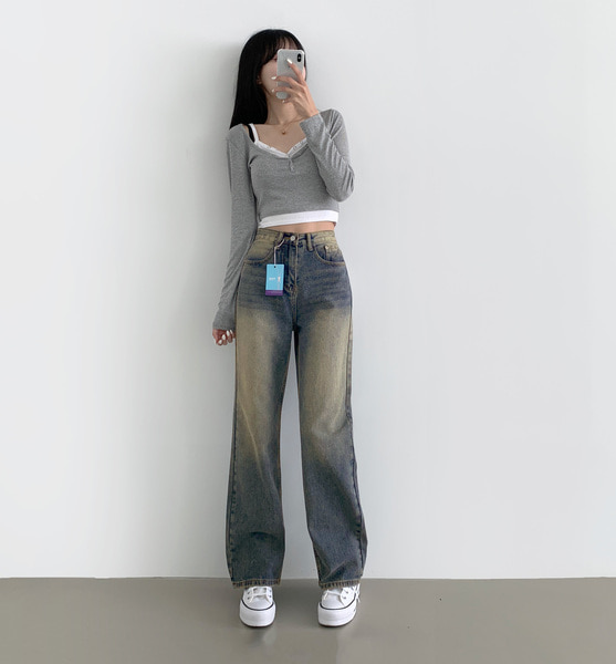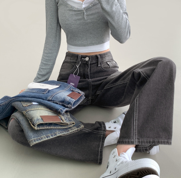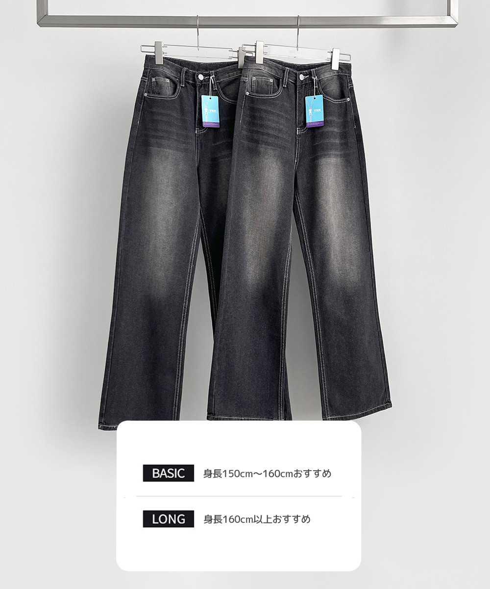 (basic/long)オリジナルウォッシュデイリーデニムロングワイドパンツ
