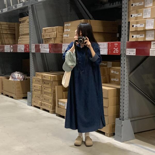 ロングデニムシャツオーバーサイズ長袖ワンピース