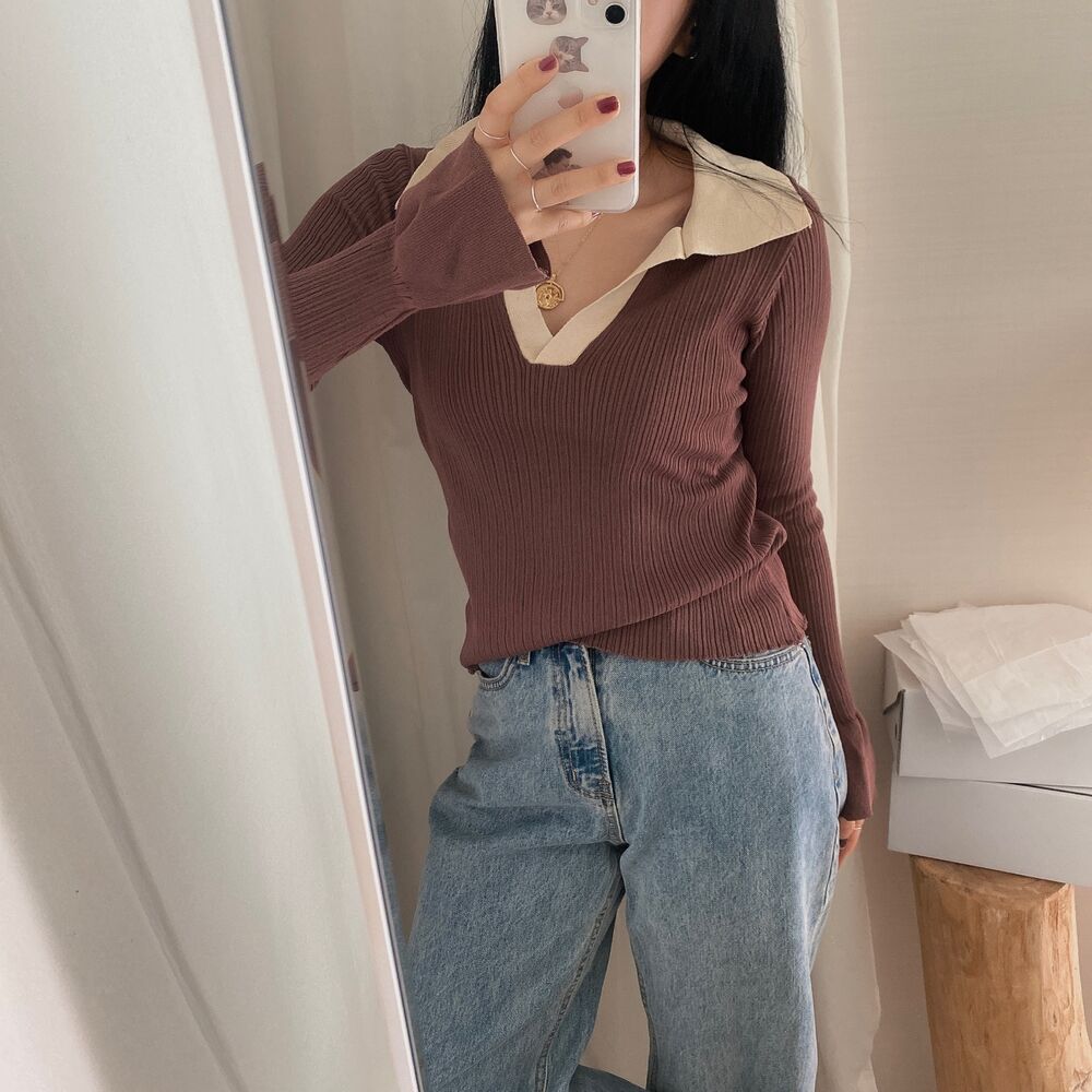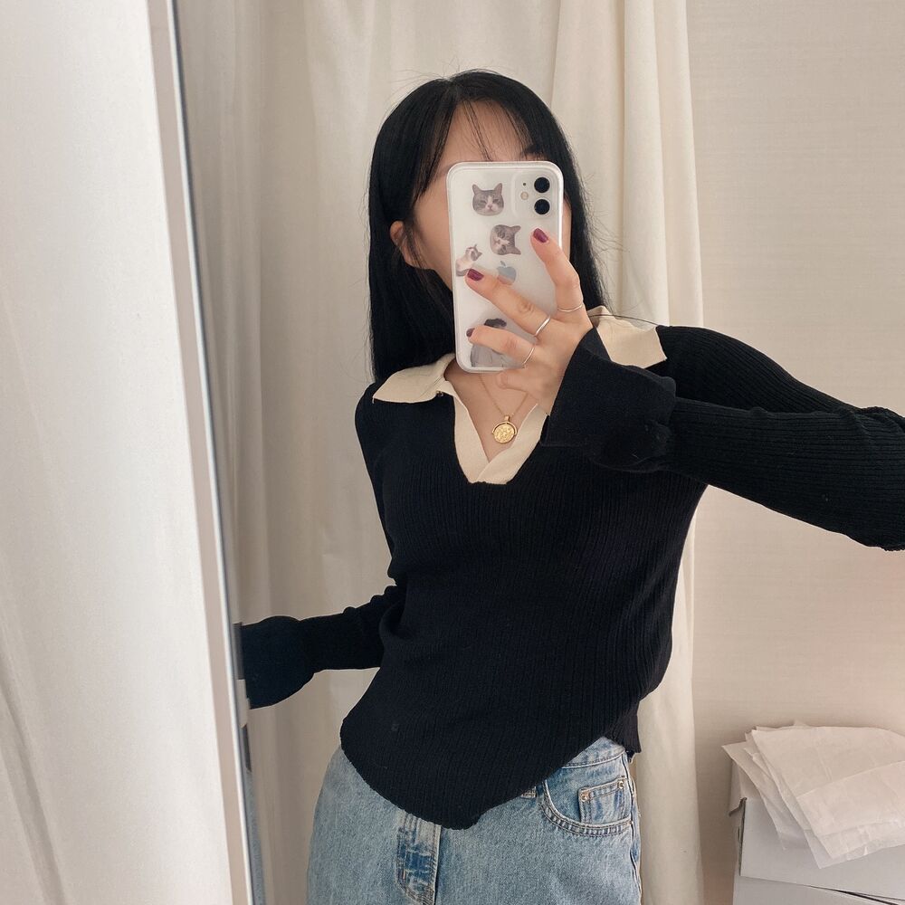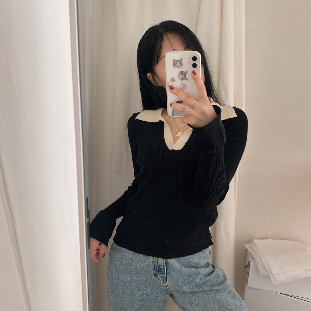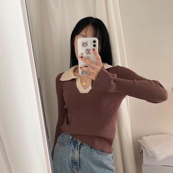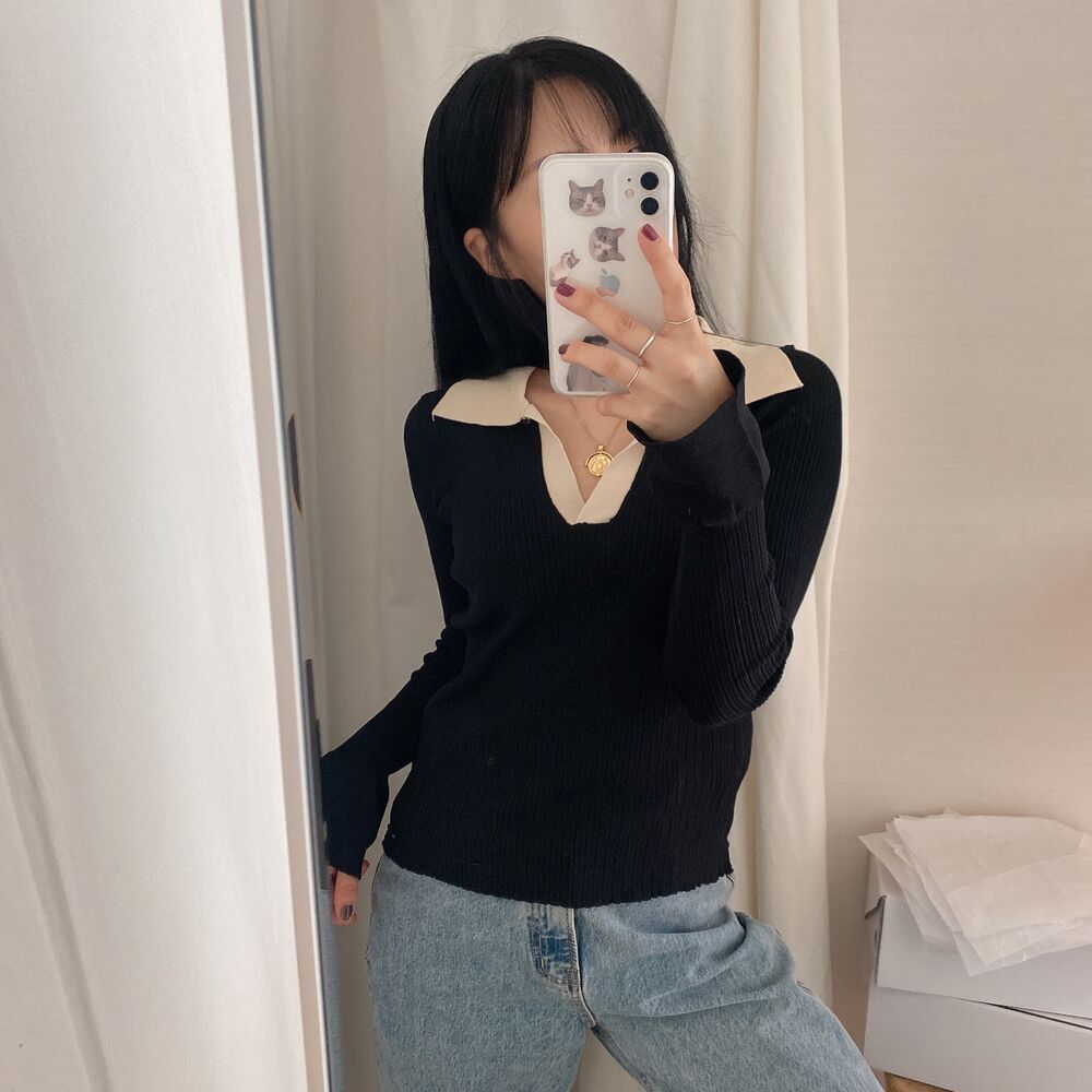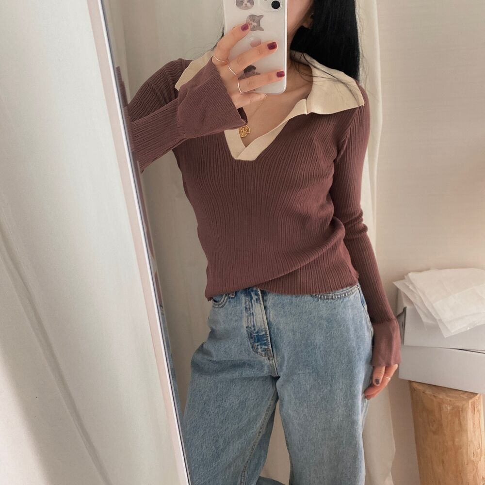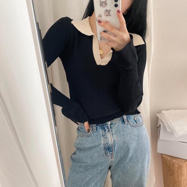 カラーVバイカラーニット