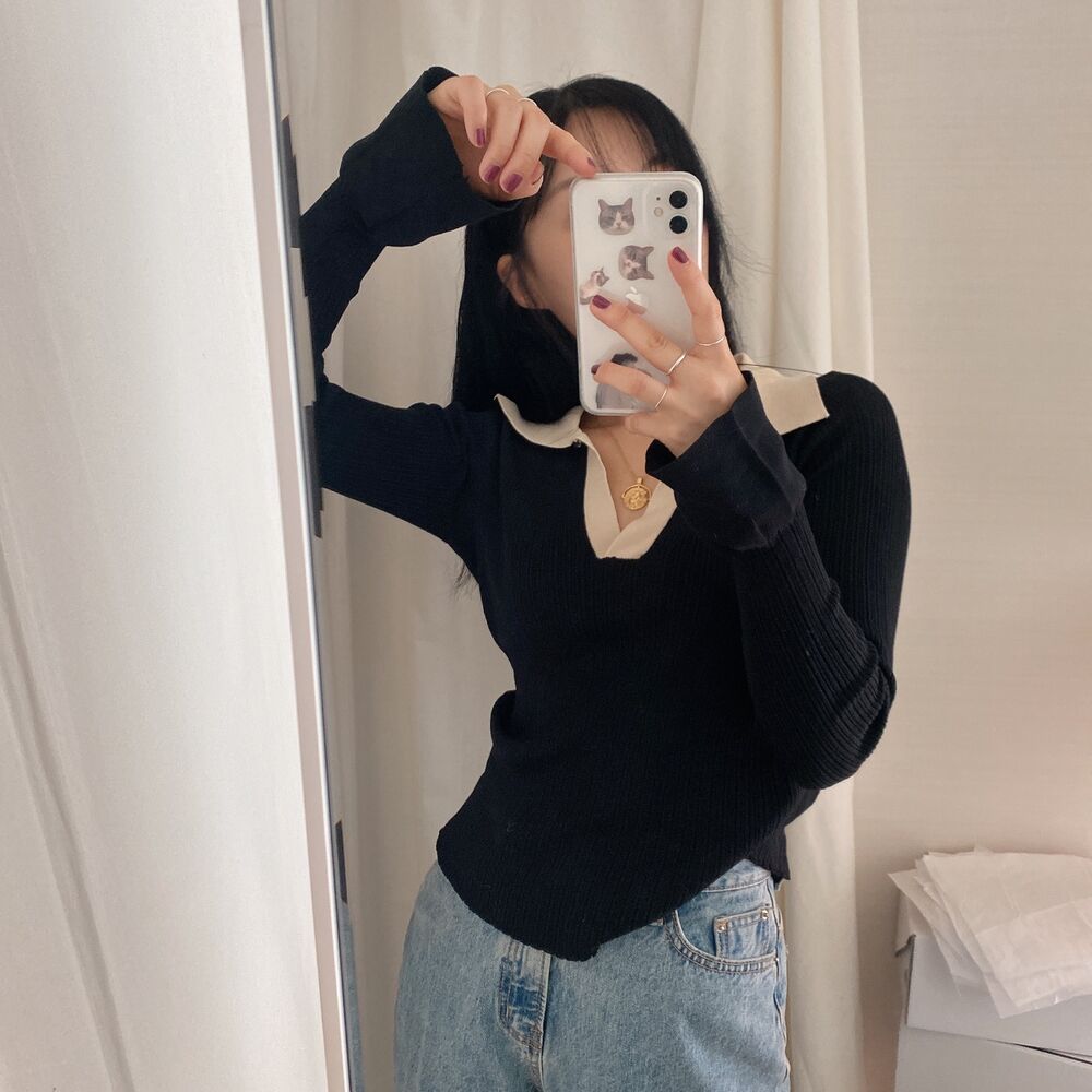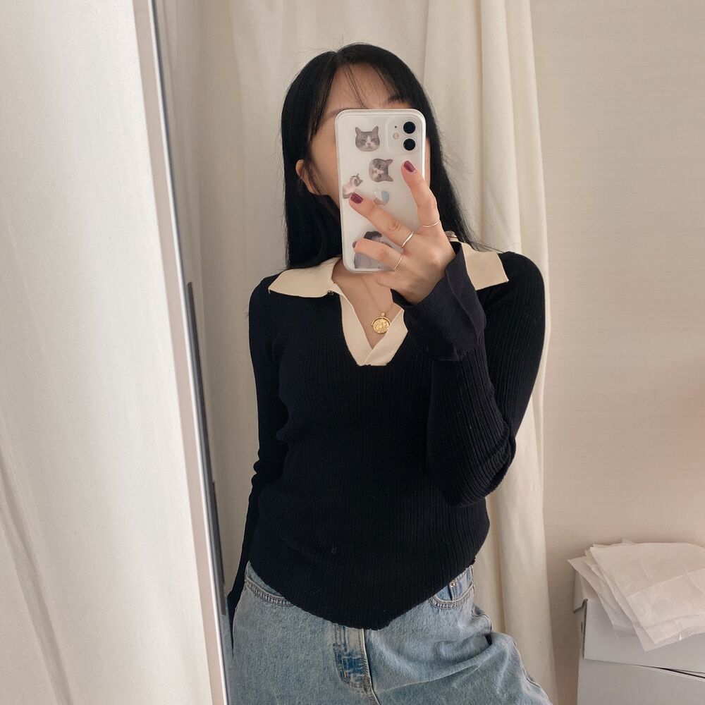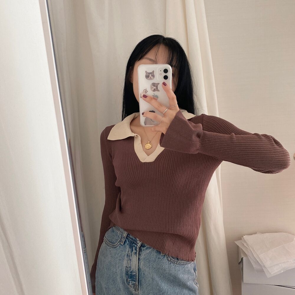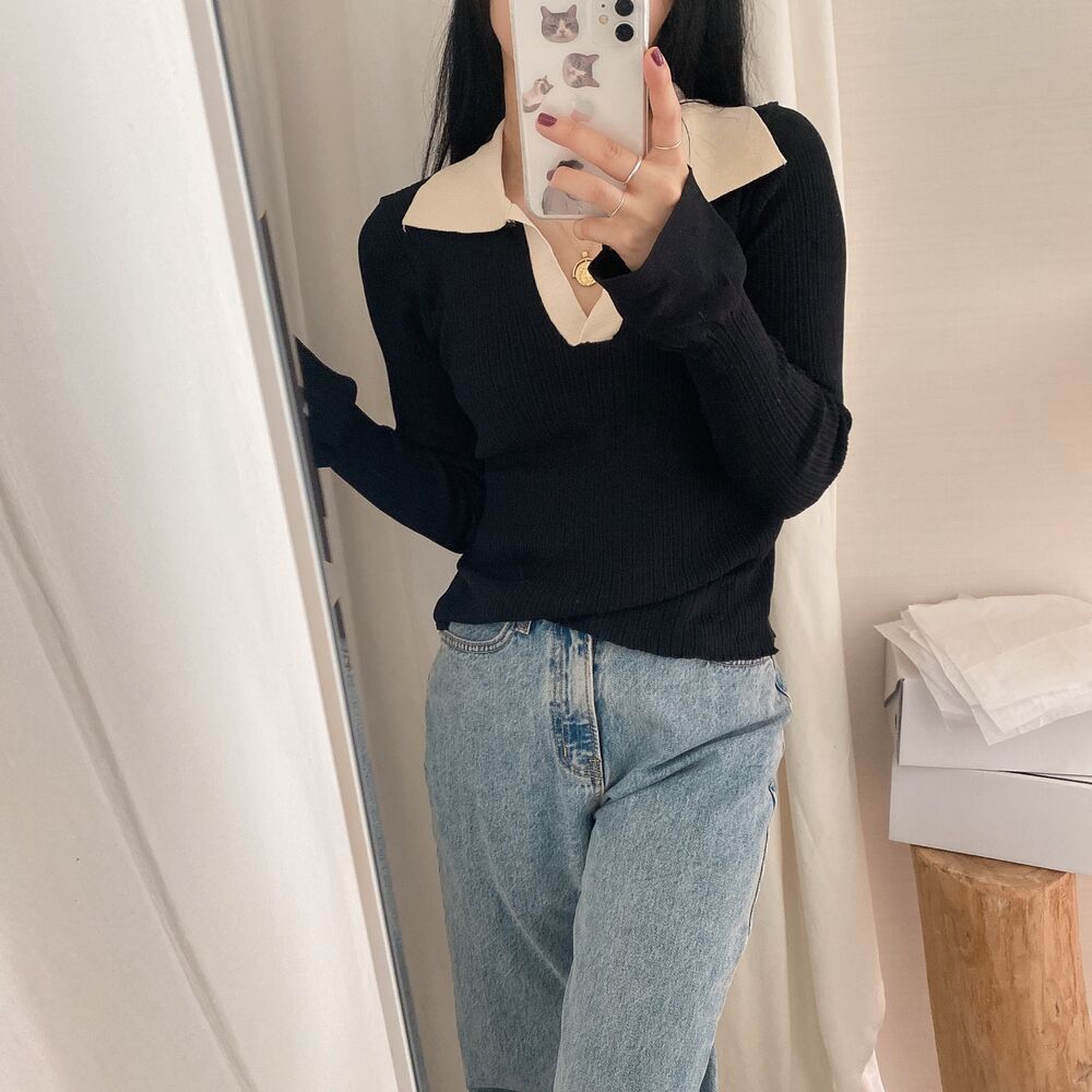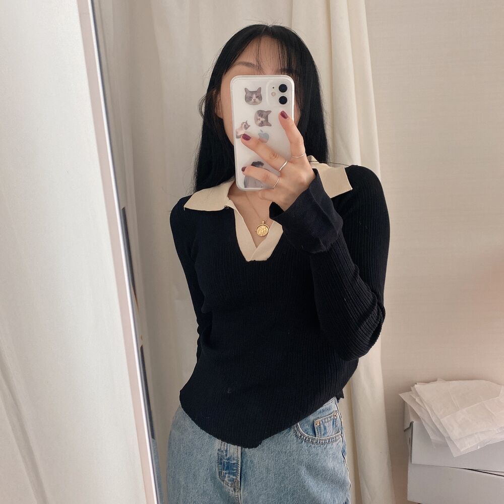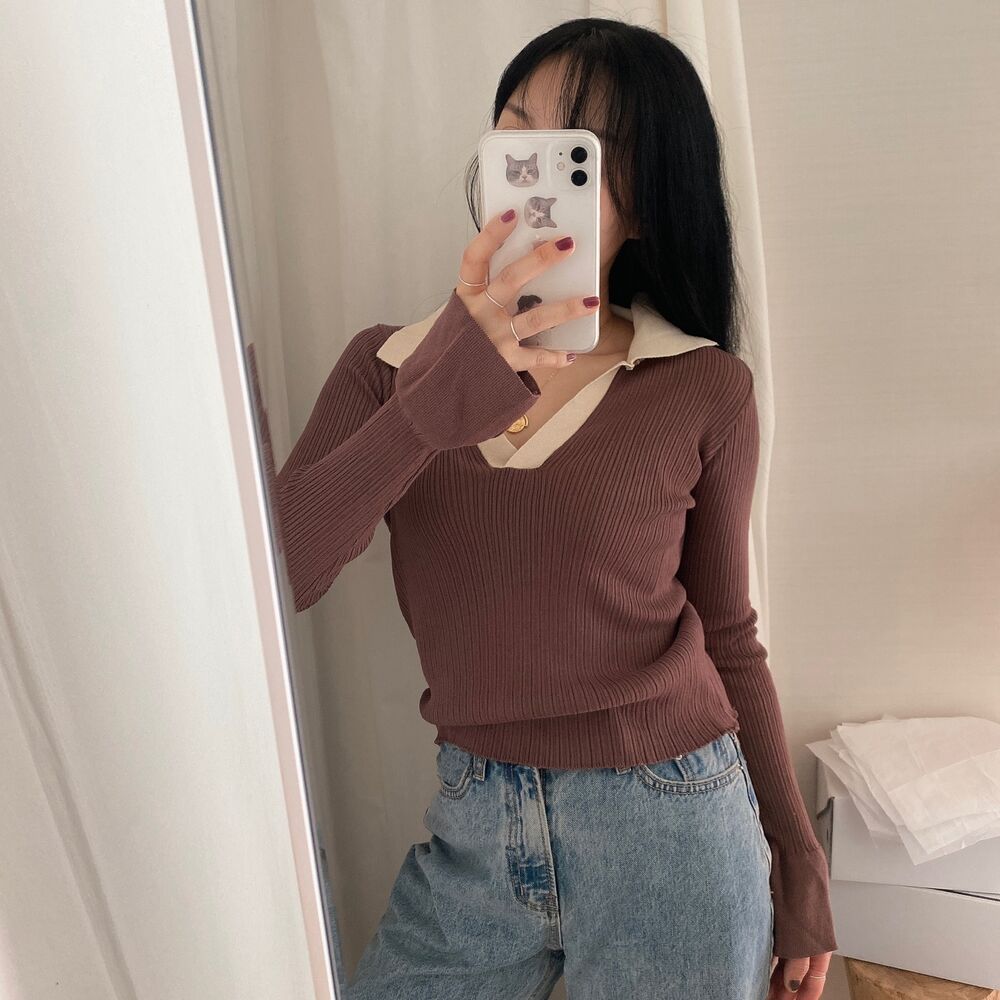 カラーVバイカラーニット