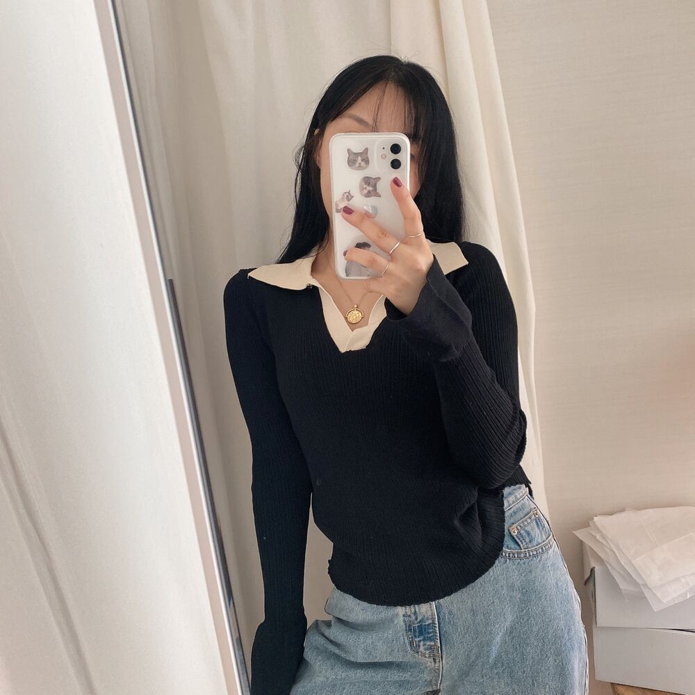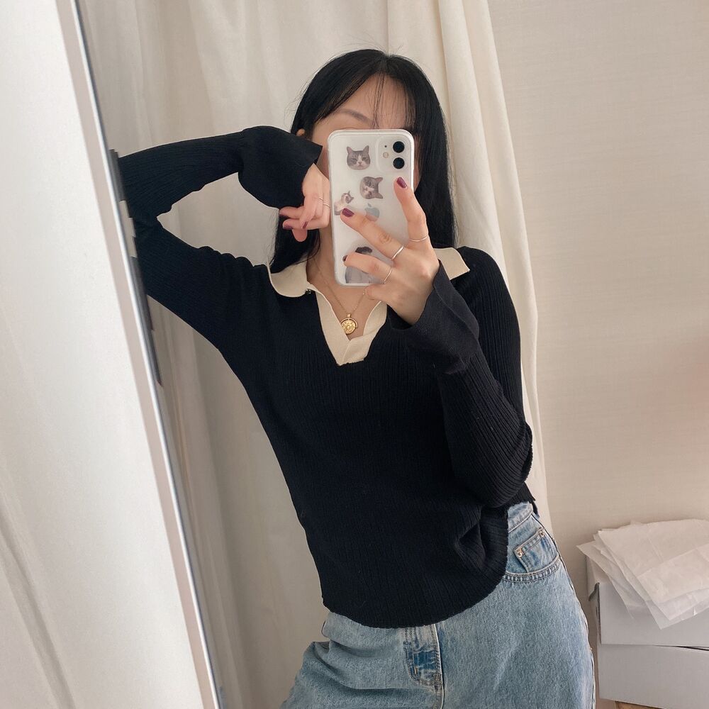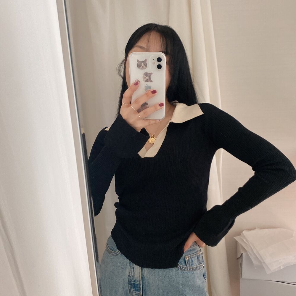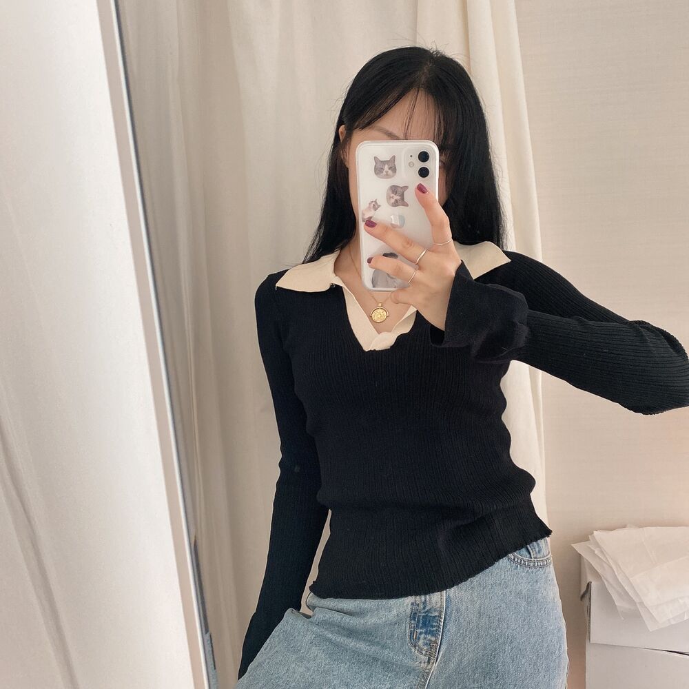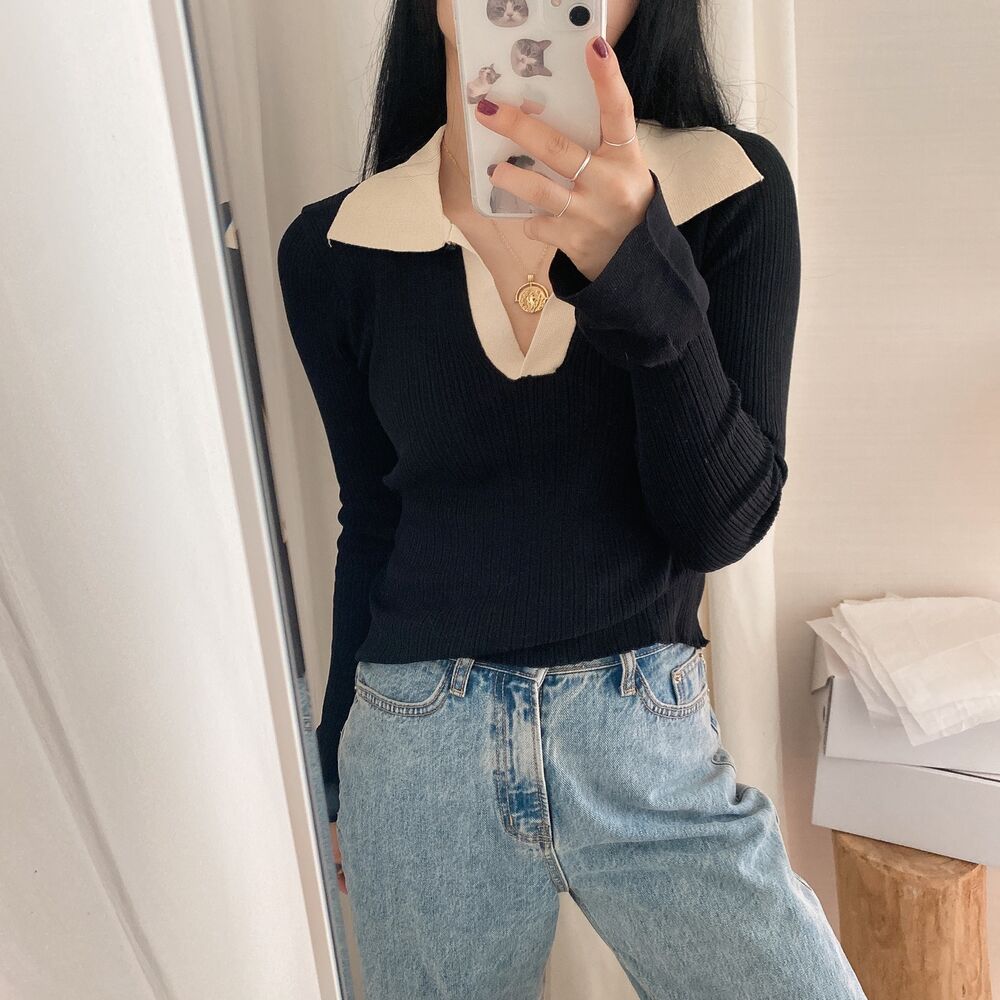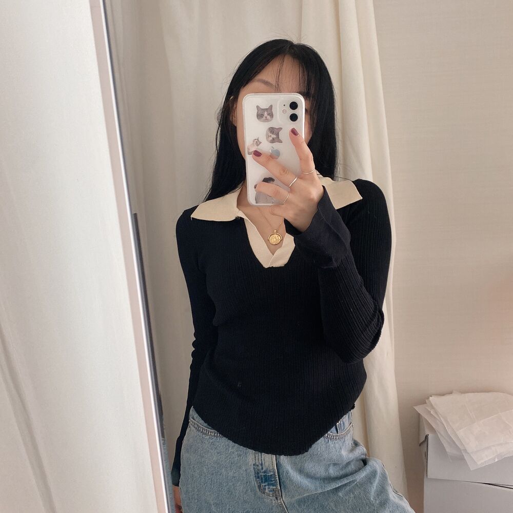 カラーVバイカラーニット