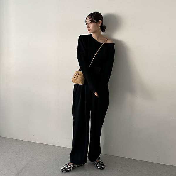 アンバランスオフショルダーニット