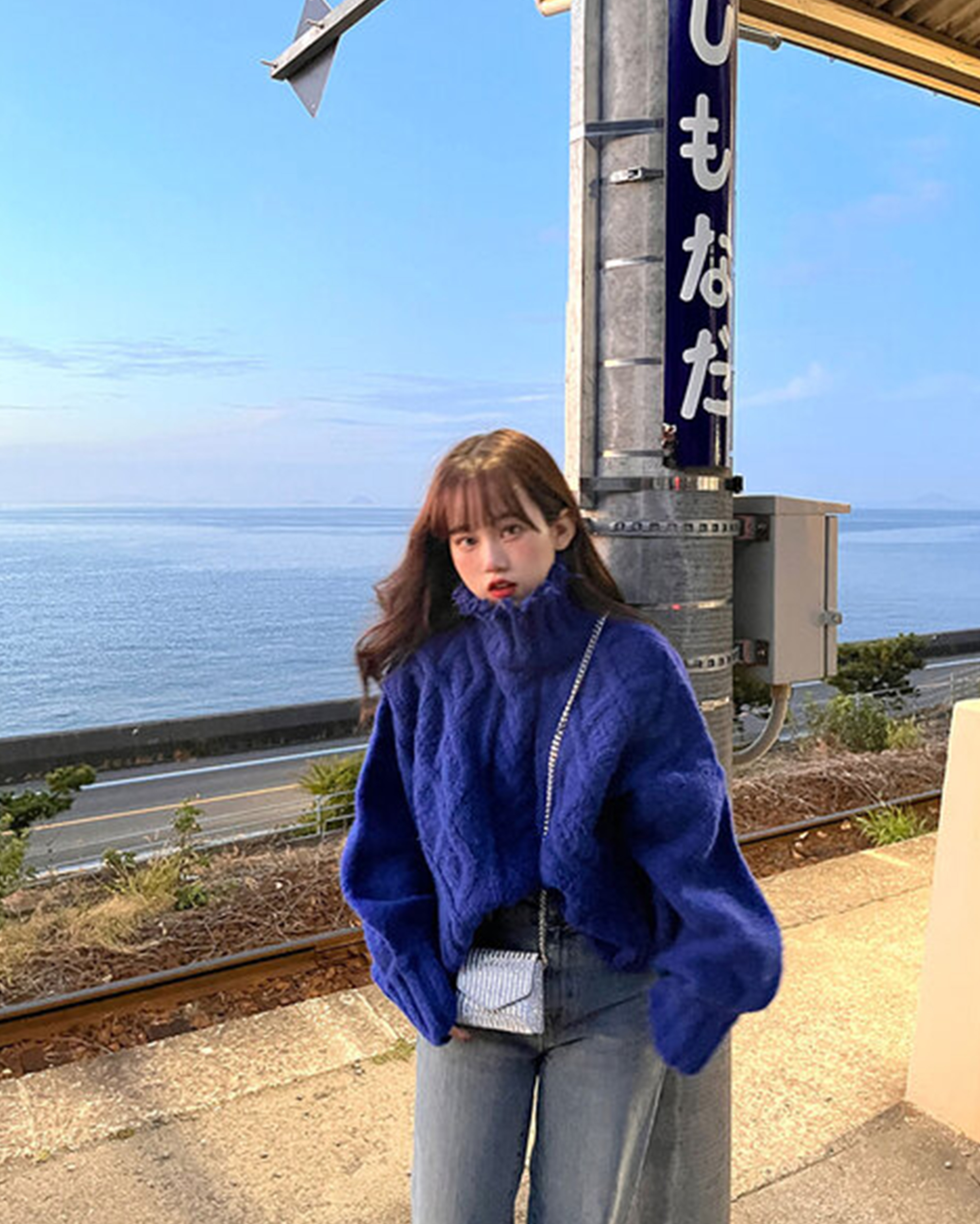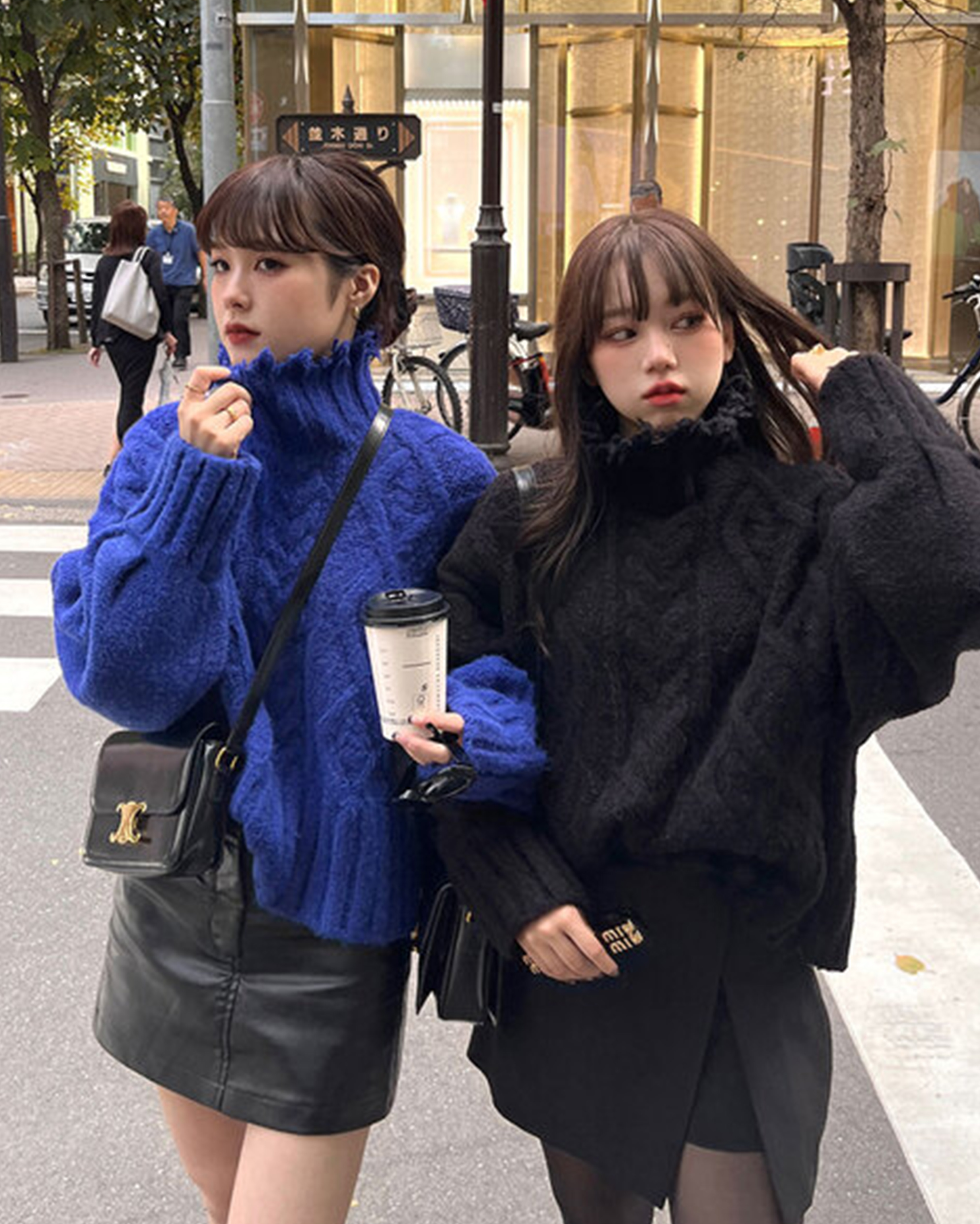 [5回再販](ORIGINAL) ハイネックウール フィッシャーマンニット