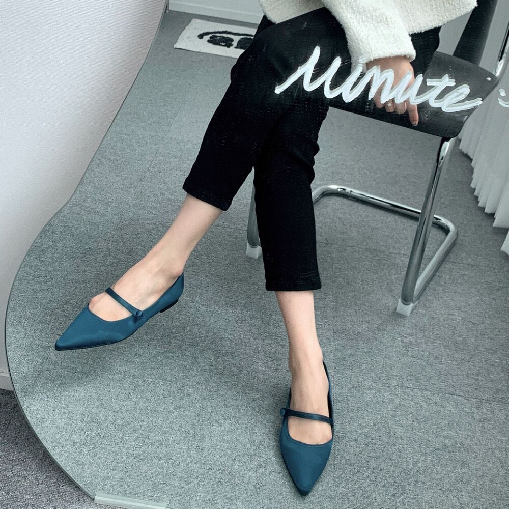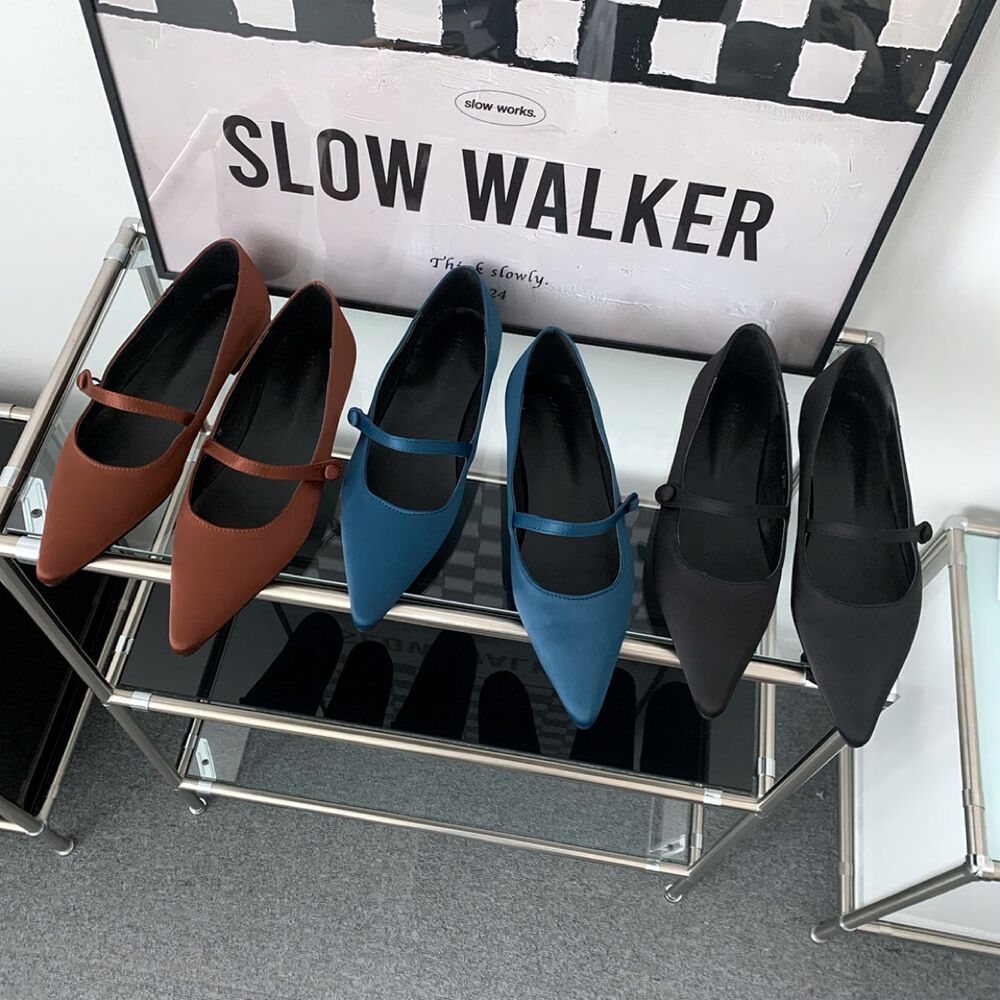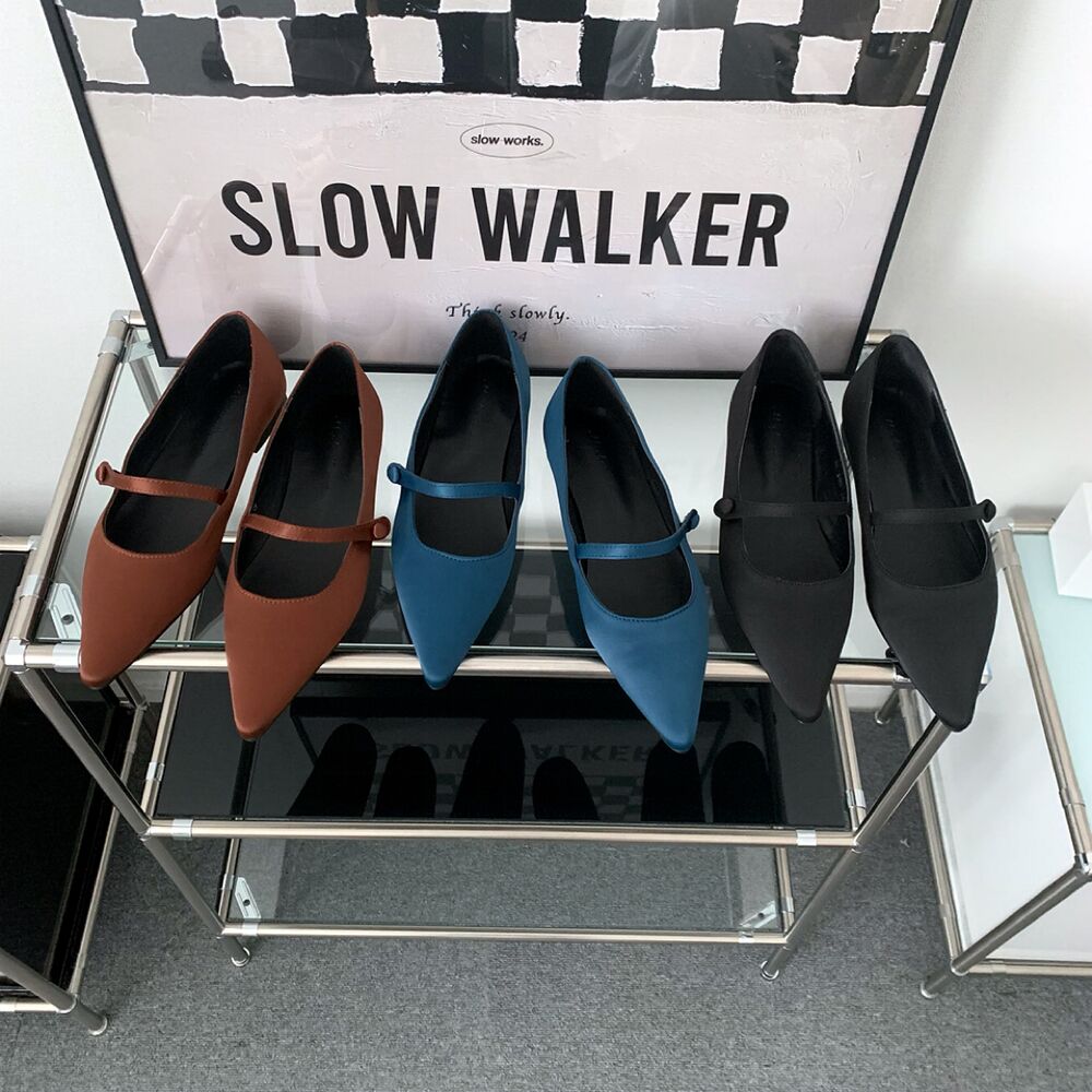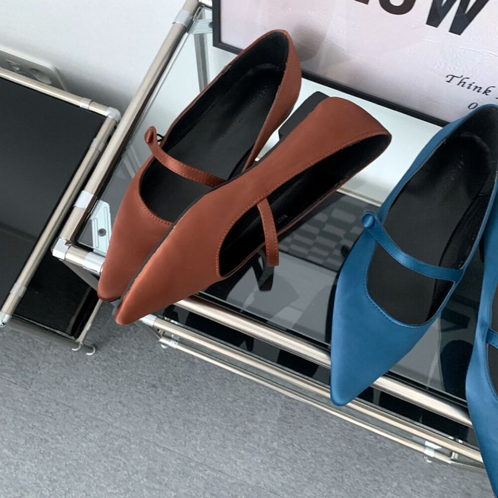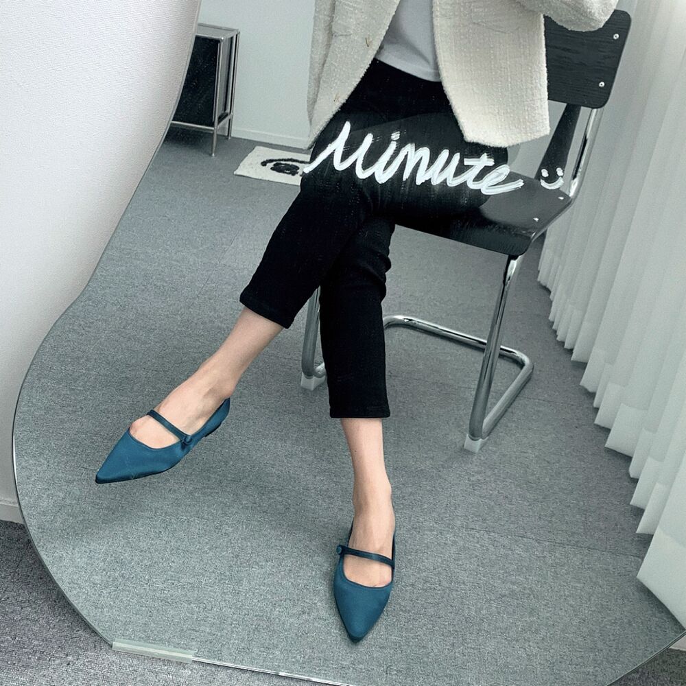 1cmサテンポインテッドトゥメリージェーンフラットシューズ(3color)