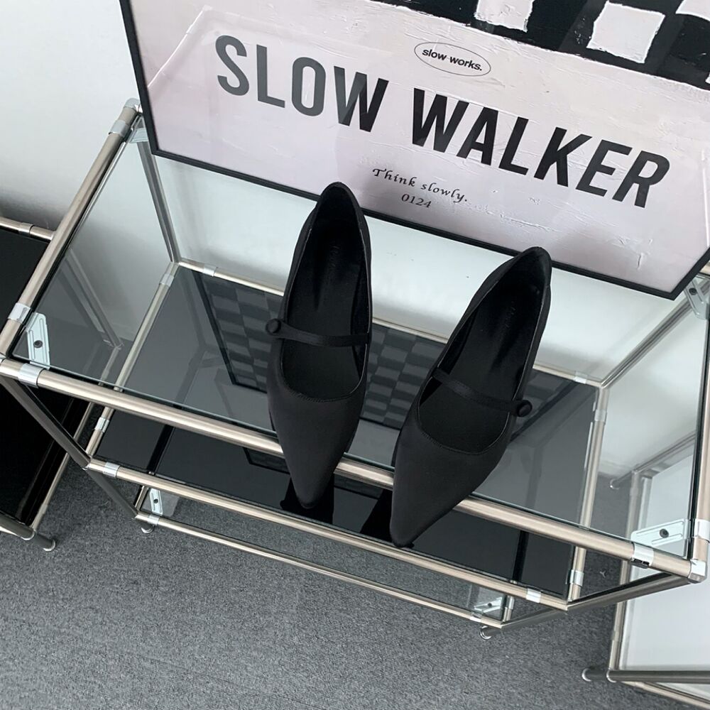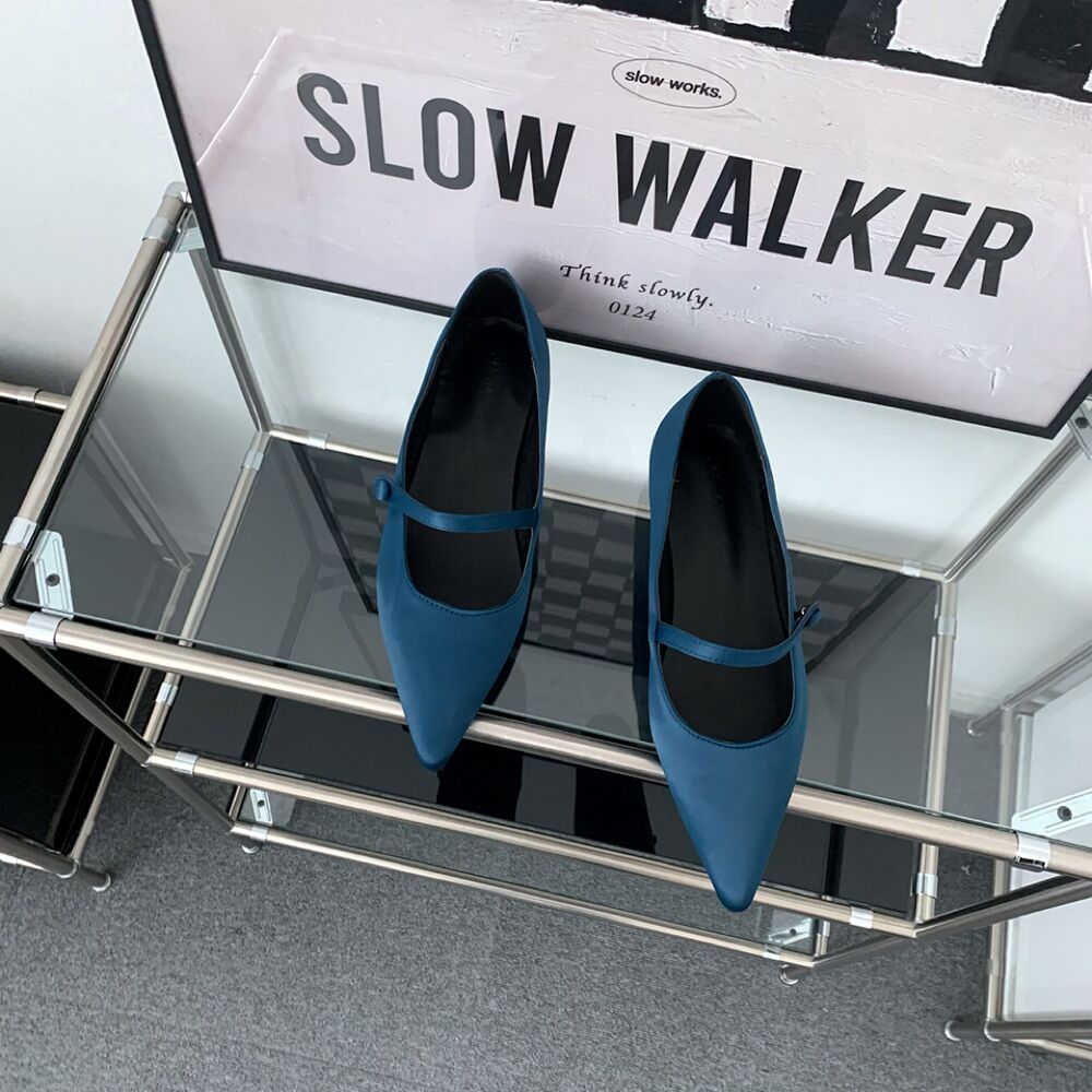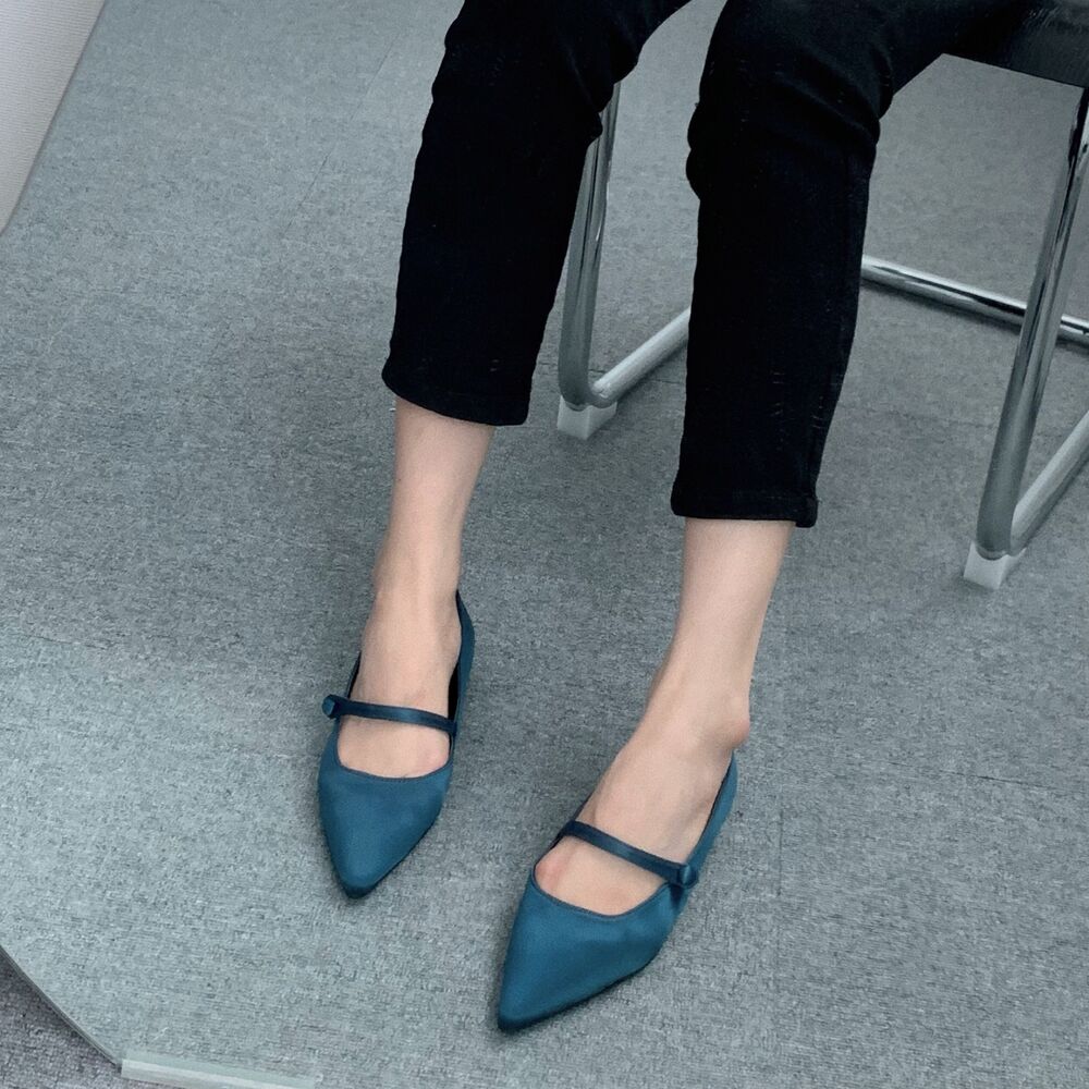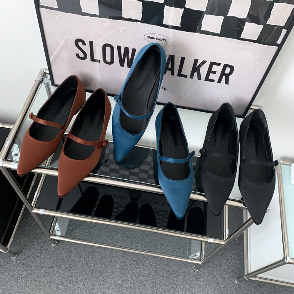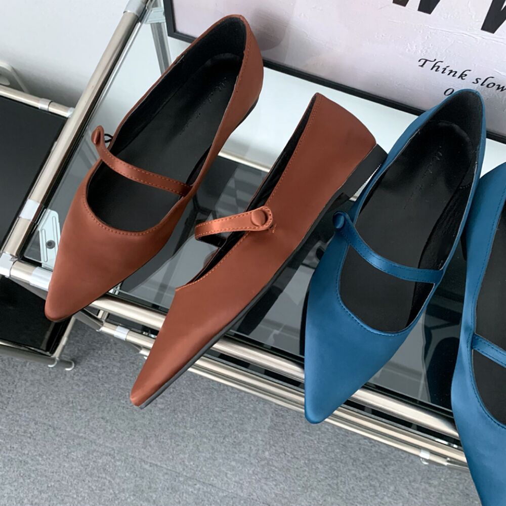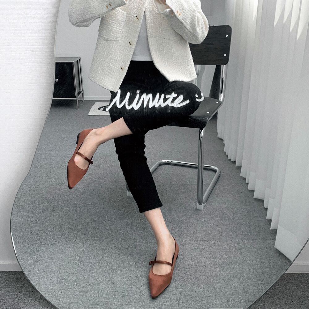 1cmサテンポインテッドトゥメリージェーンフラットシューズ(3color)