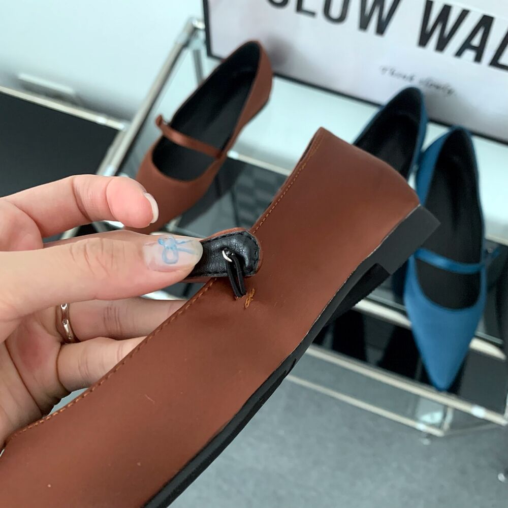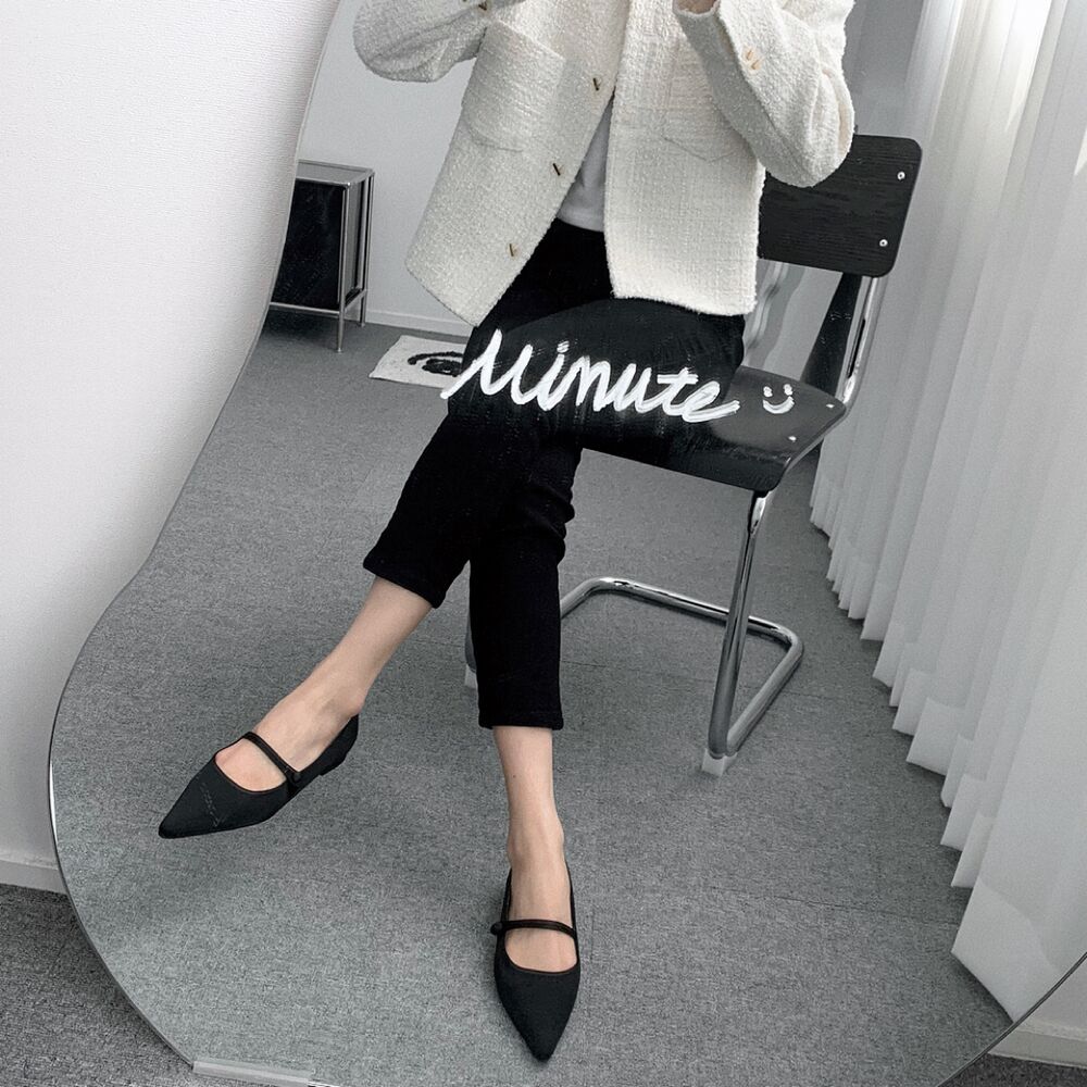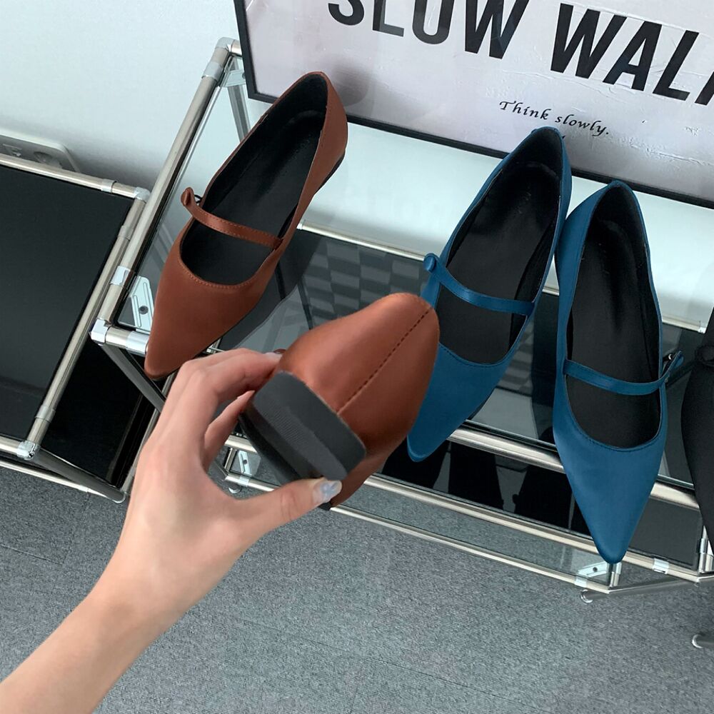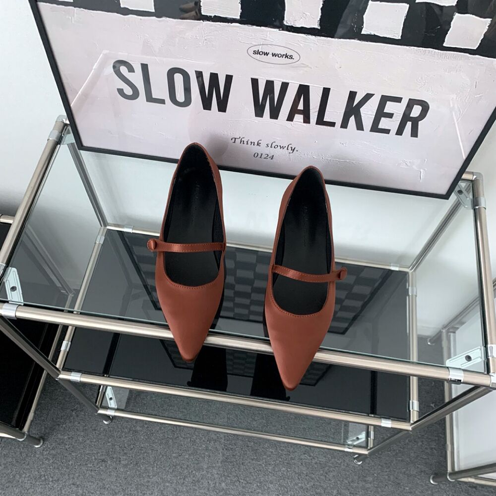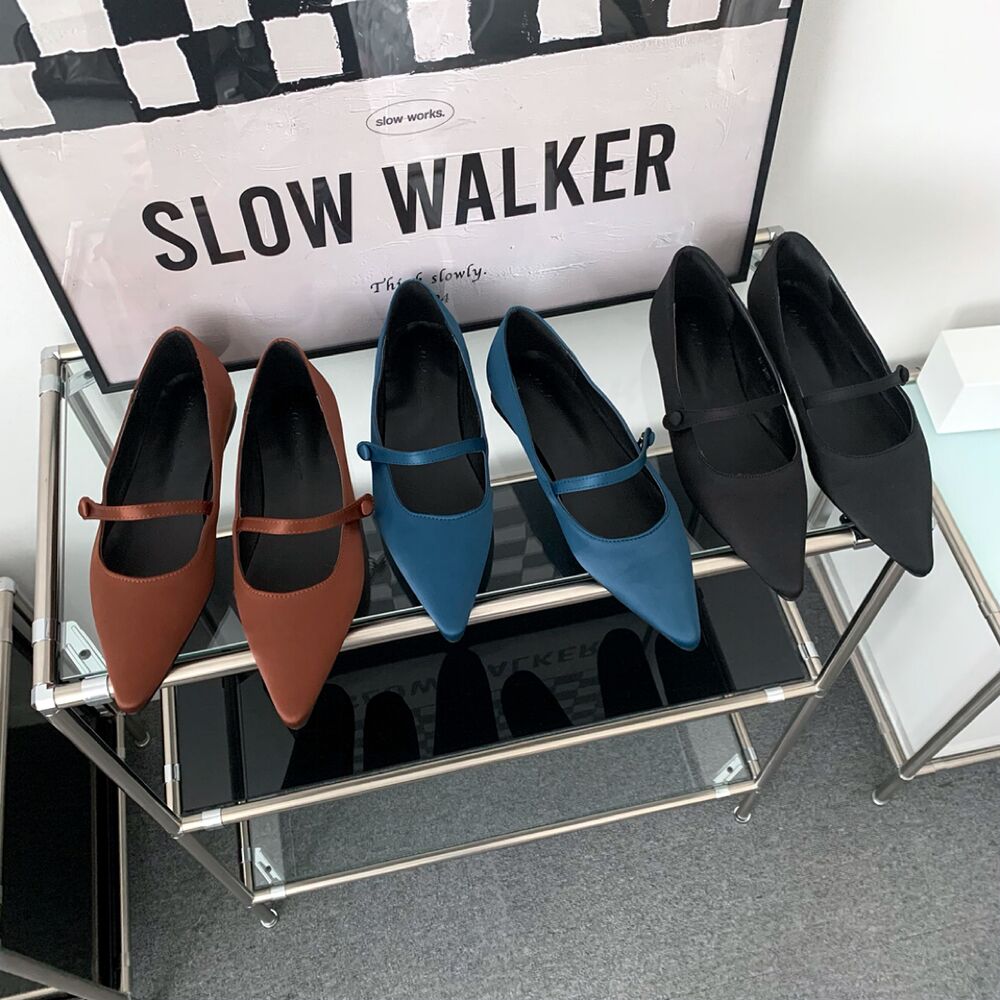 1cmサテンポインテッドトゥメリージェーンフラットシューズ(3color)