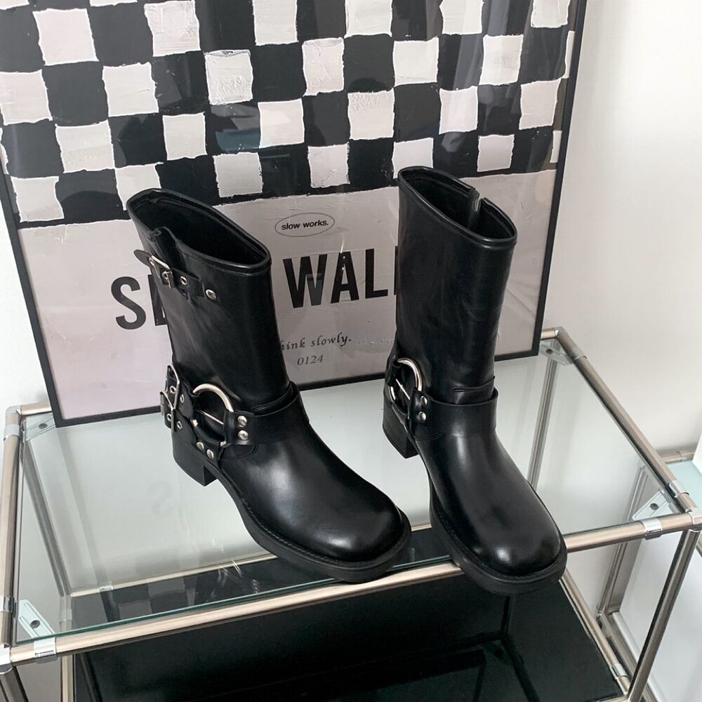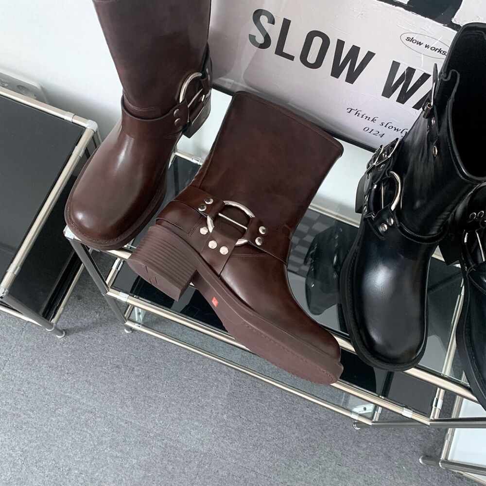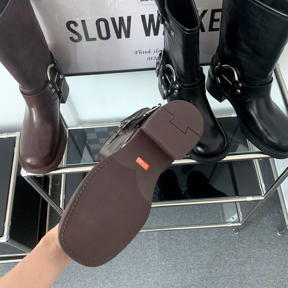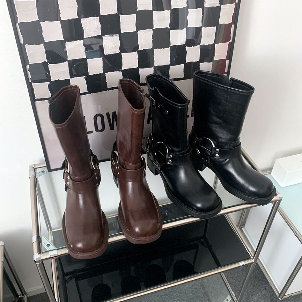 バイカーパンツミドルハーフ厚底シューズバックルブーツ(2color)