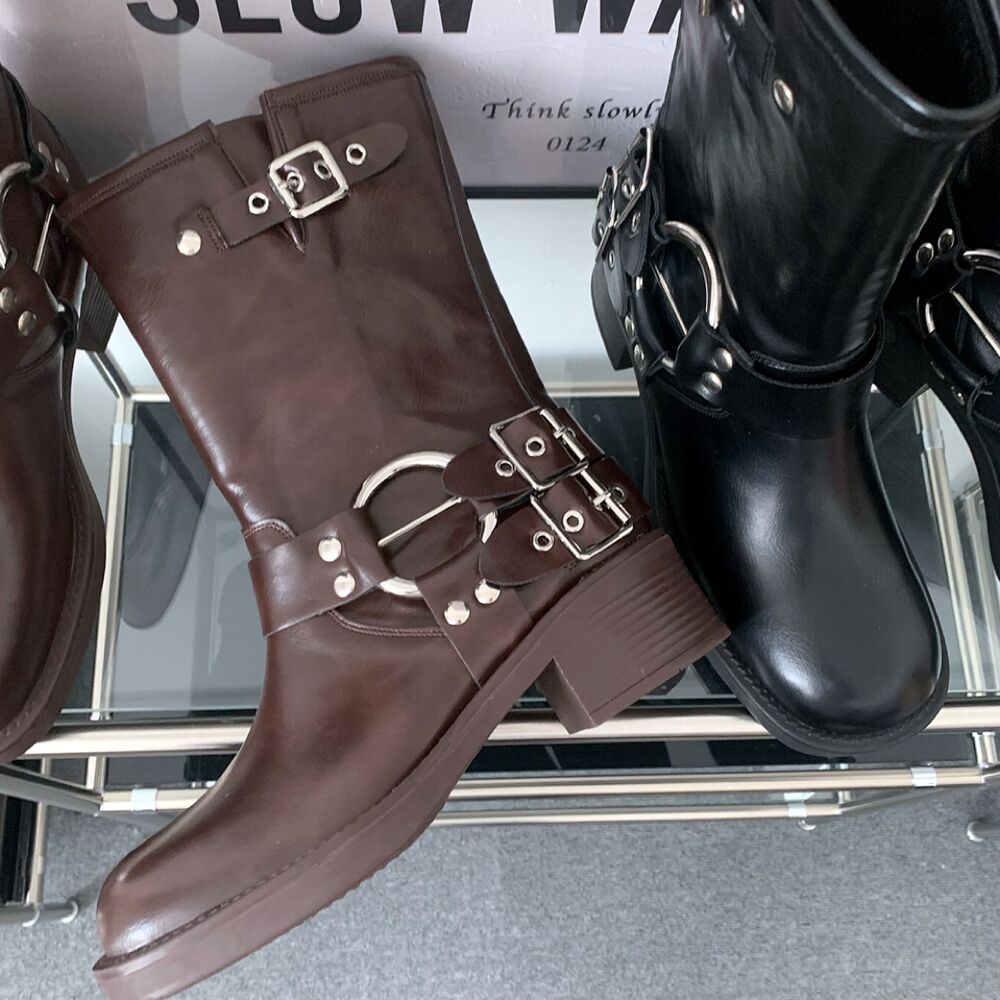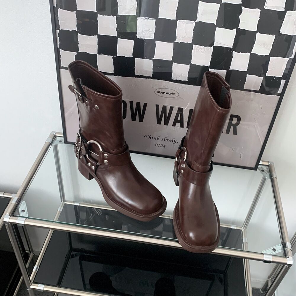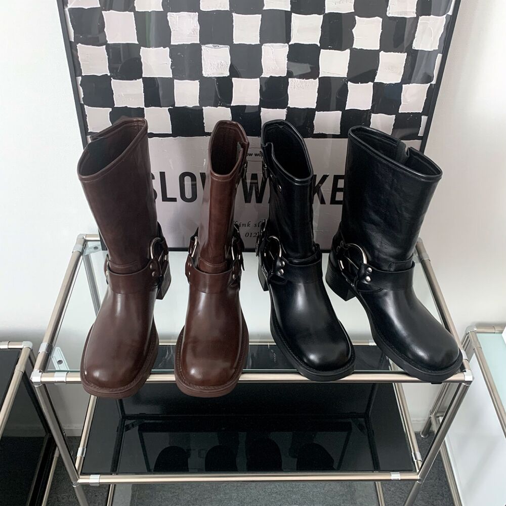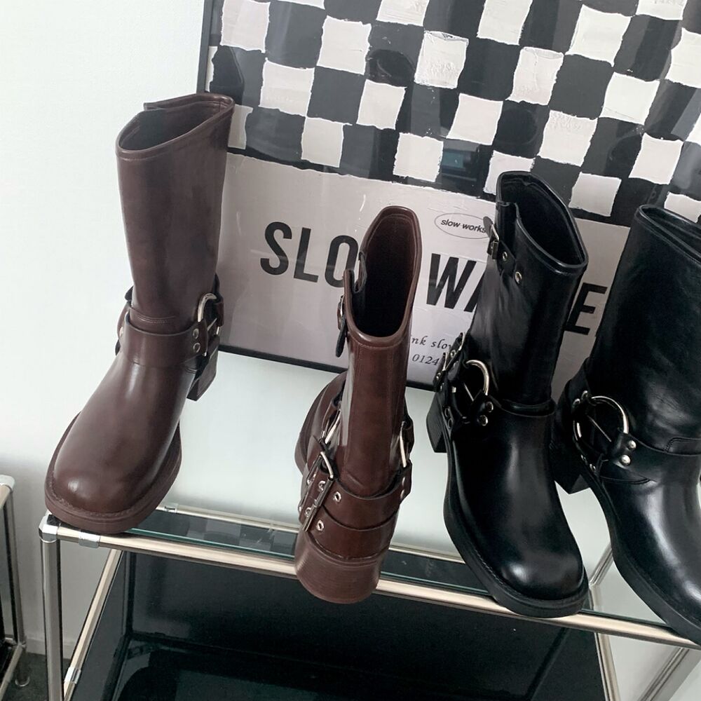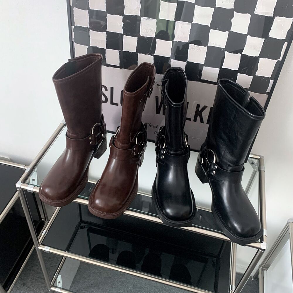 バイカーパンツミドルハーフ厚底シューズバックルブーツ(2color)