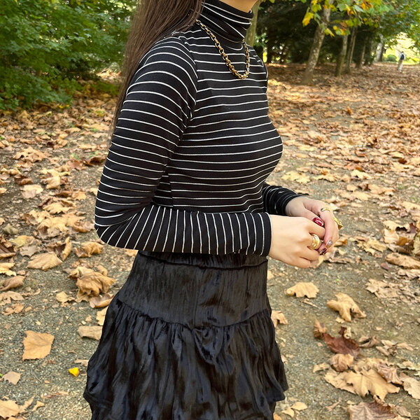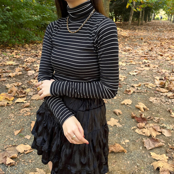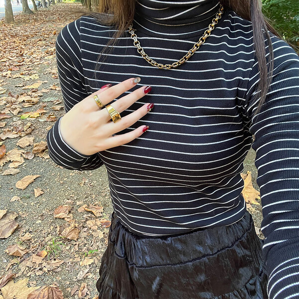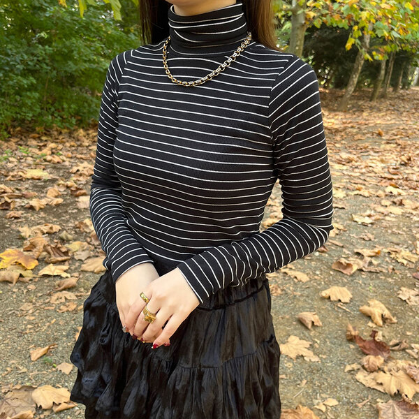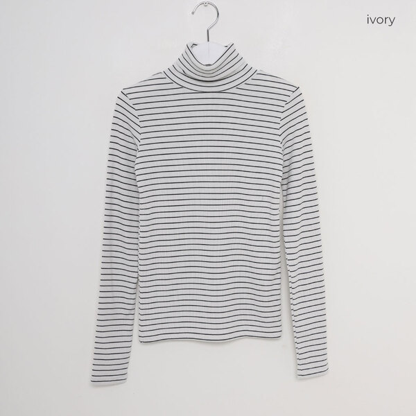 ストライプタートルネックTシャツ