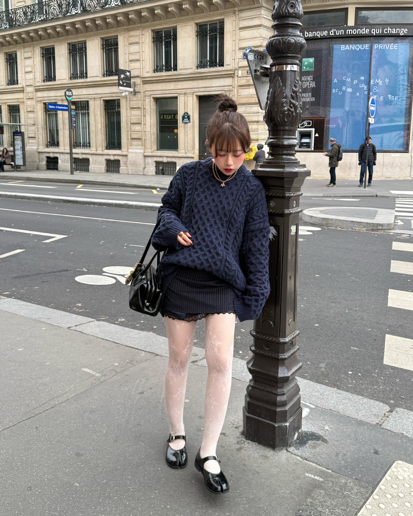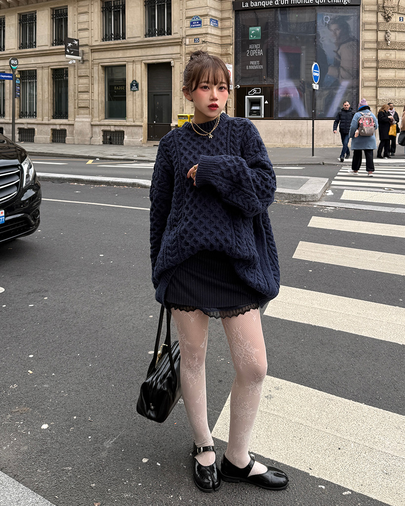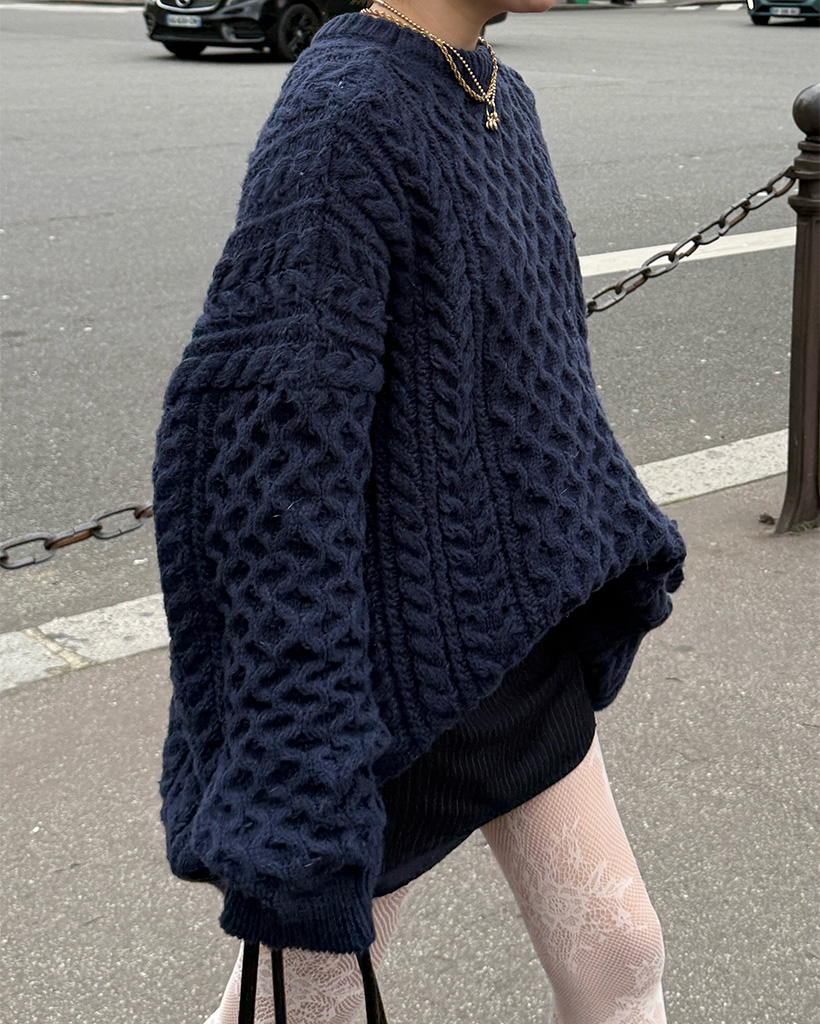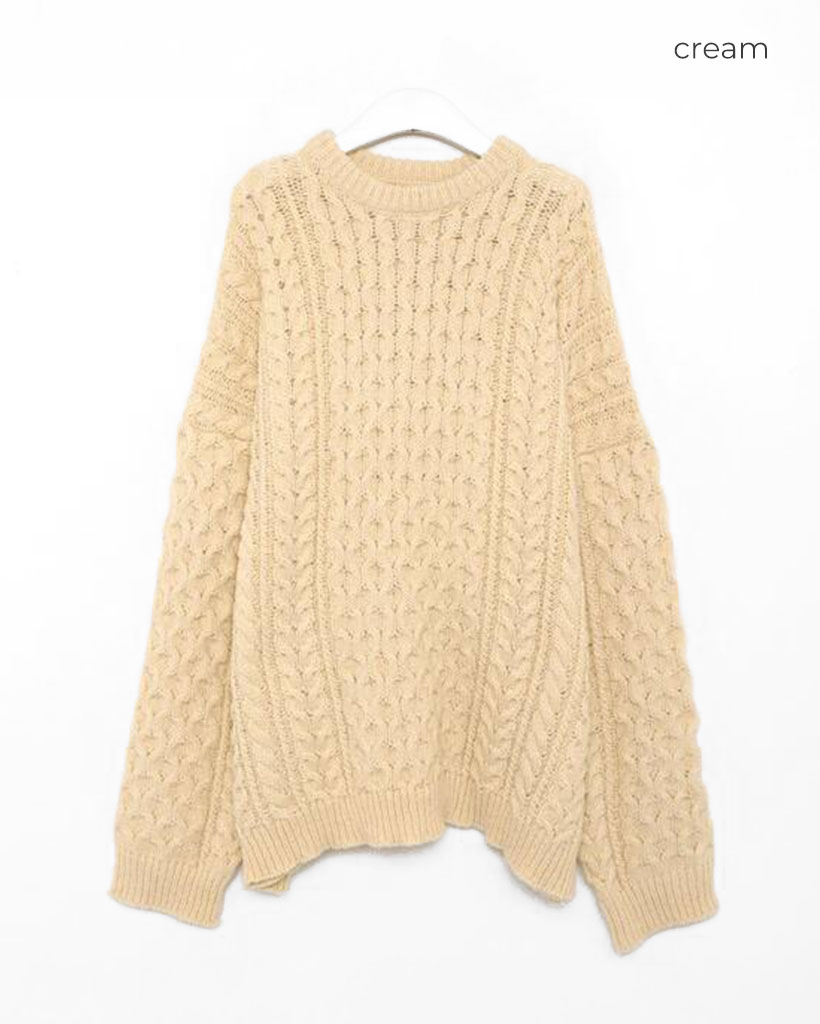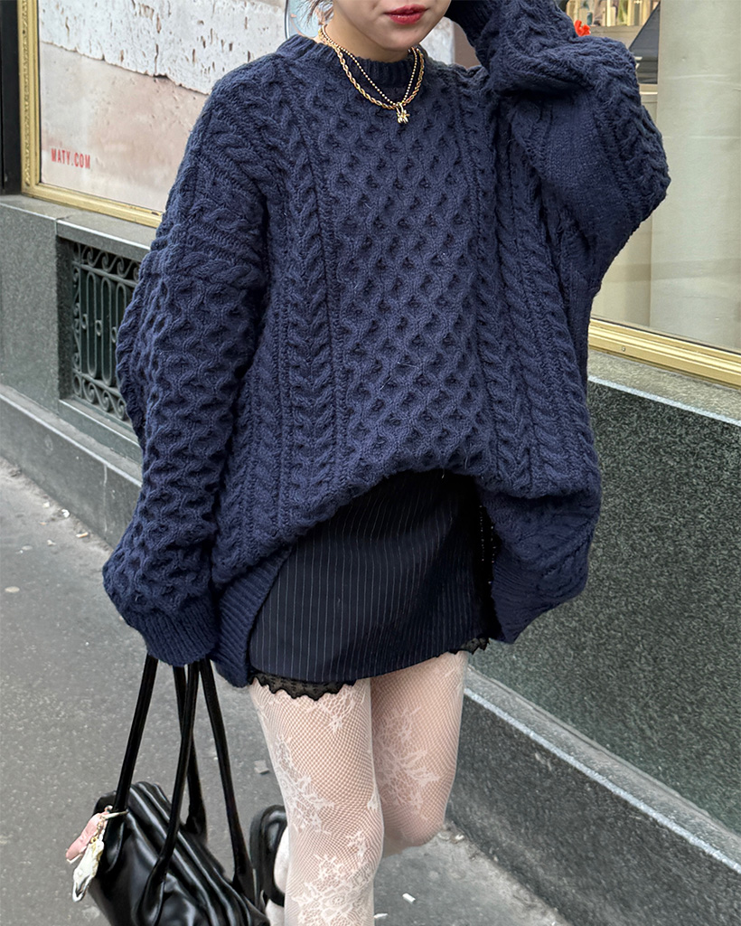 ケーブルオーバーフィットニット