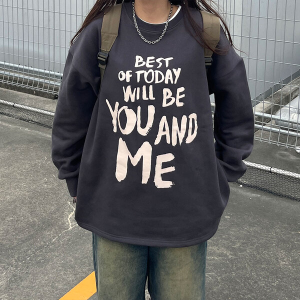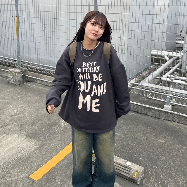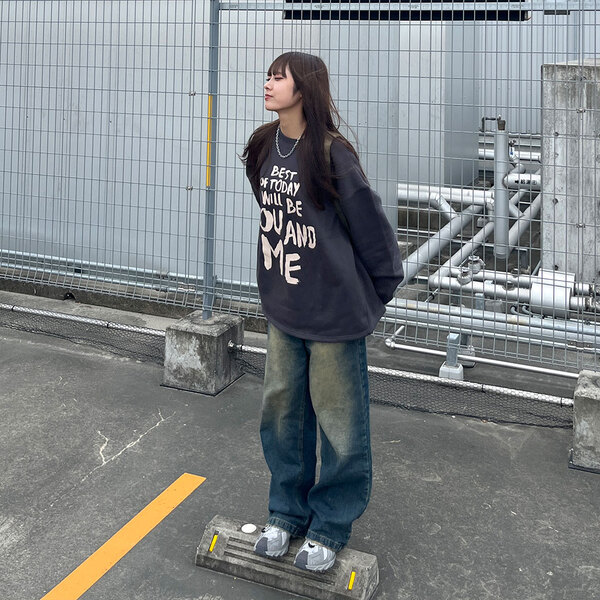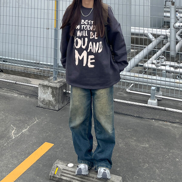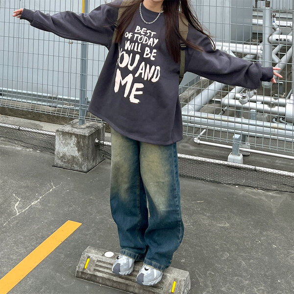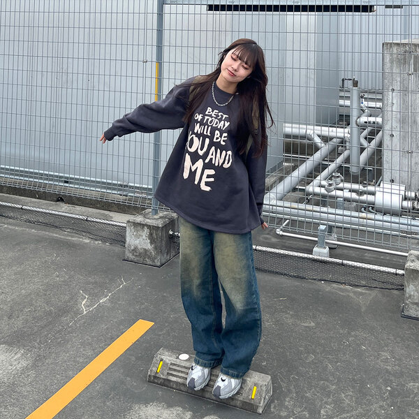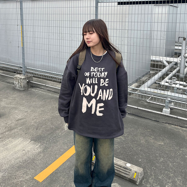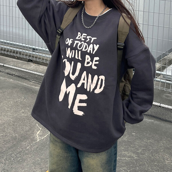 (ユニセックス)オーバーフィットレタリングスウェットシャツ