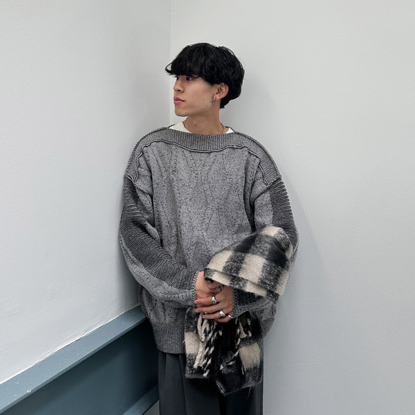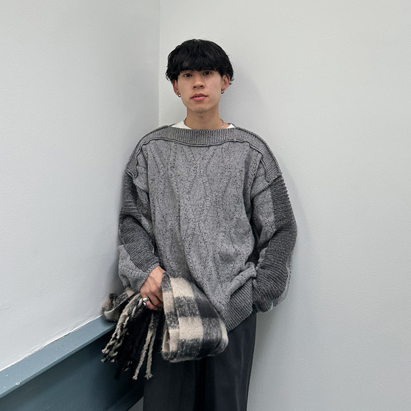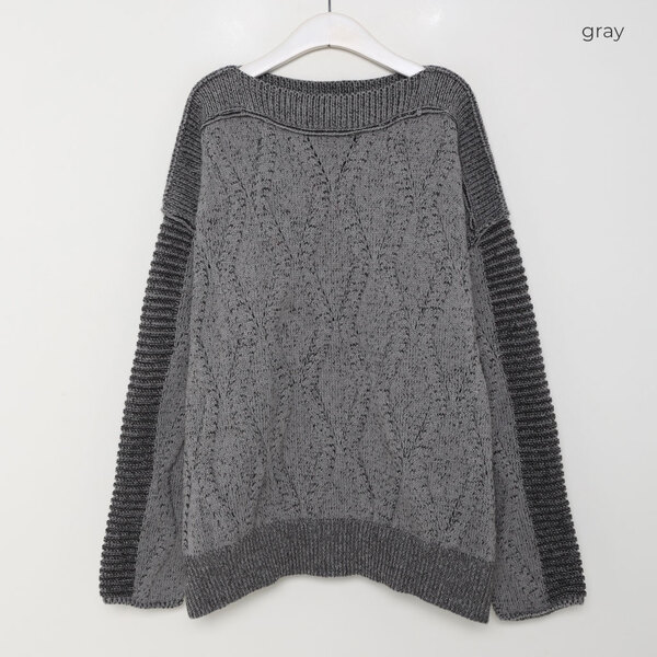 ユニークボートネックニット