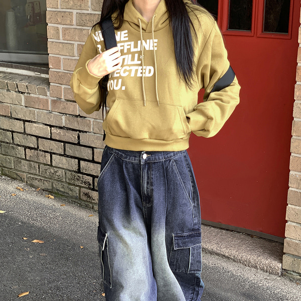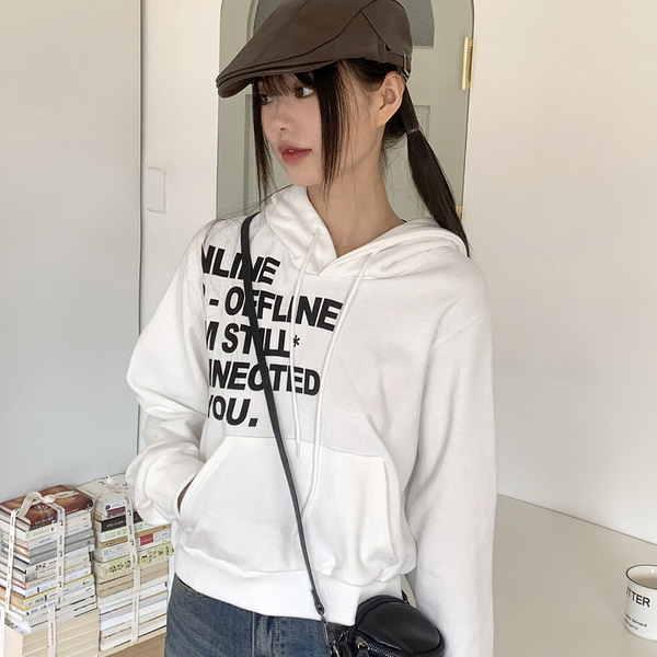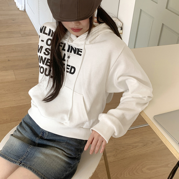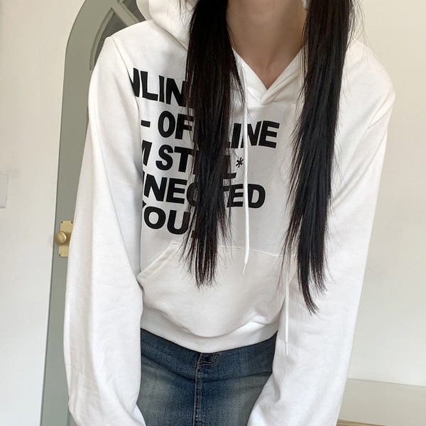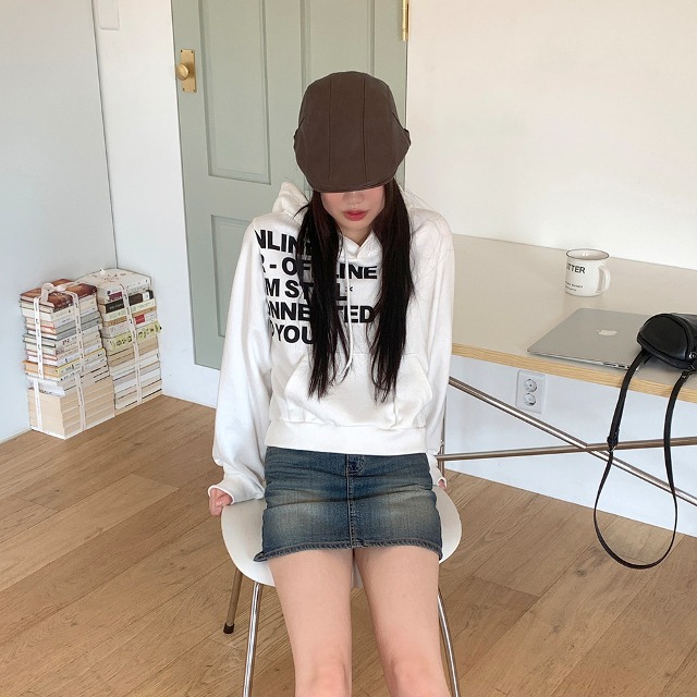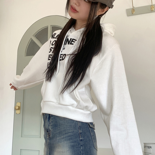 Y2Kレタリングセミクロップド長袖フード付きTシャツ