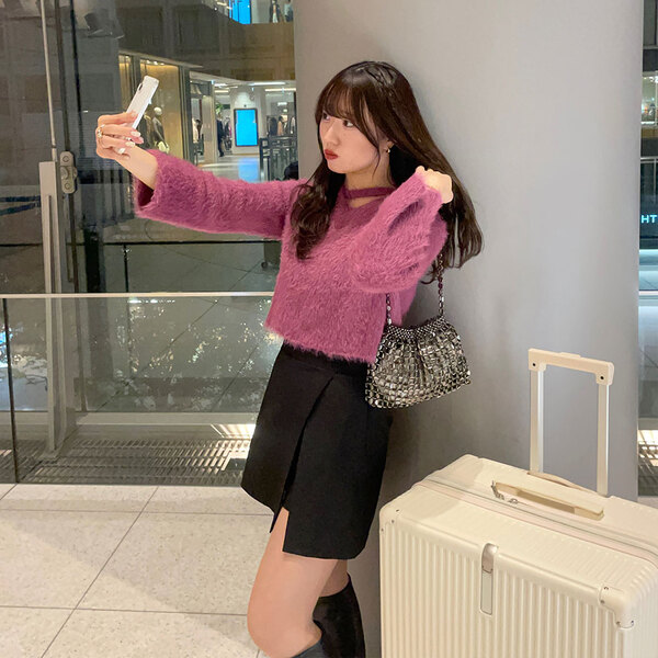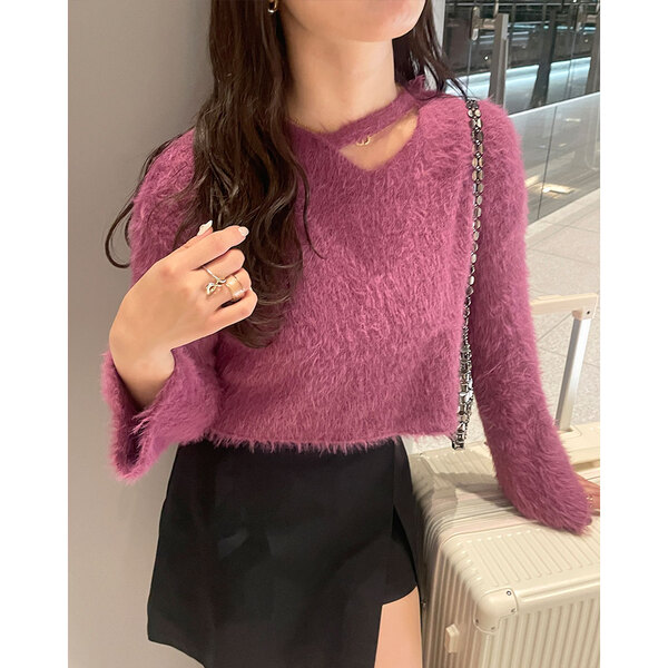 アンゴラストラップポイントニット