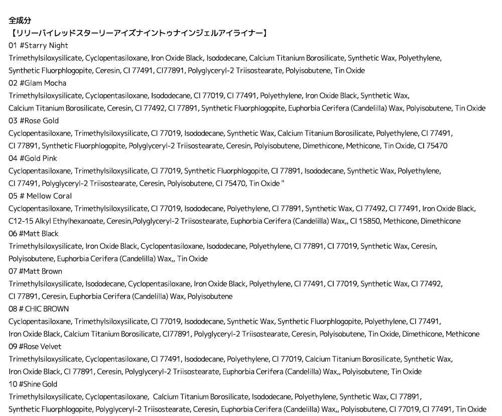 リリーバイレッドスターリーアイズナイントゥナインジェルアイライナー