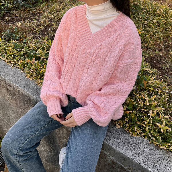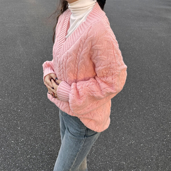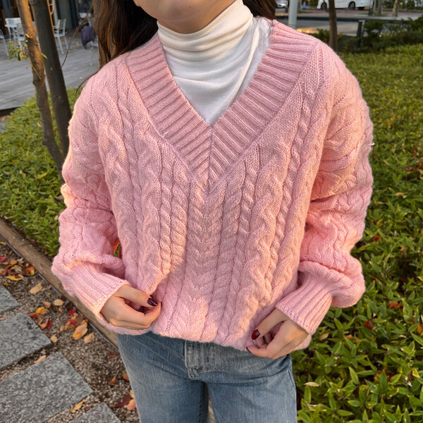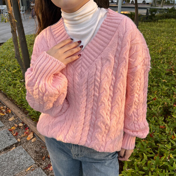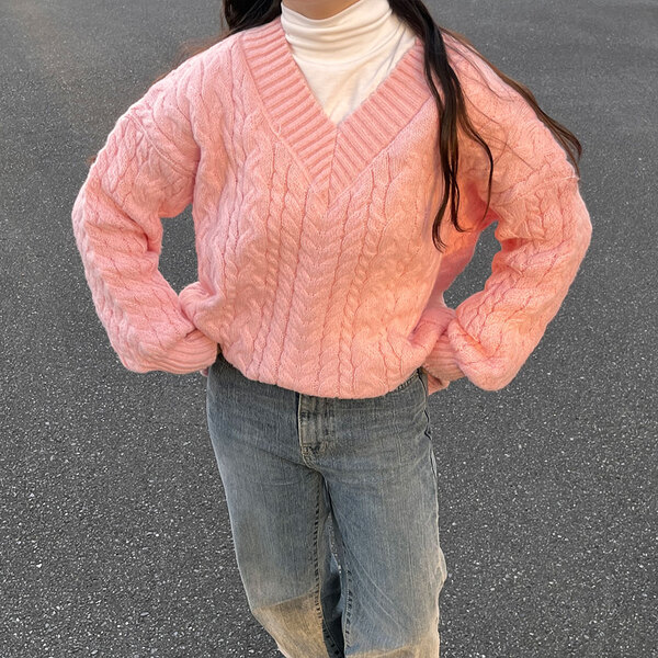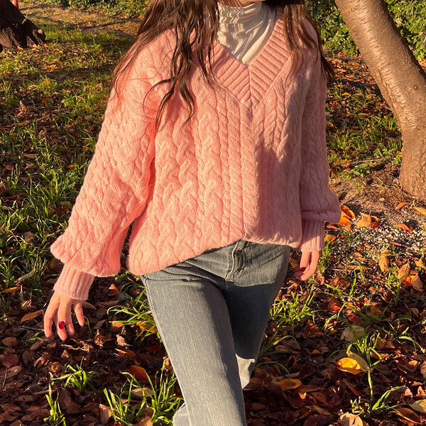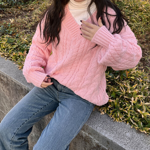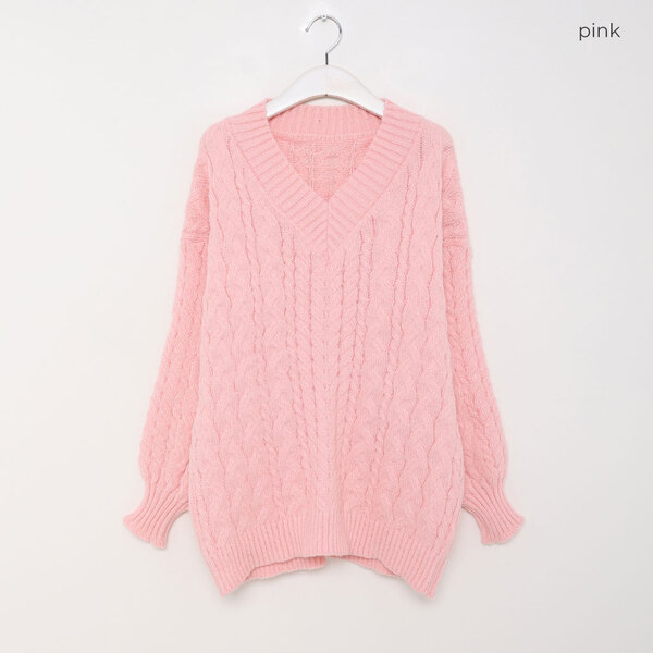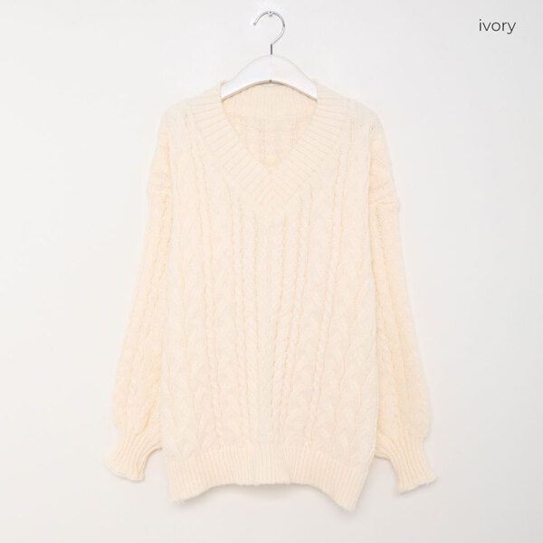 オーバーフィットケーブルVニット