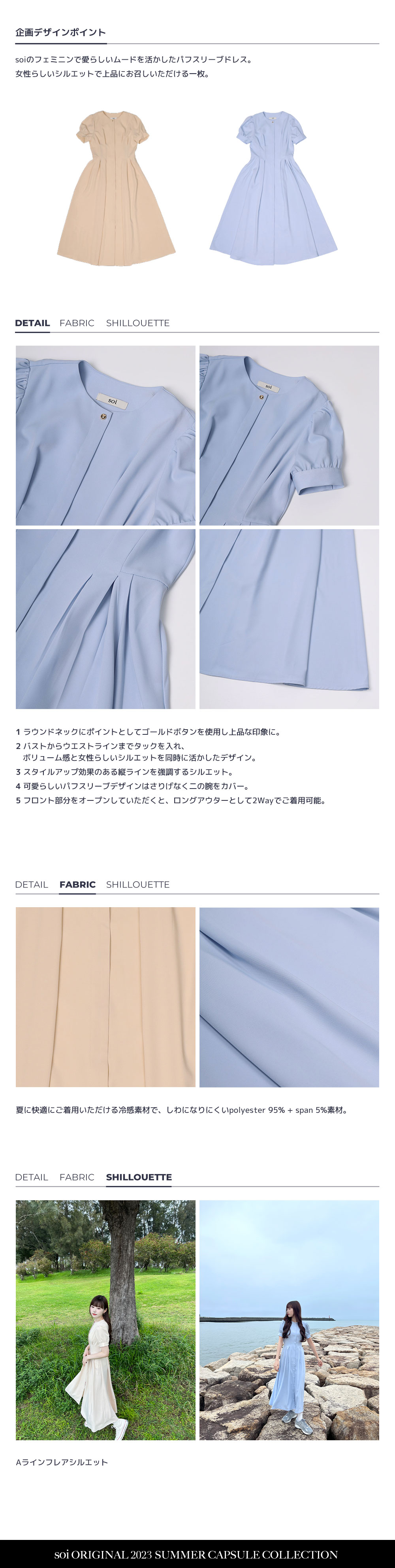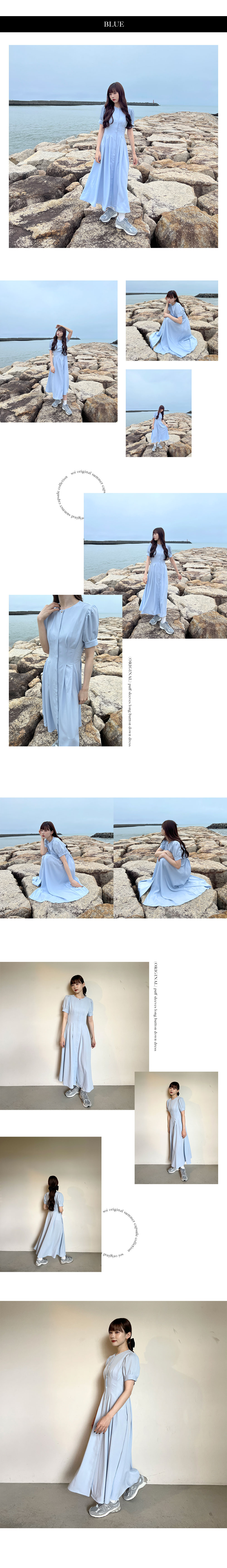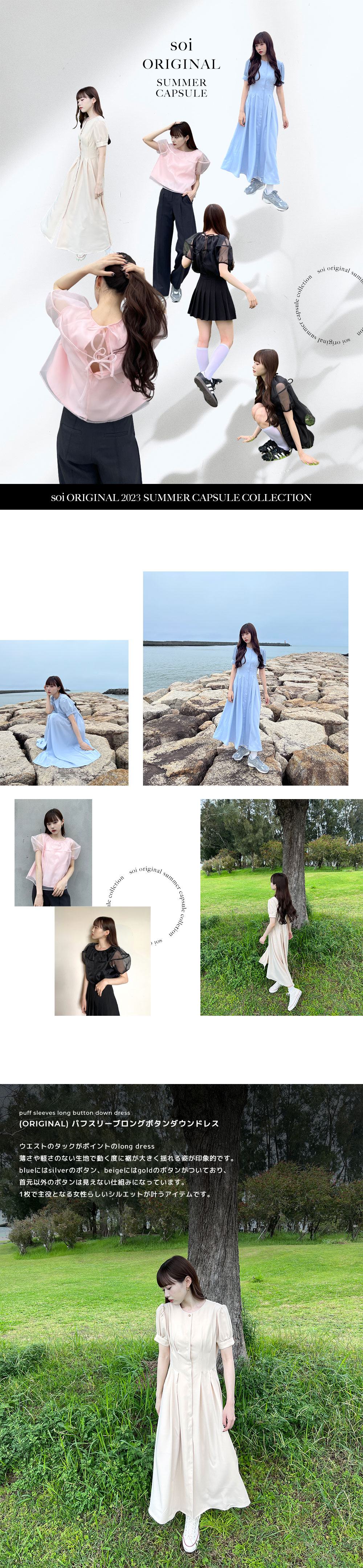 (ORIGINAL) パフスリーブロングボタンダウンドレス