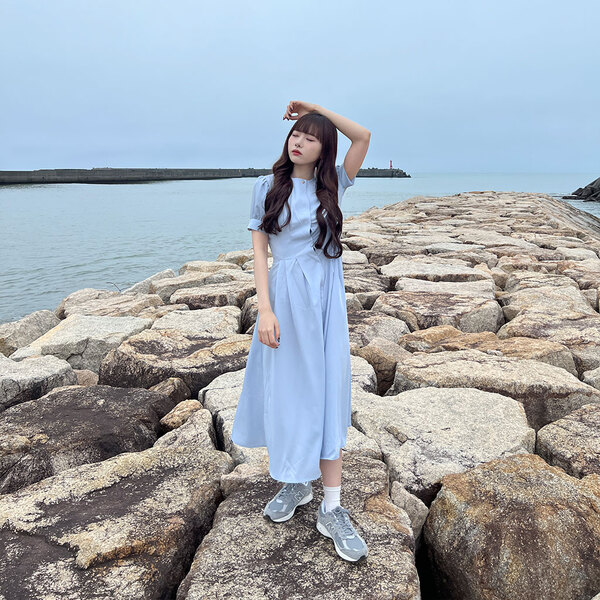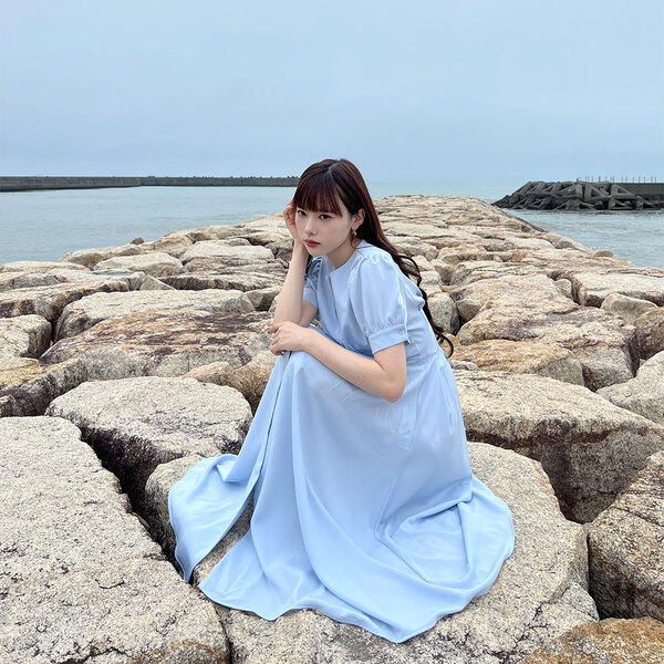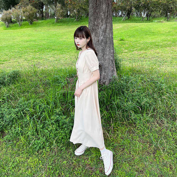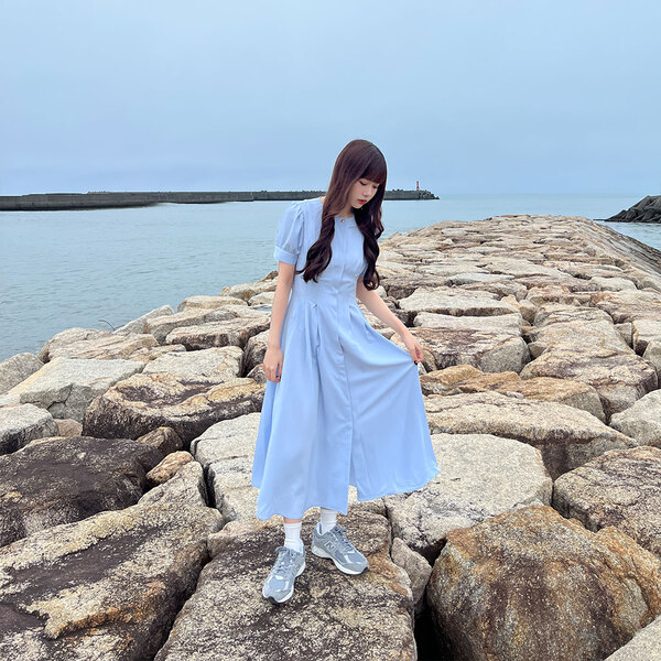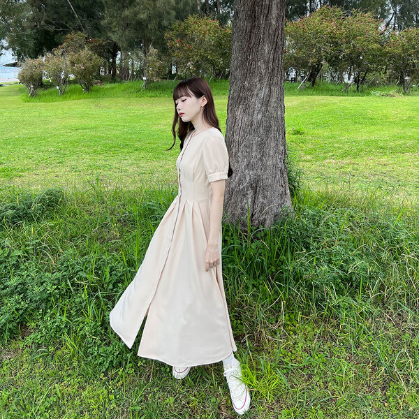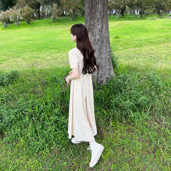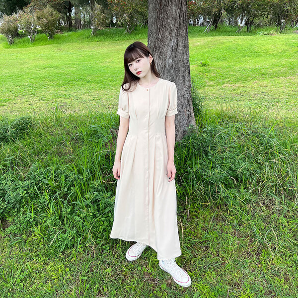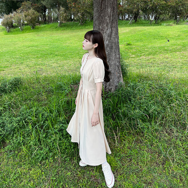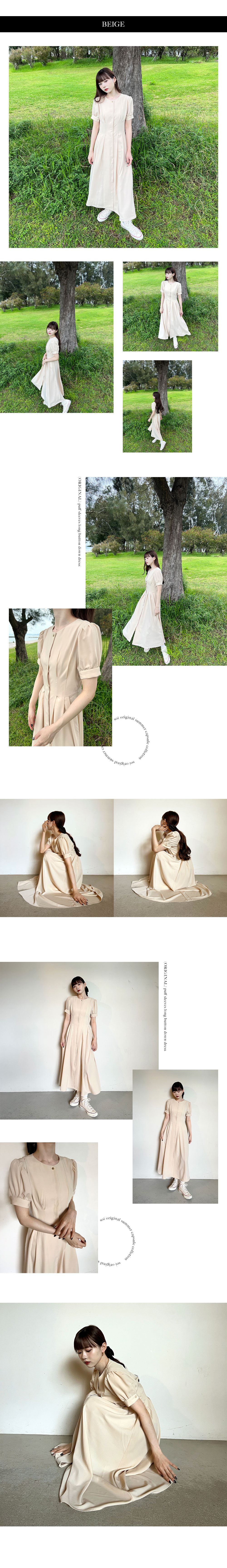 (ORIGINAL) パフスリーブロングボタンダウンドレス