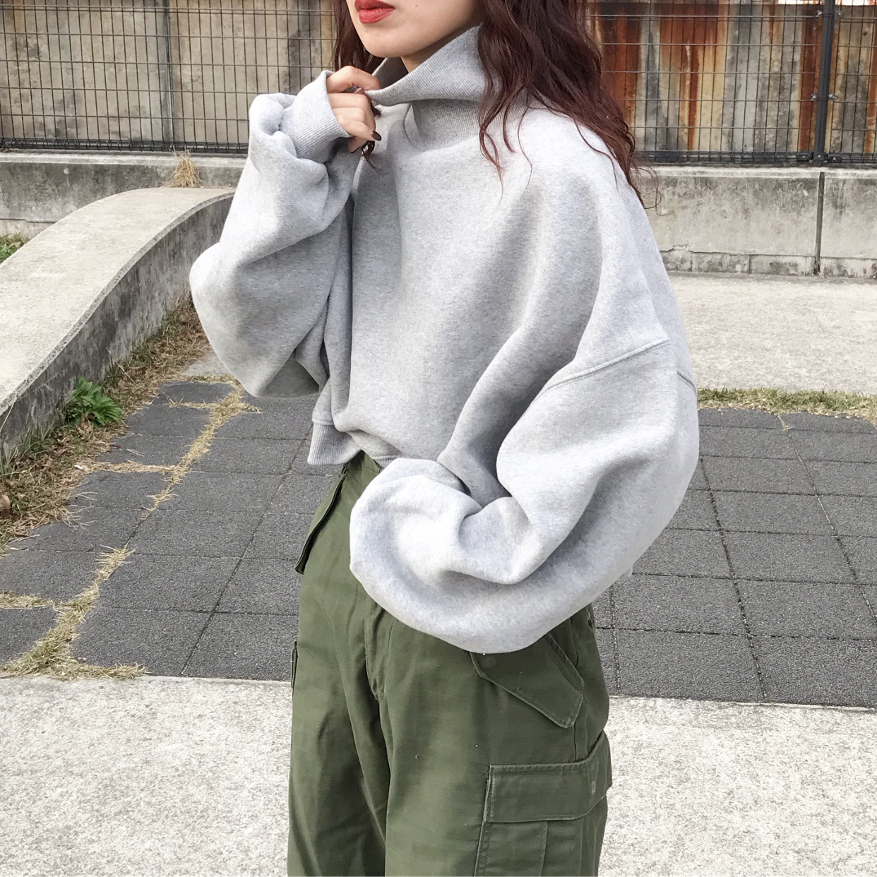 クロップドハイネックスウェット