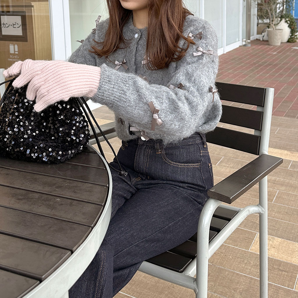 リボンラウンドカーディガン