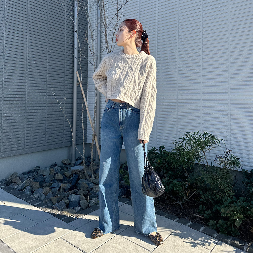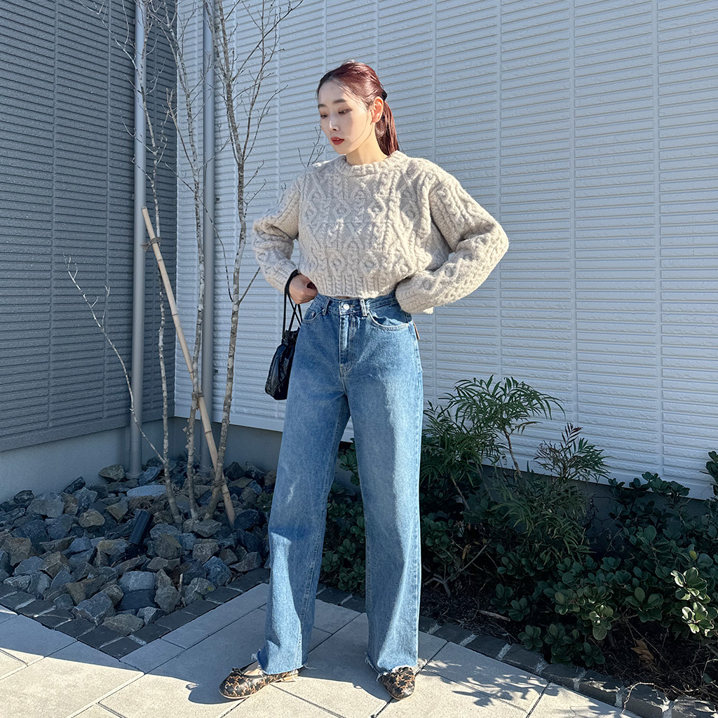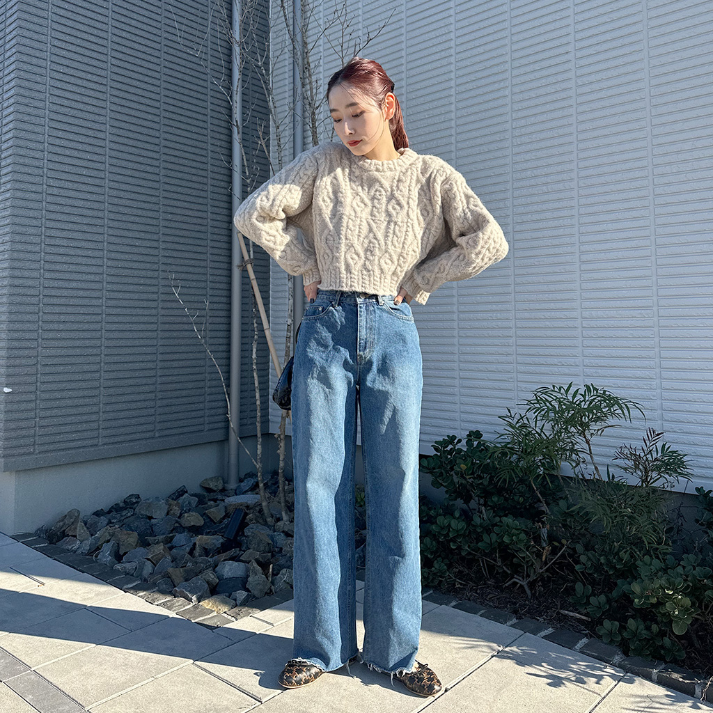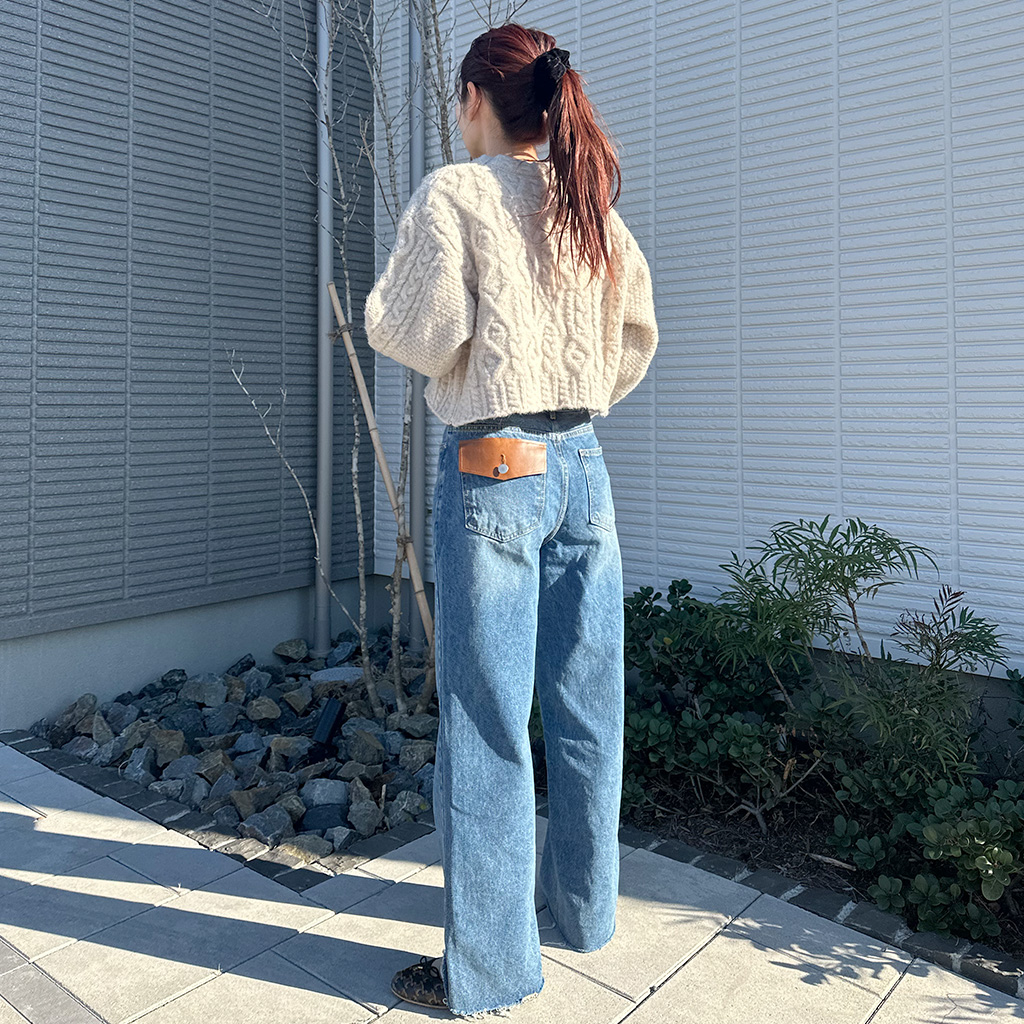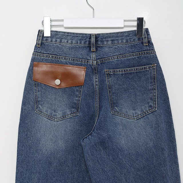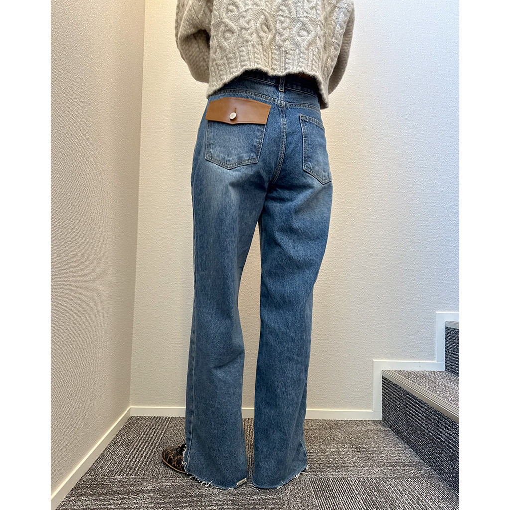 レザーポケットデニムパンツ