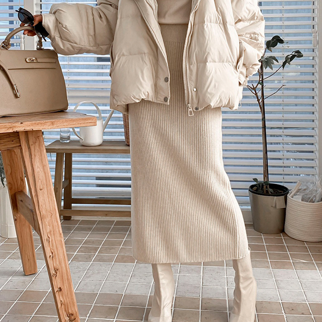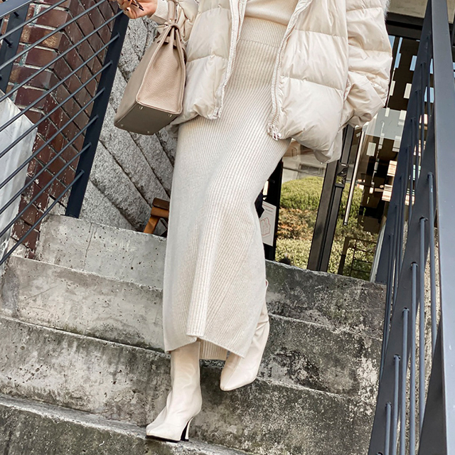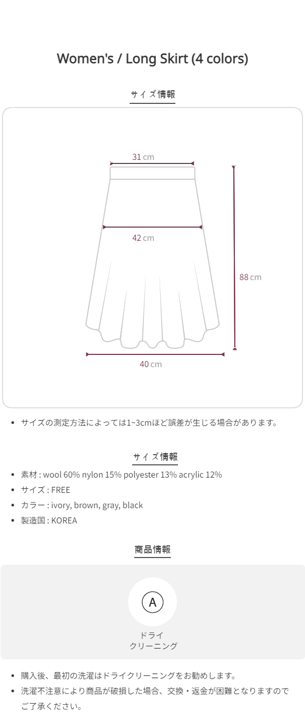 ウェーブウールニットロングスカート(4color)