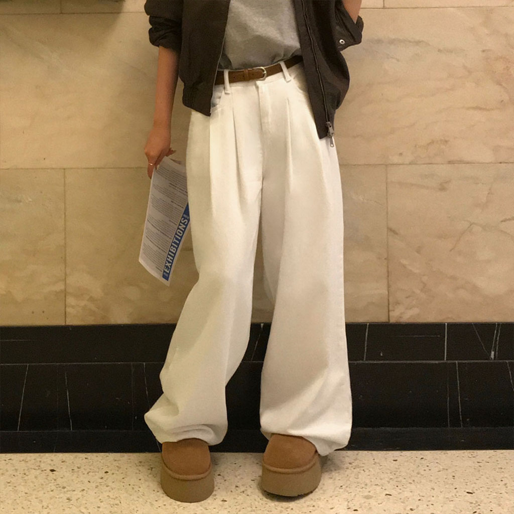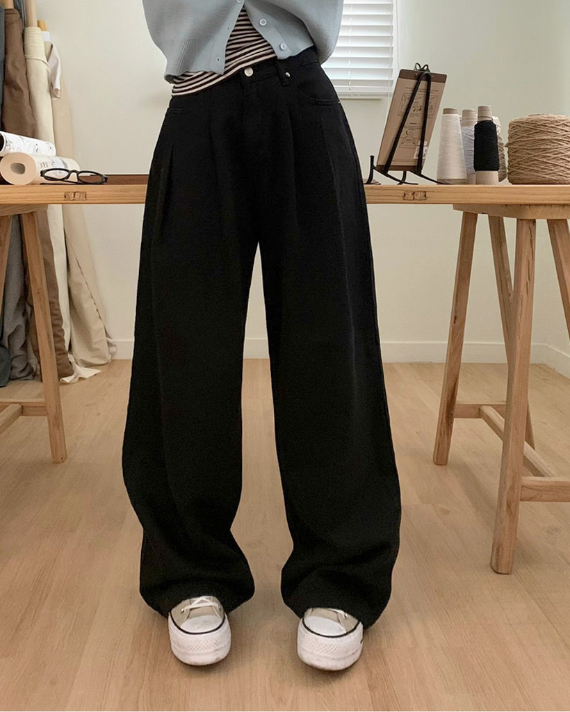 (ORIGINAL) ツイル、ピンタックワイドパンツ