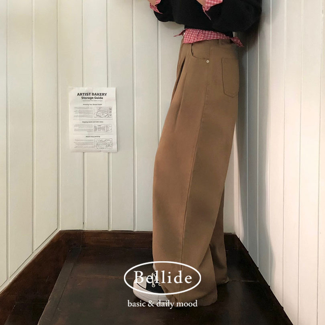 [BELLIDE MADE] ツイールコットン、ピンタックワイドパンツ