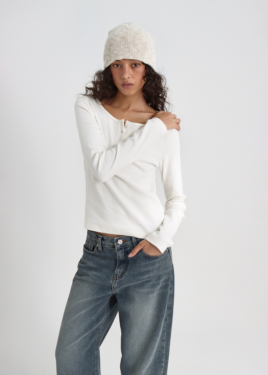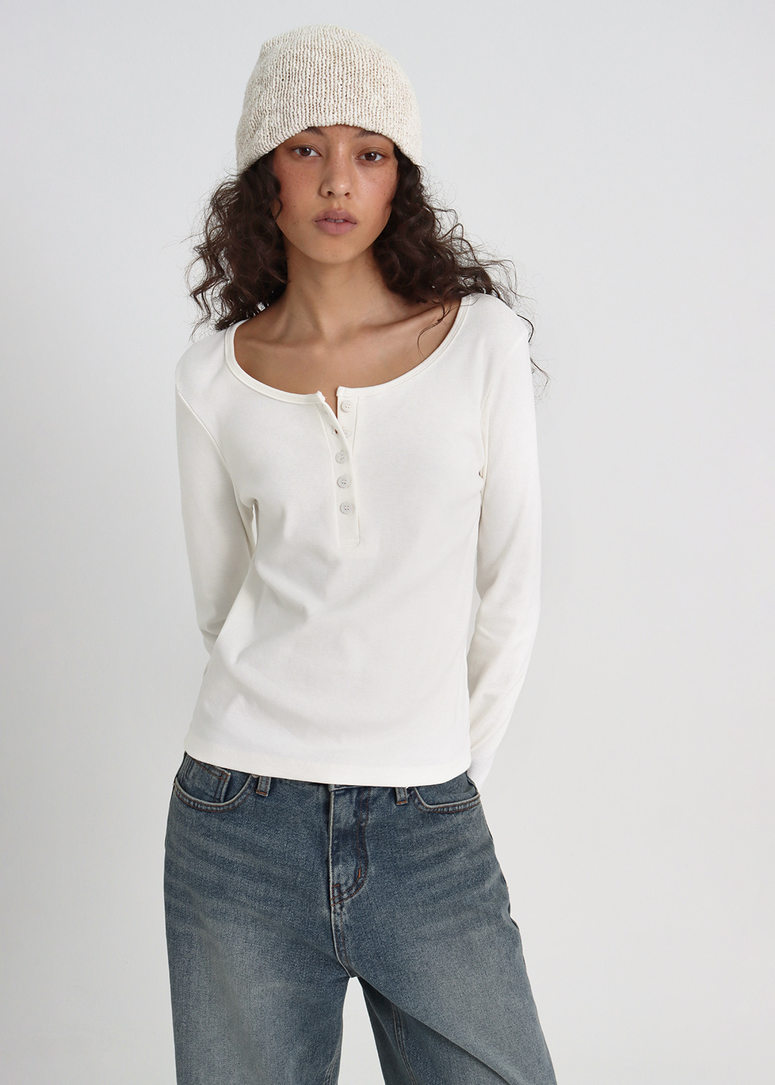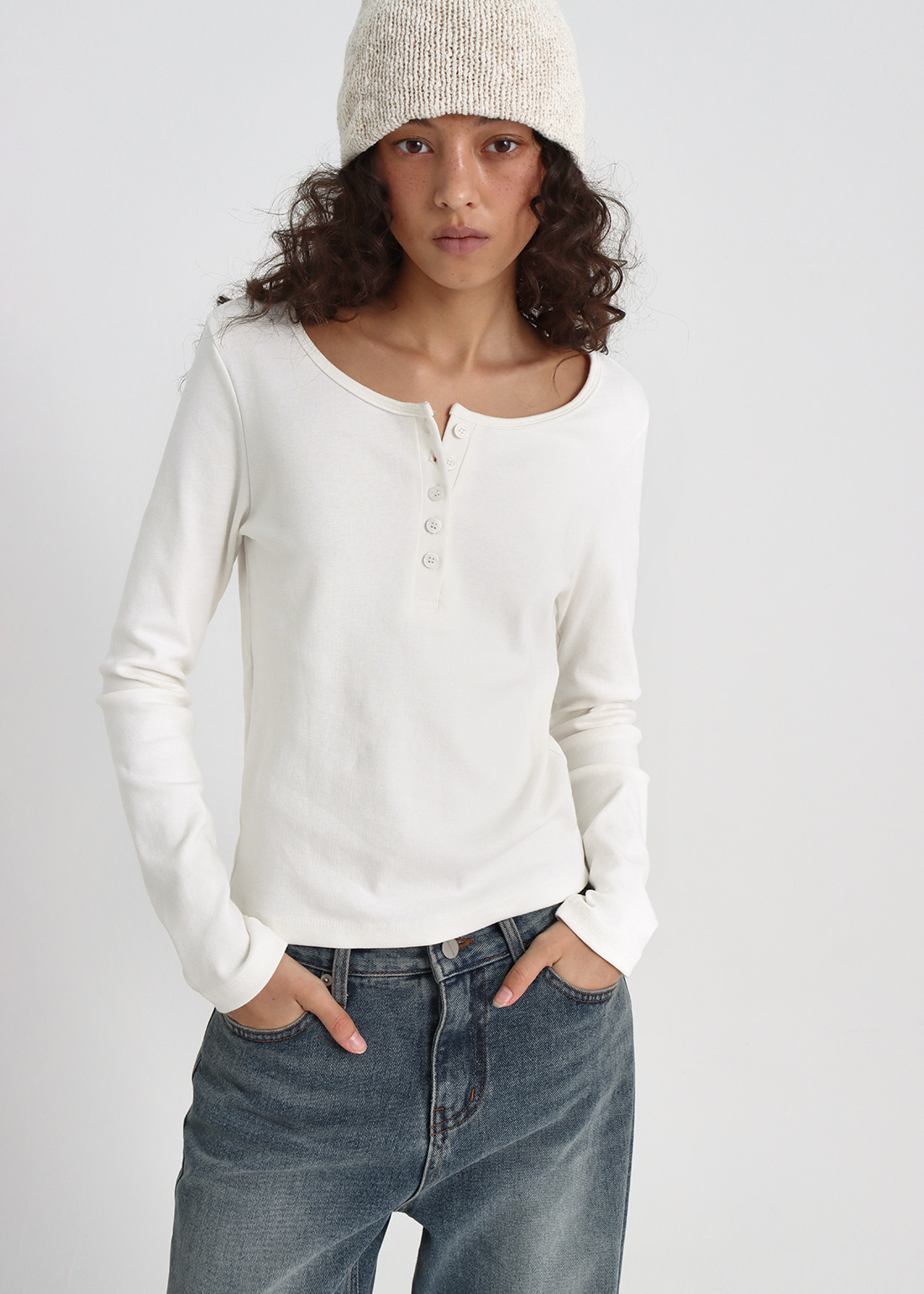 [B-BASIC]ライトスタンダードヘンリーネック長袖Tシャツ(2SIZE)