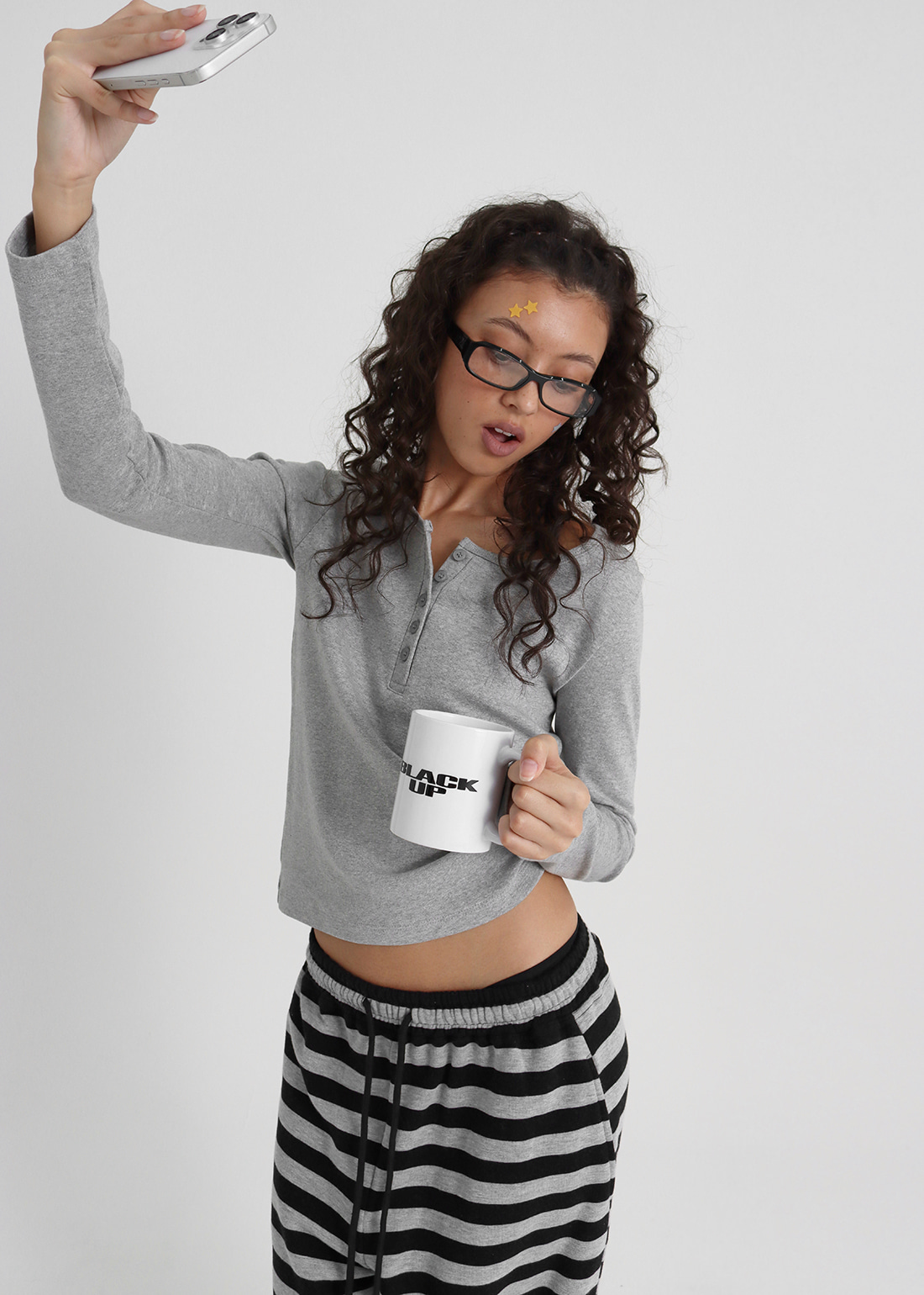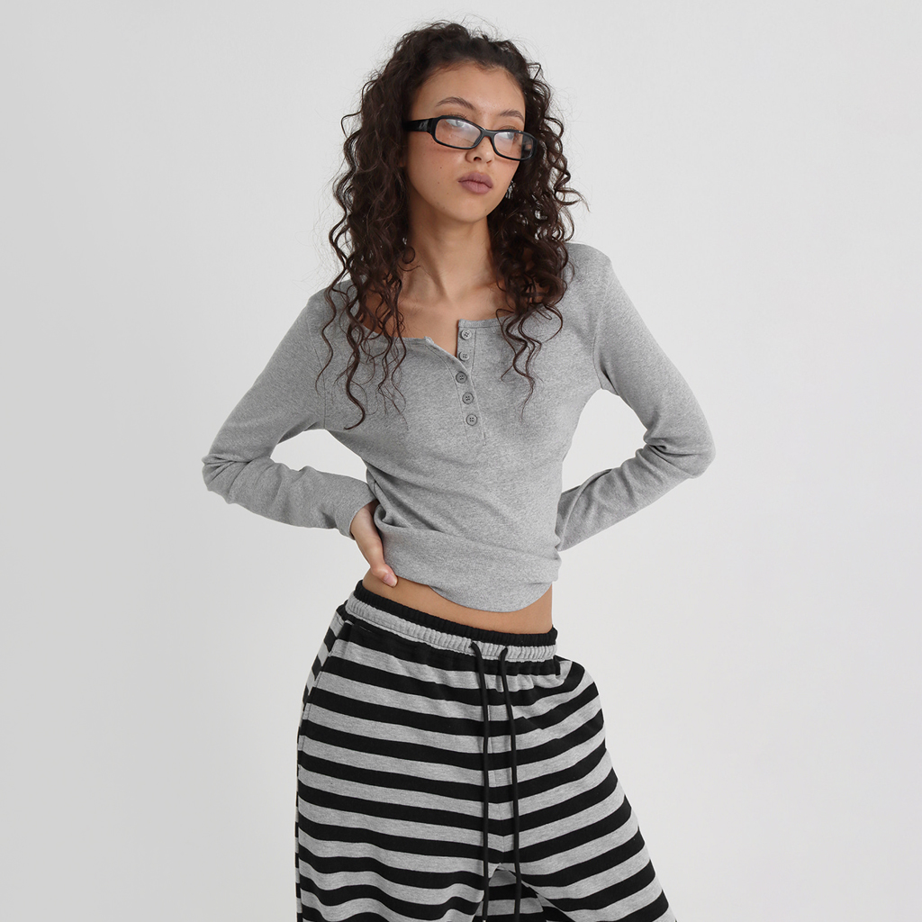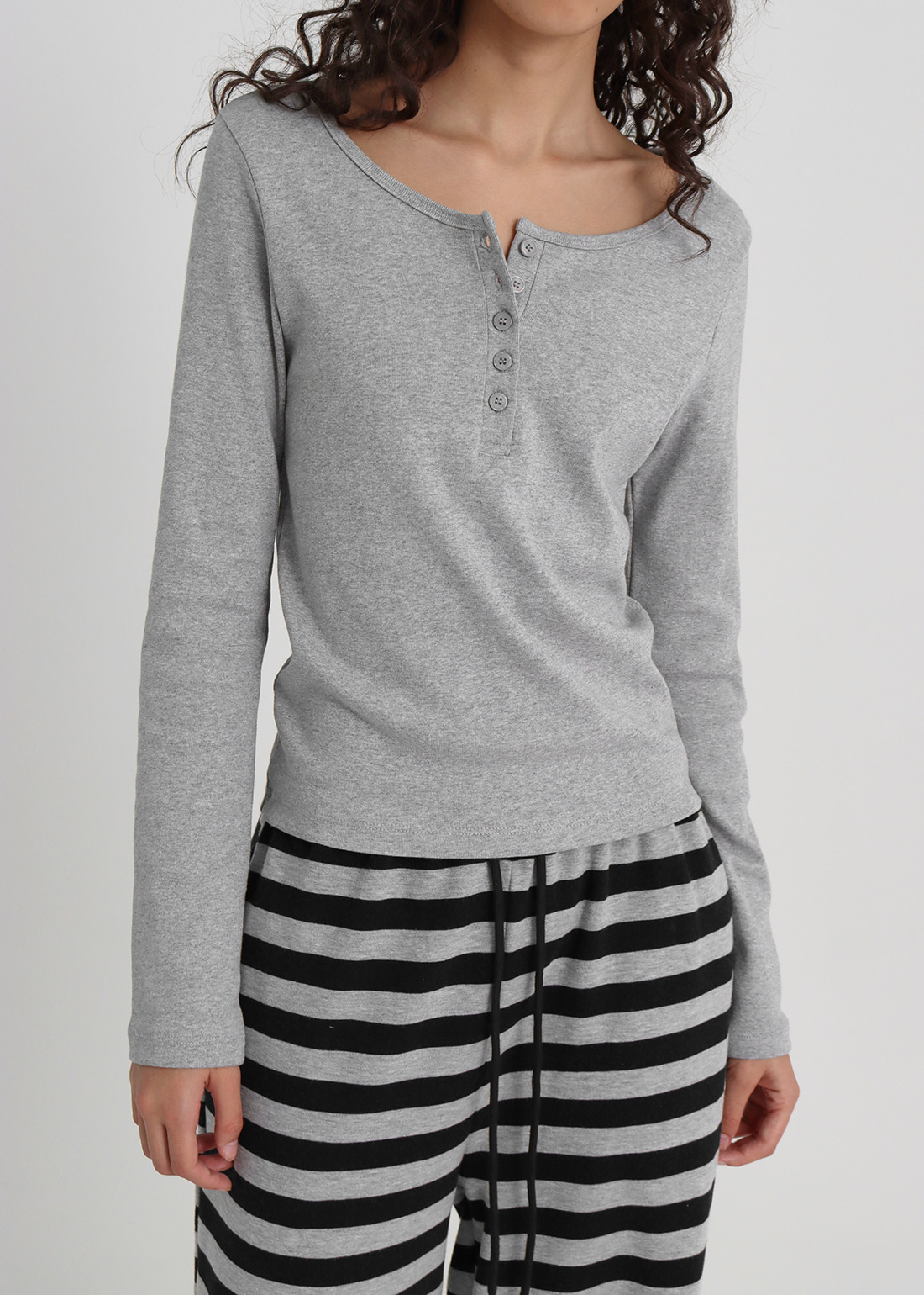 [B-BASIC]ライトスタンダードヘンリーネック長袖Tシャツ(2SIZE)