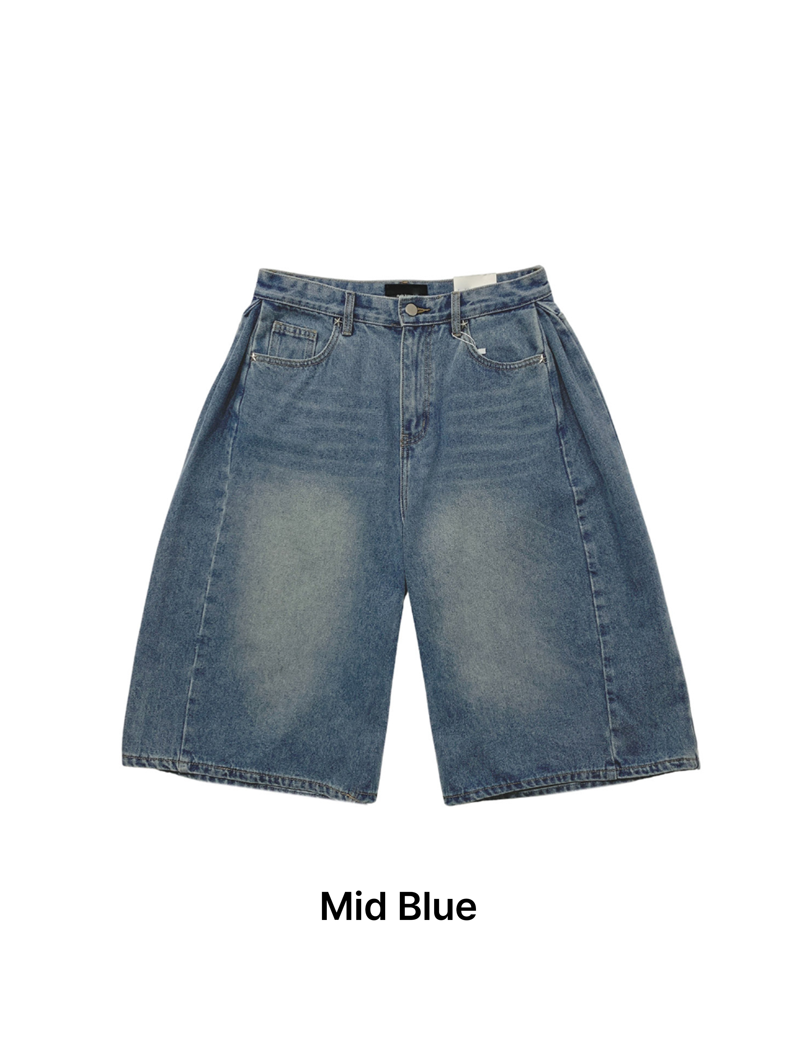 [5Size]デイリーサイドタック入りデニムハーフパンツ
