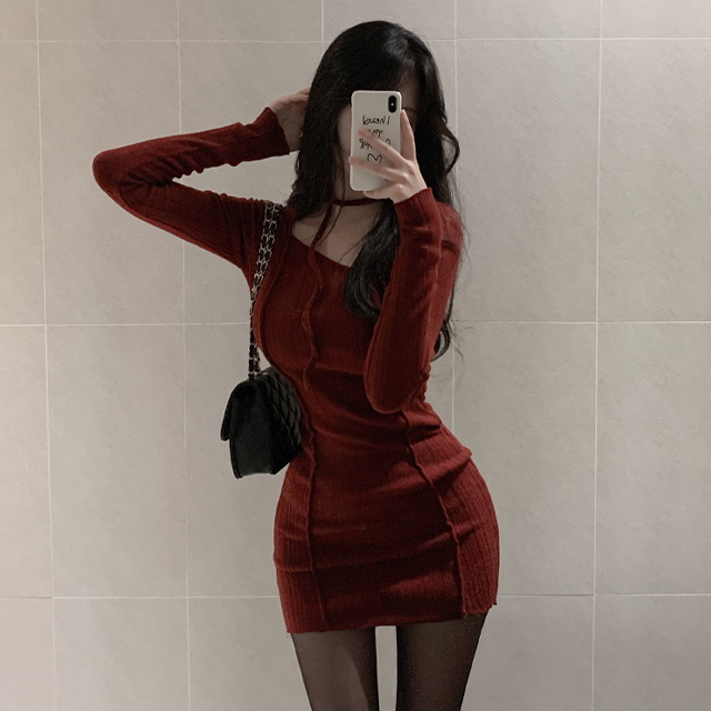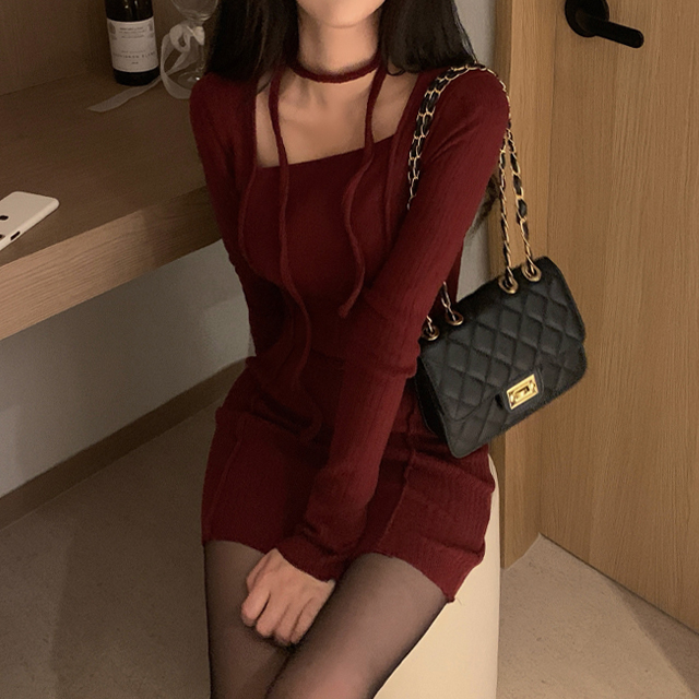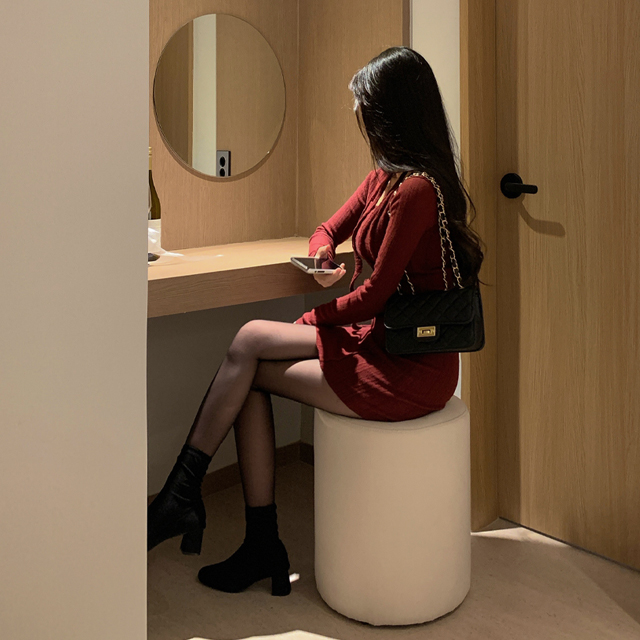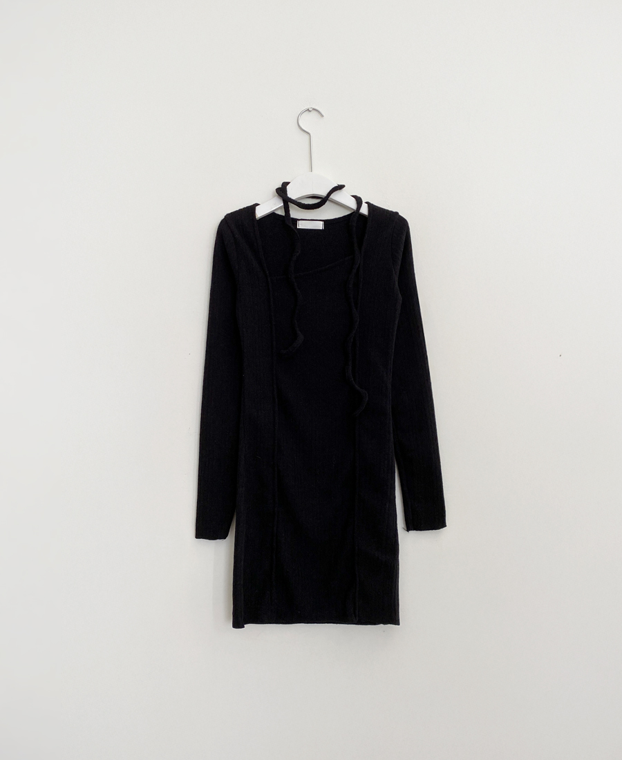 裏起毛マフラースリムリブアシンメトリーミニワンピース