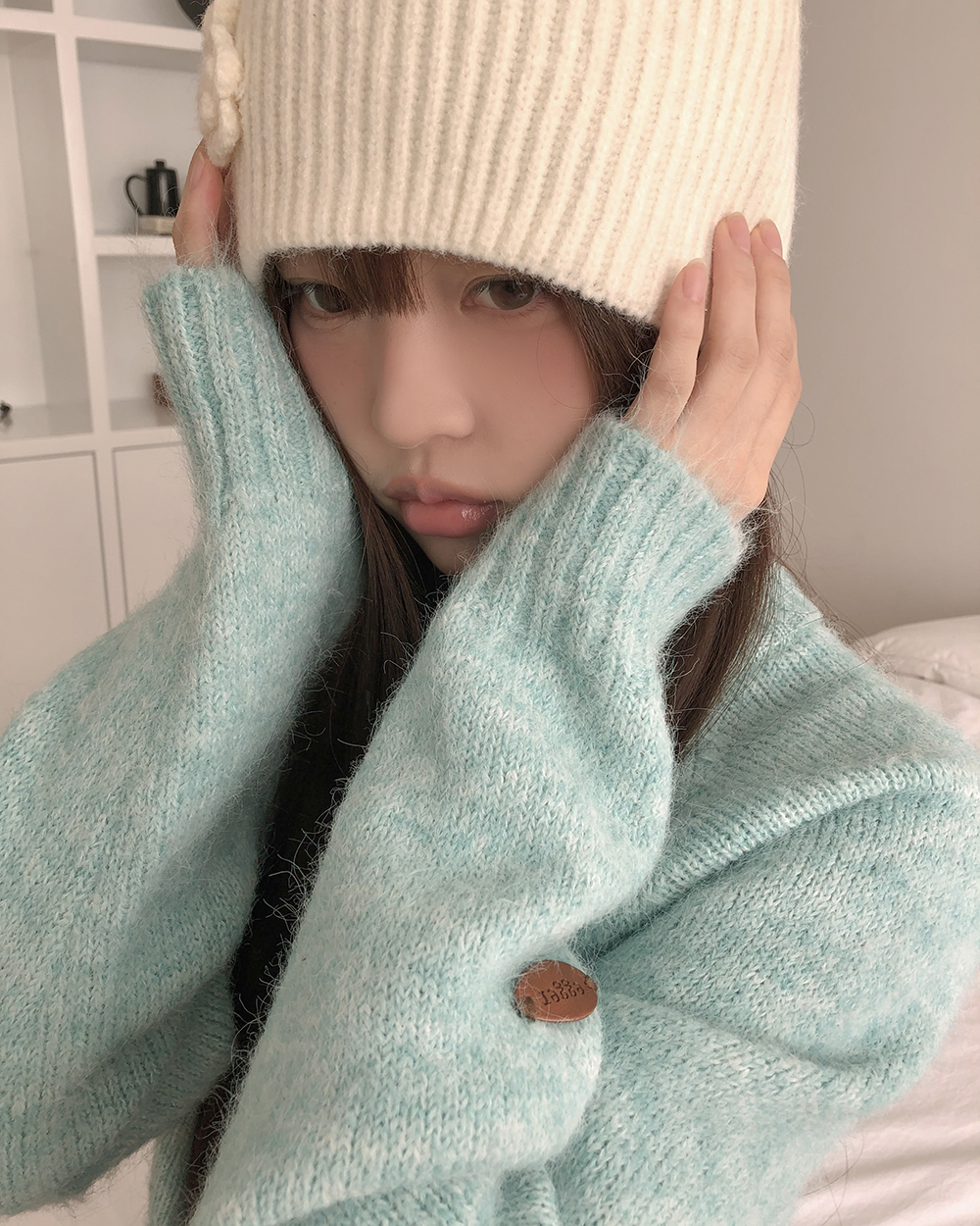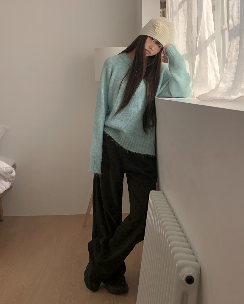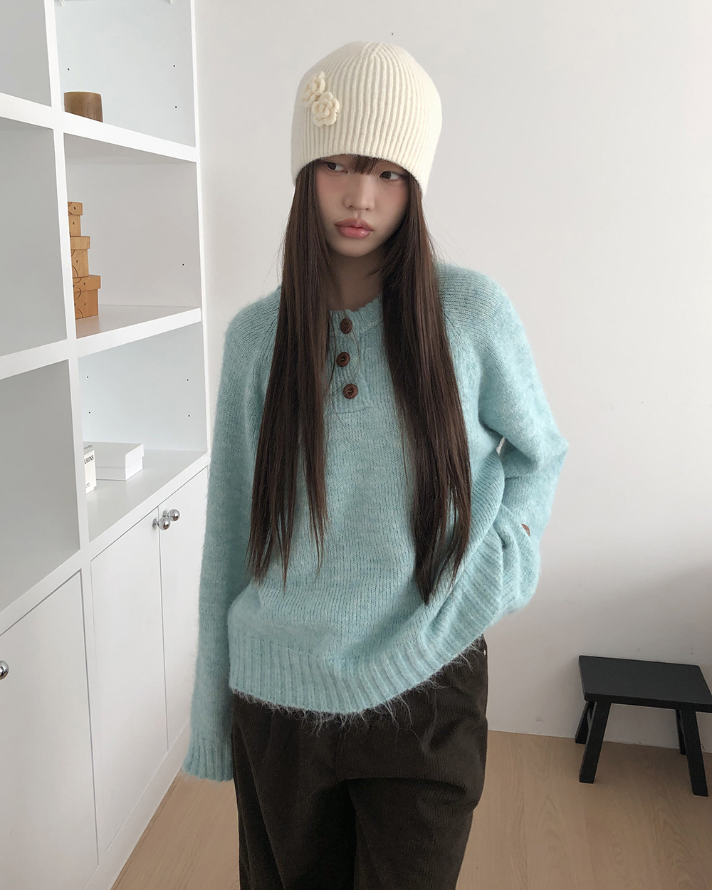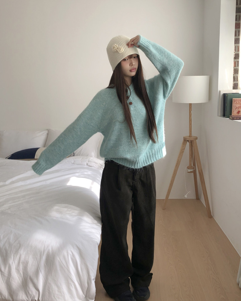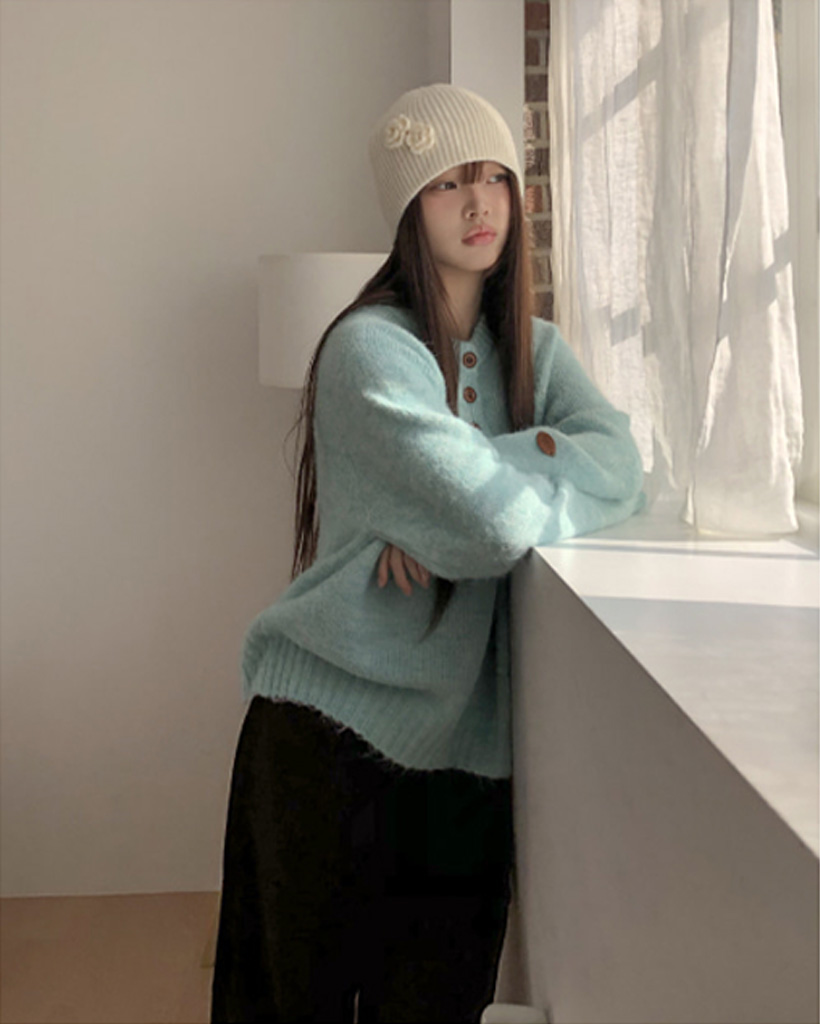 オーバーサイズヘンリーネックニット