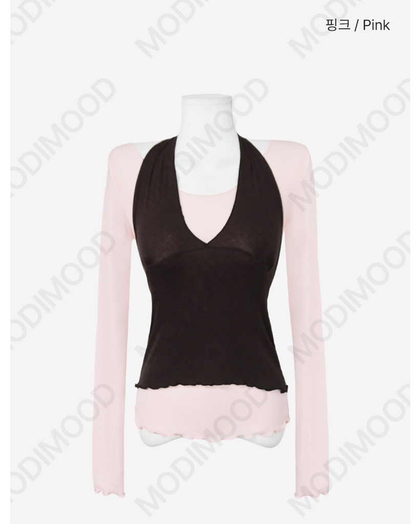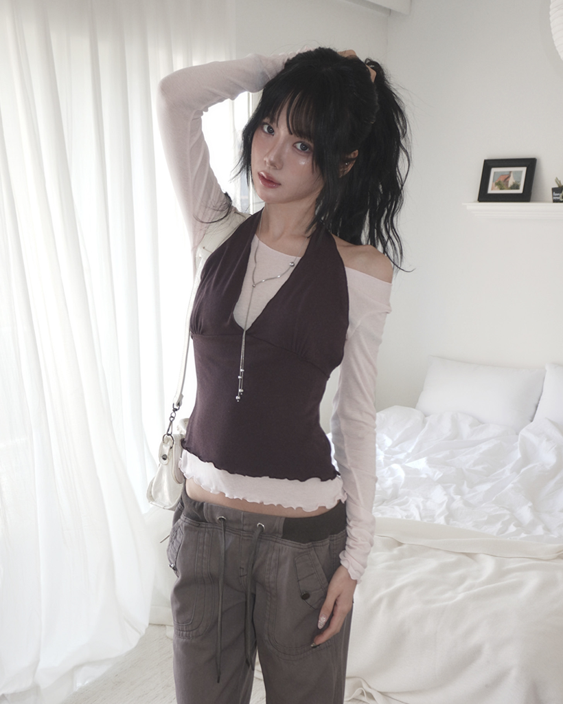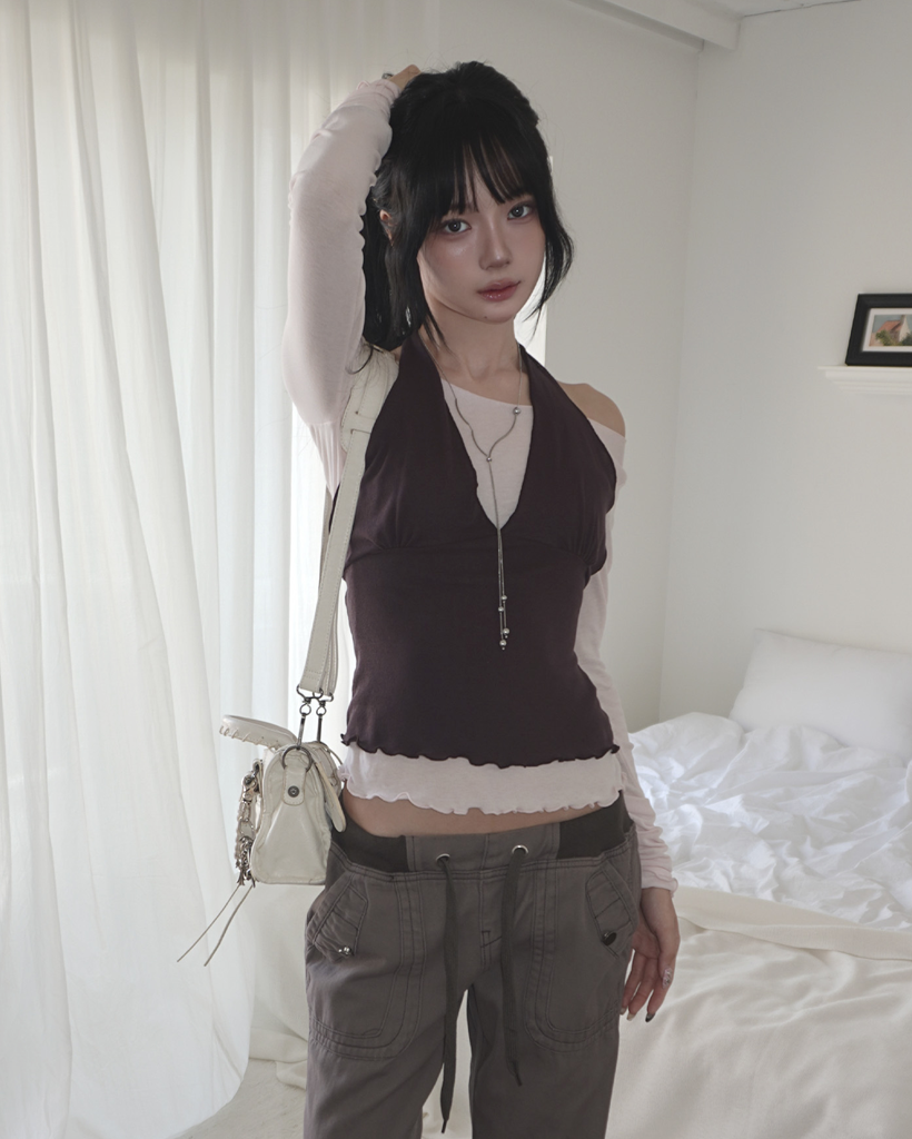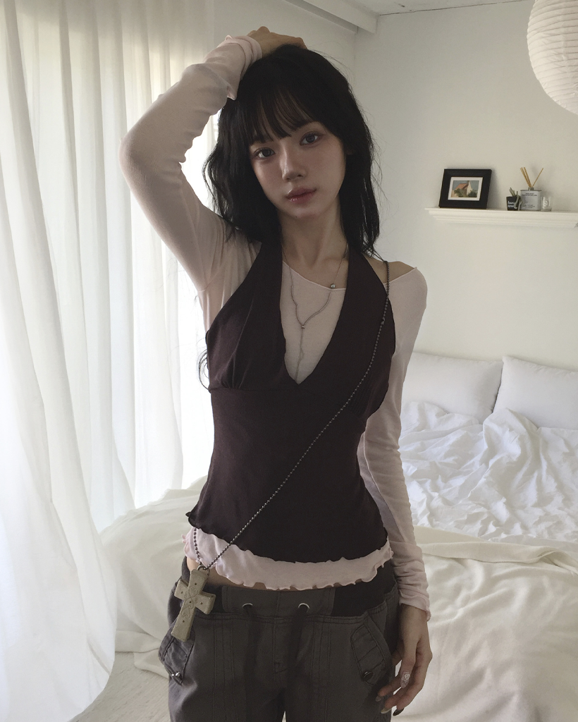 (セット) レイヤード ホルターネック ノースリーブ Tシャツ SET
