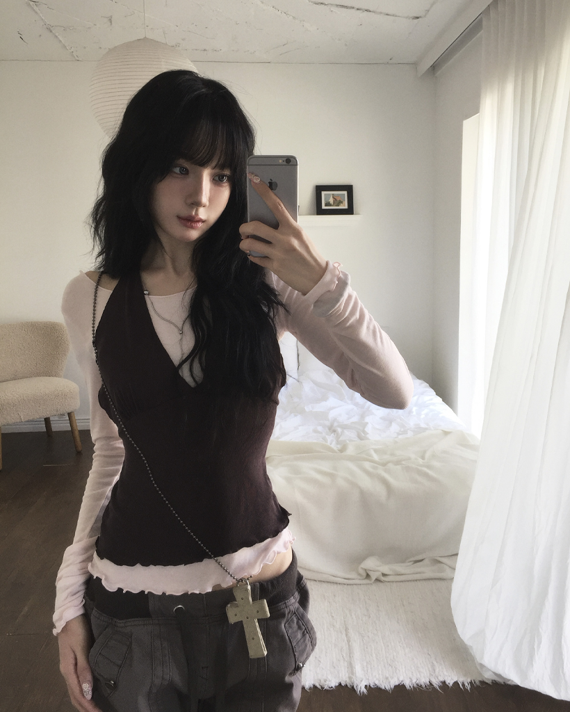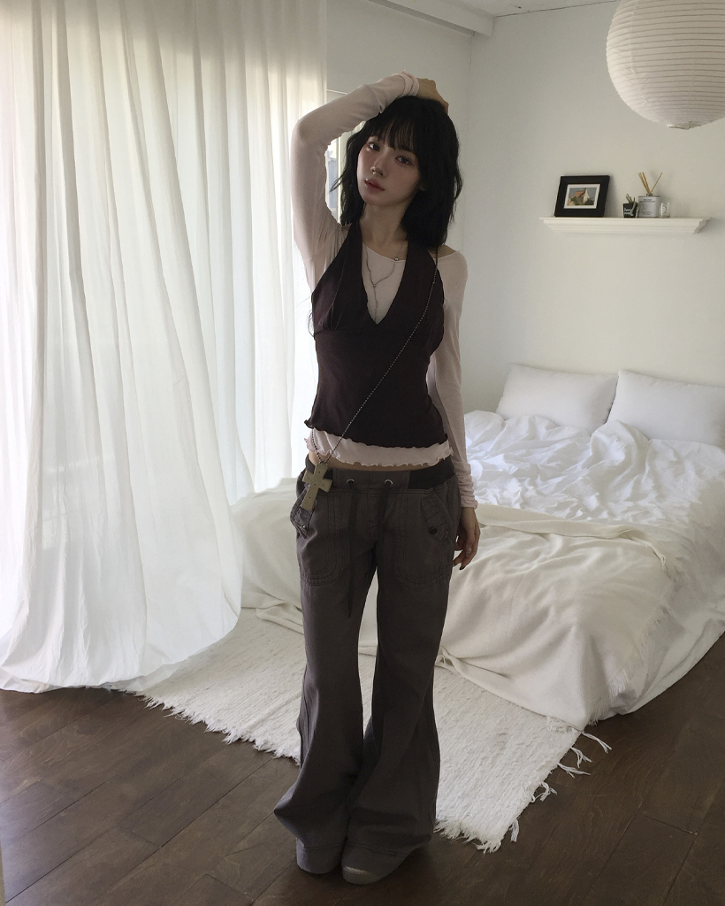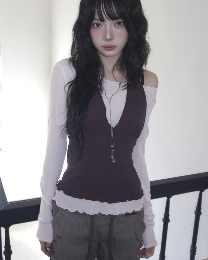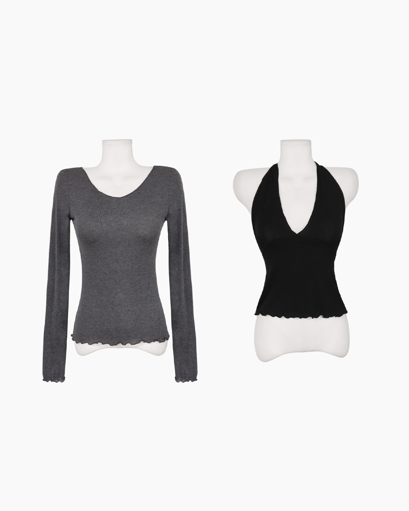 (セット) レイヤード ホルターネック ノースリーブ Tシャツ SET