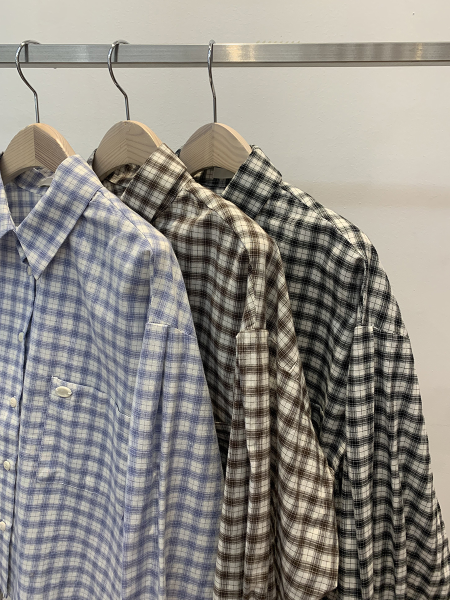 ルーズフィットタック入りパフセミクロップドチェックシャツ