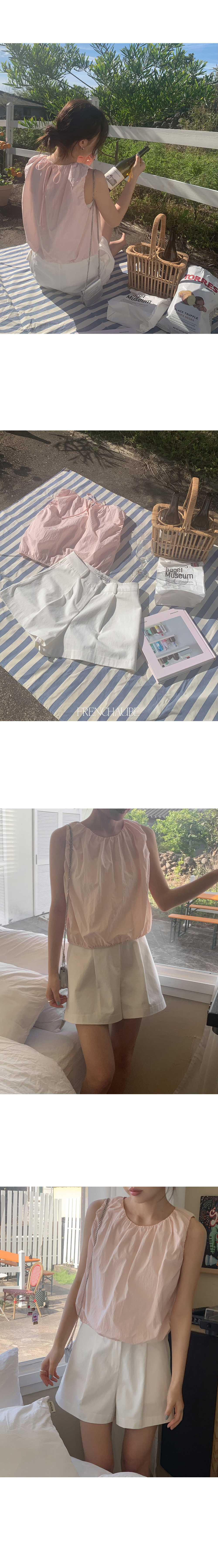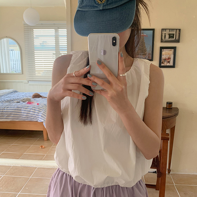 リボンナイロンクロップドノースリーブブラウス
