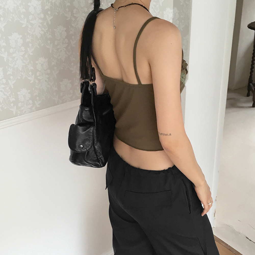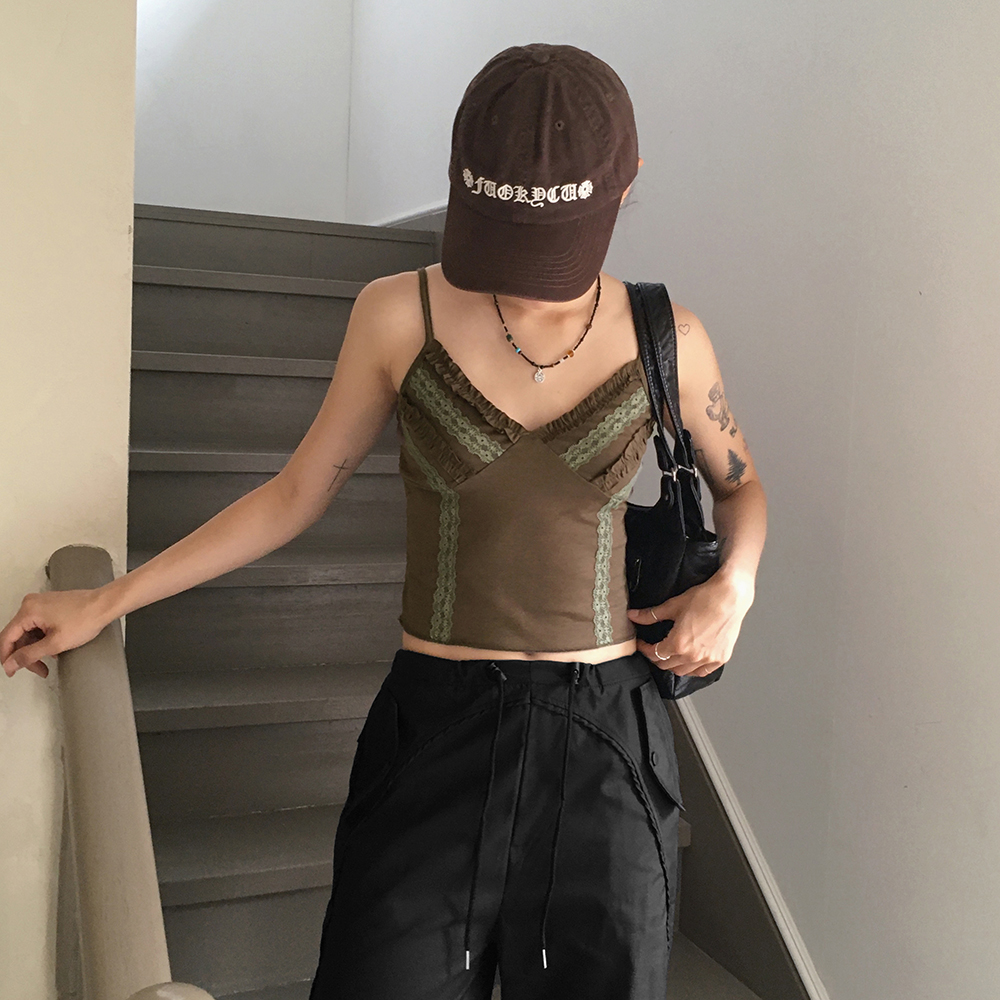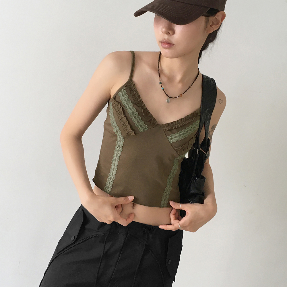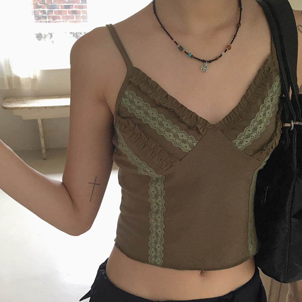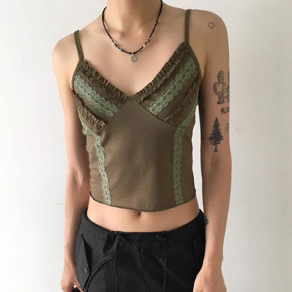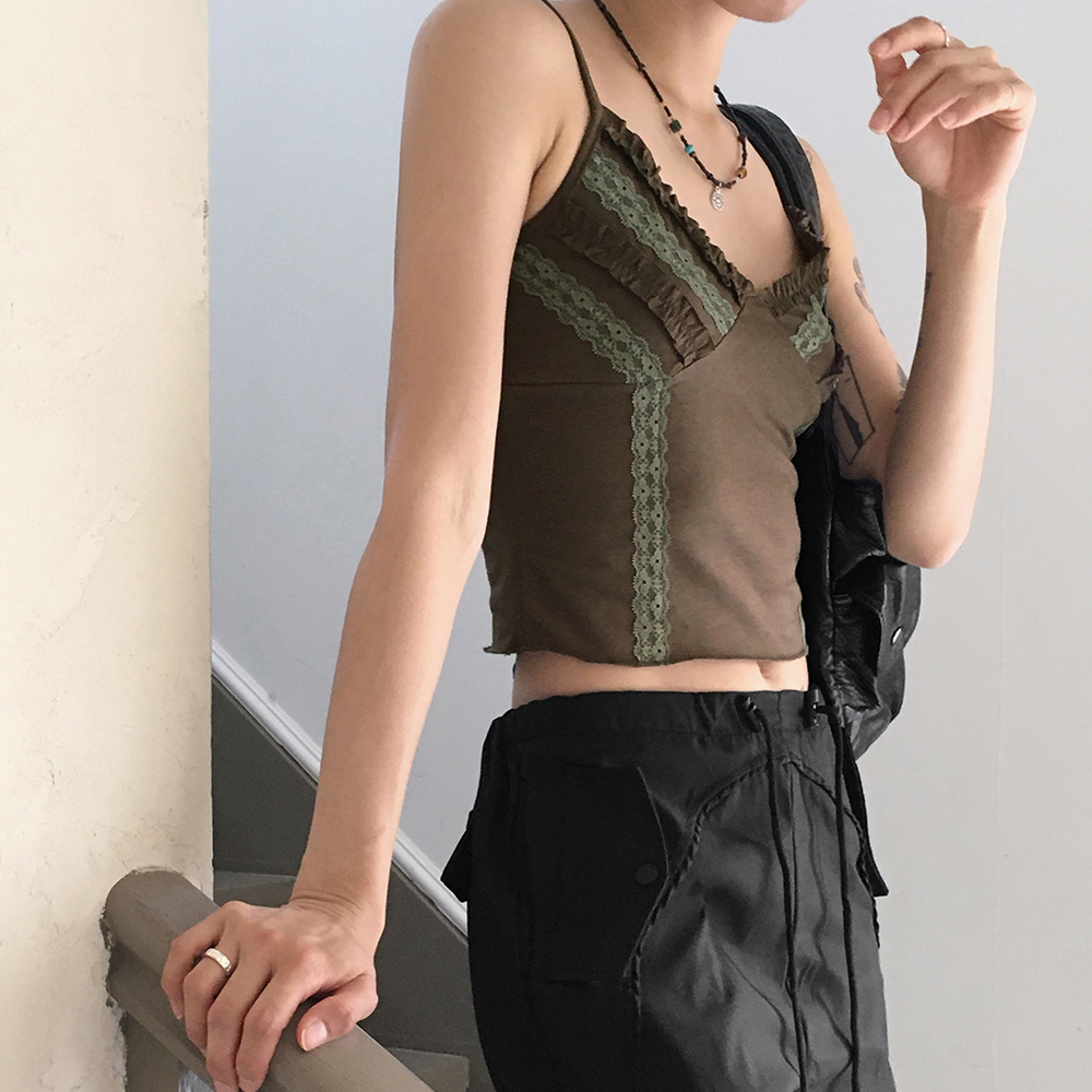 [original]ヴィンテージレースバイカラーVネックノースリーブ