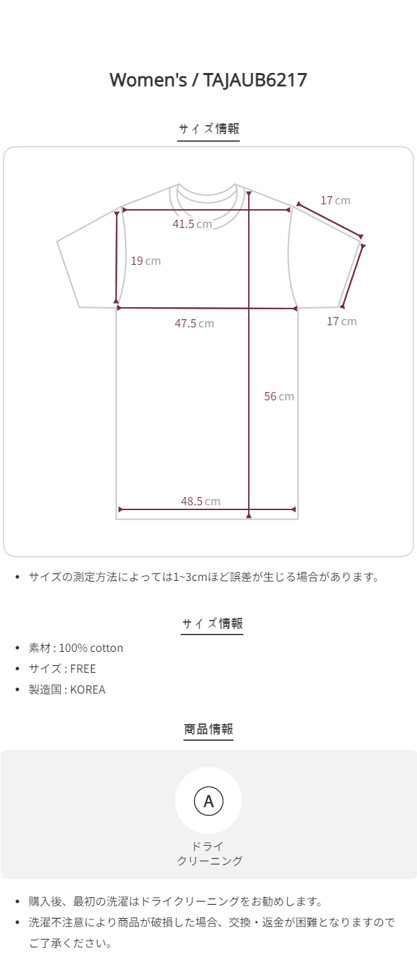 어깨41.5/가슴47.5/암홀19/팔기장17/소매단면17/밑단48.5/총장56