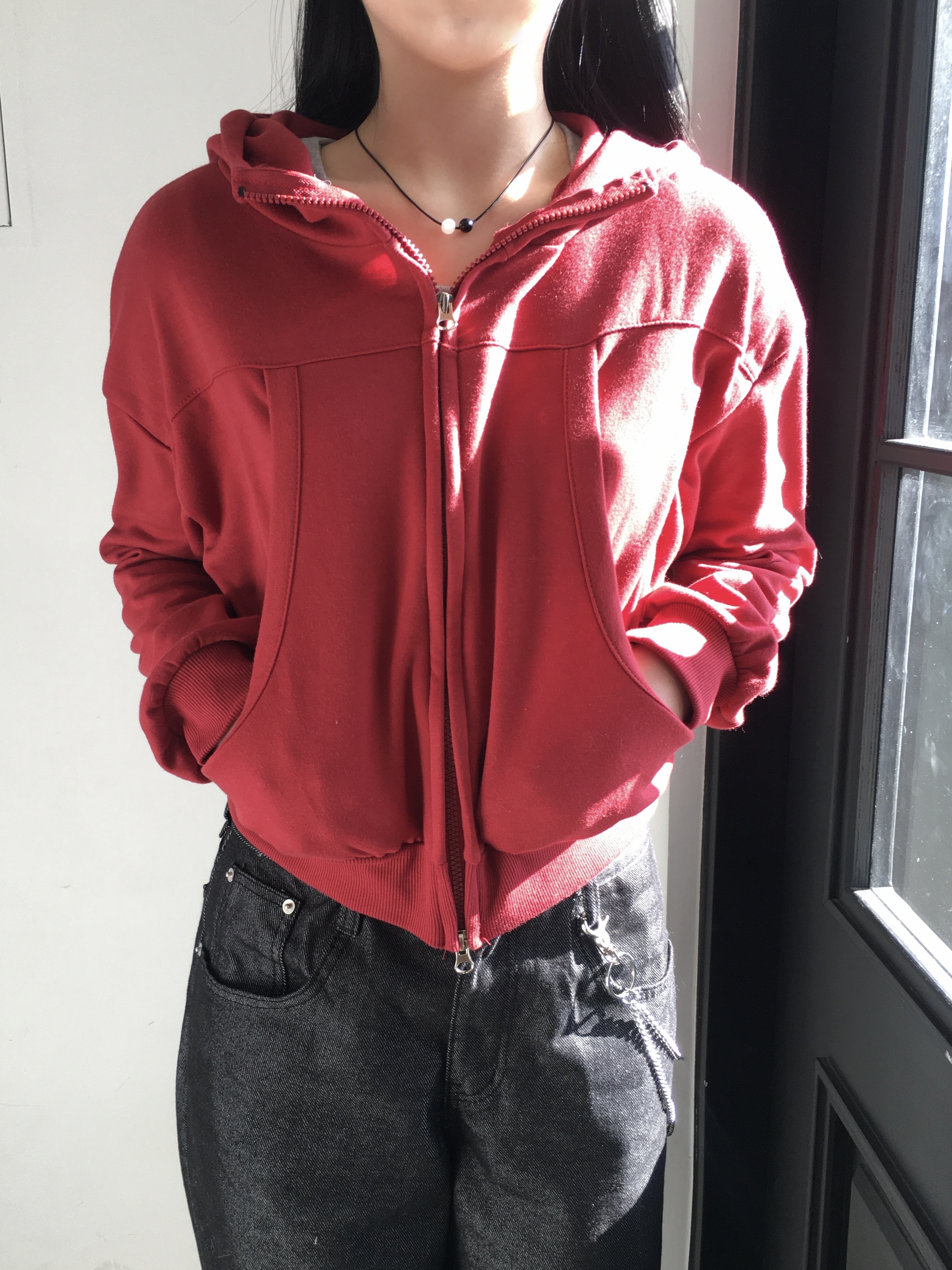 (7color)ハイネックマルチパネルジップアップパーカー