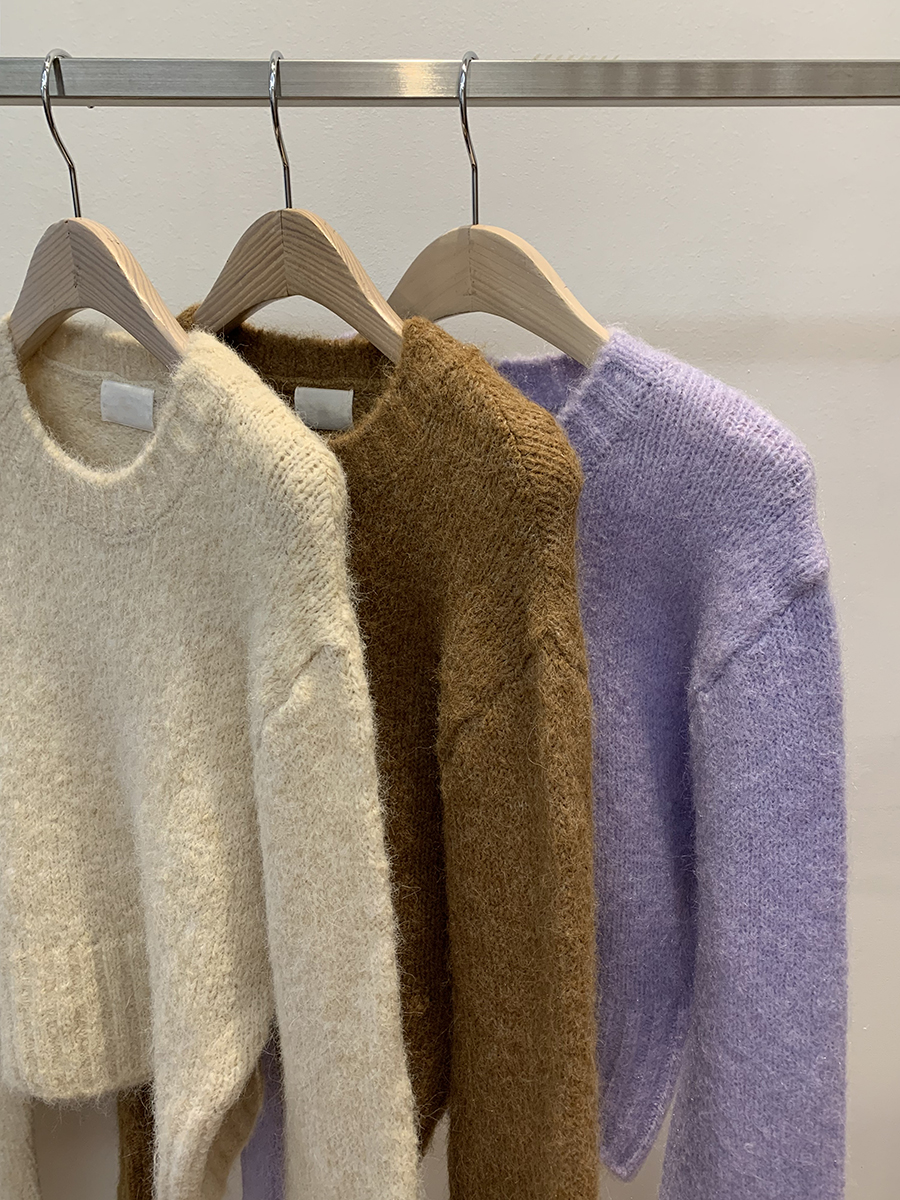 ウールラウンドセミクロップド絞りニット