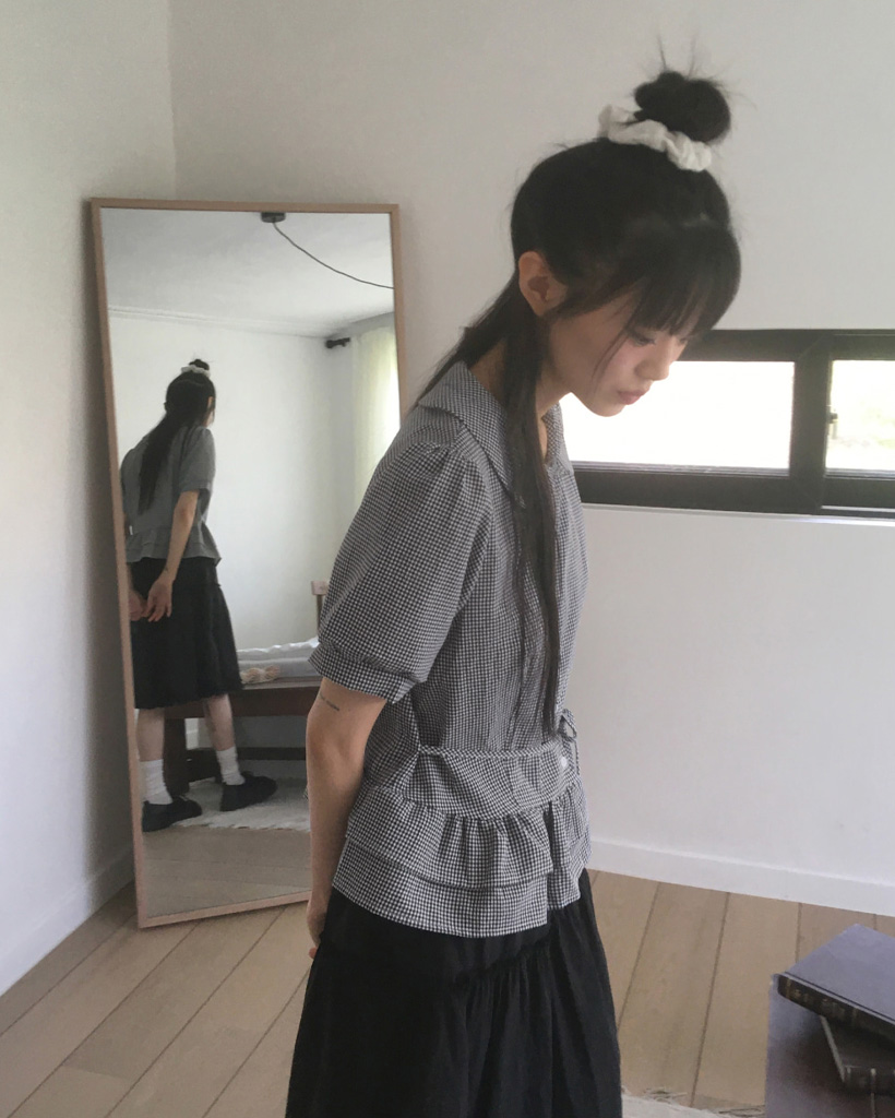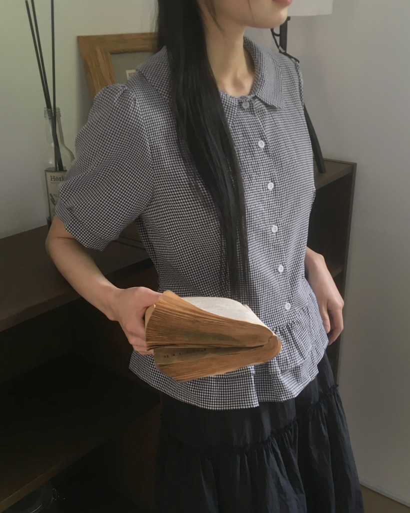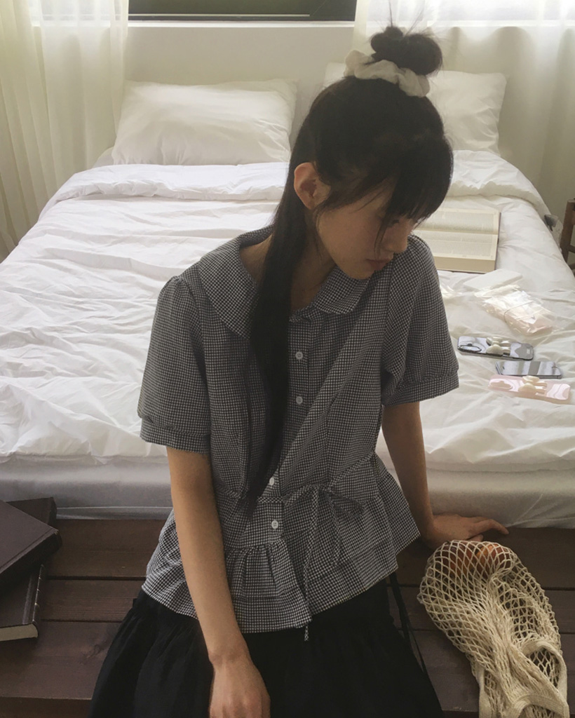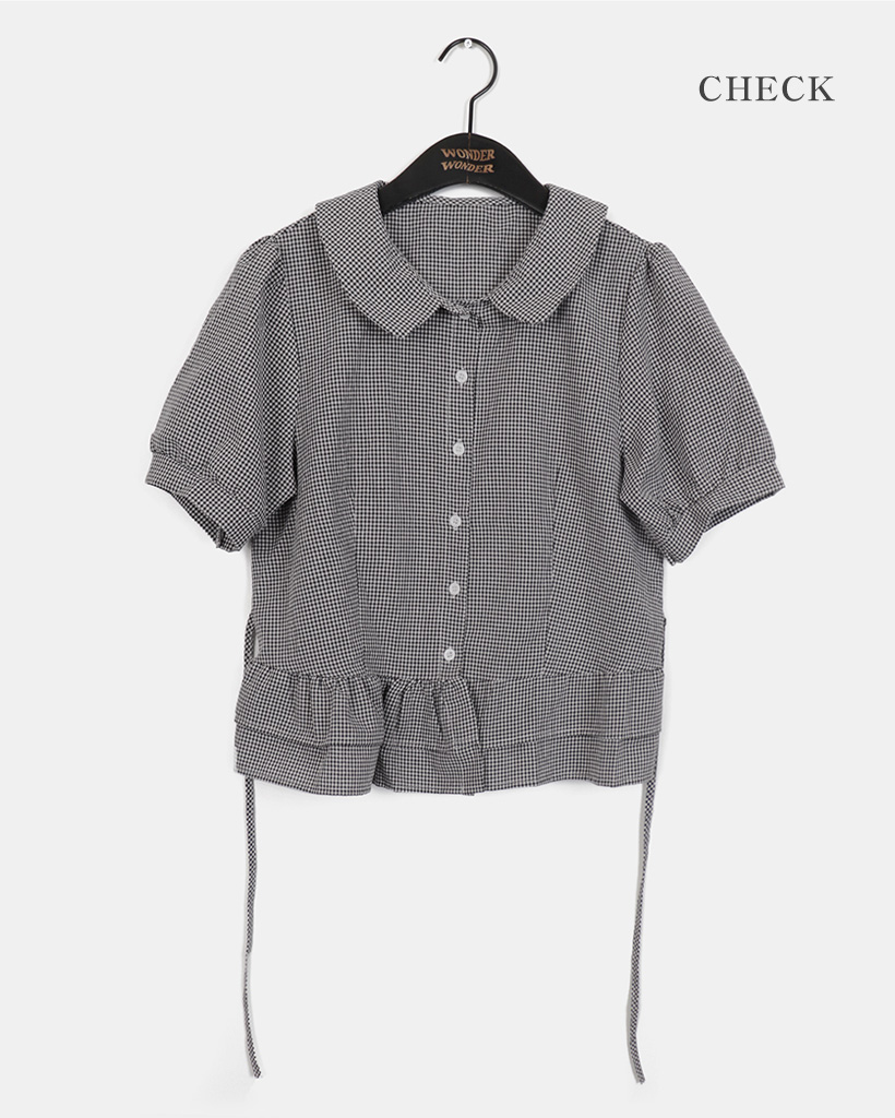 ラウンドカラーフリルパフブラウス