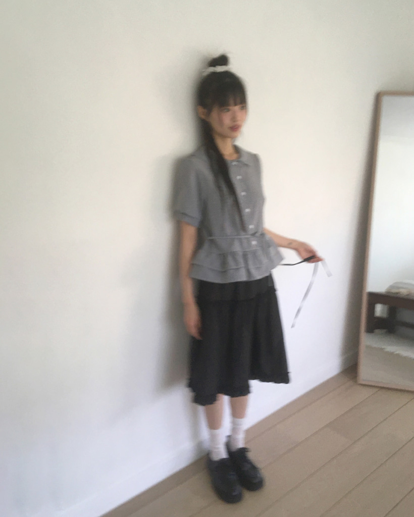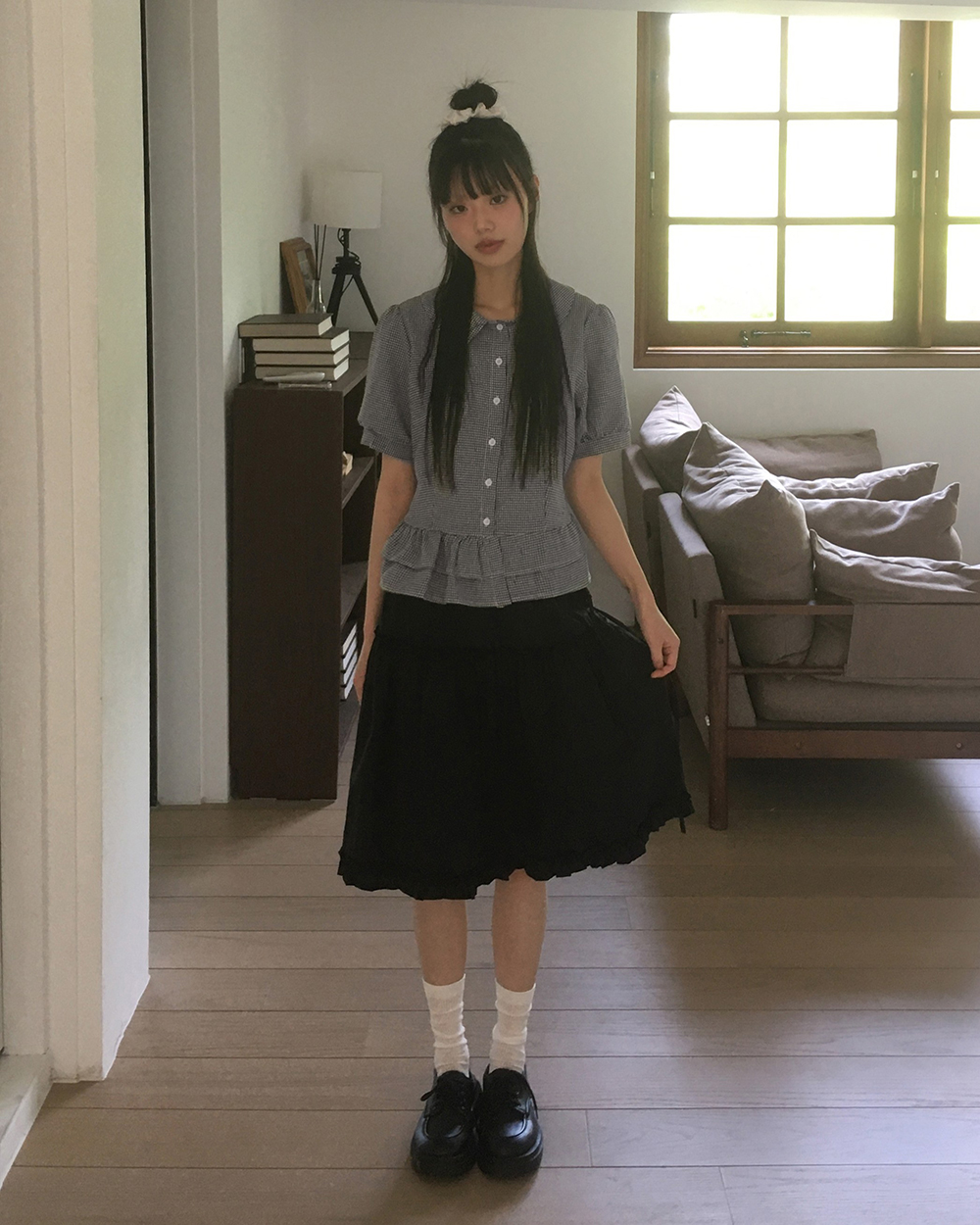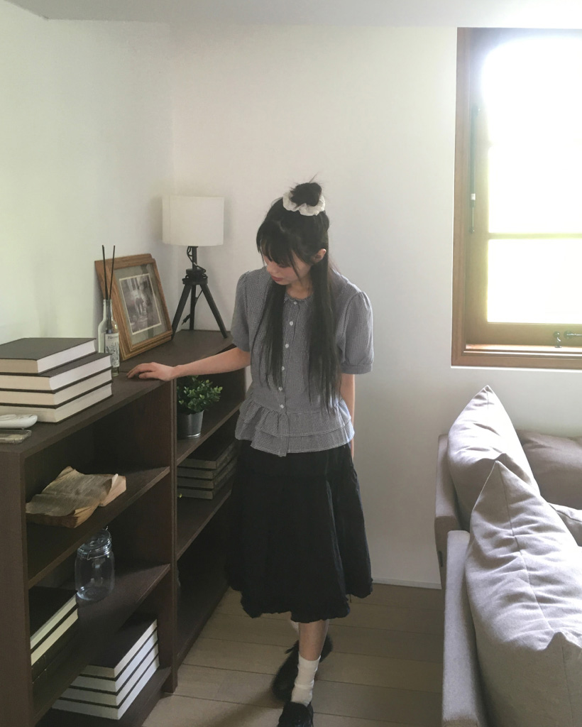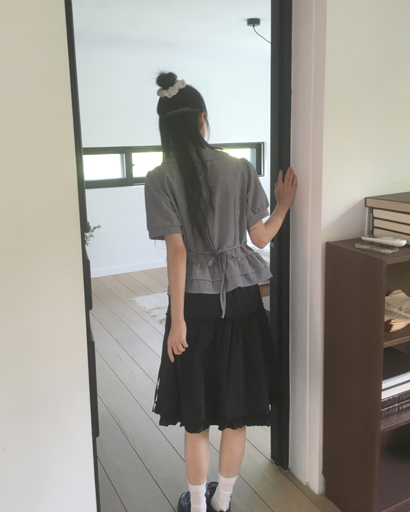 ラウンドカラーフリルパフブラウス