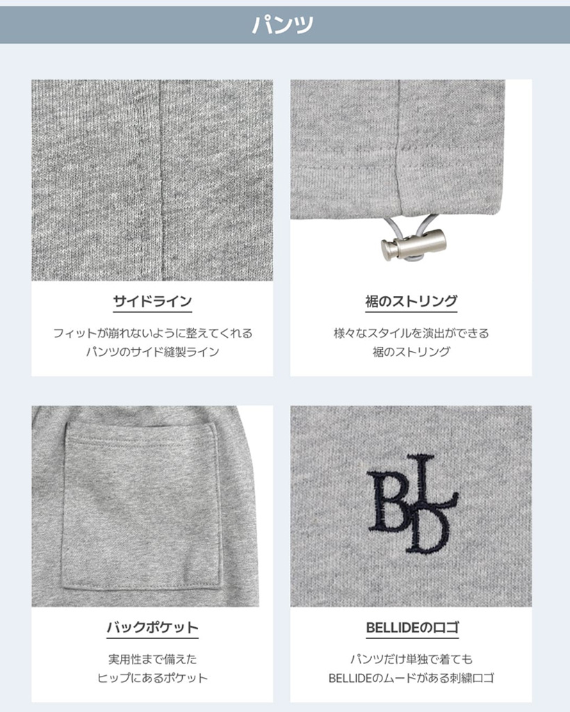 パンツだけ単独で着てもBELLIDEのムードがある刺繍ロゴ