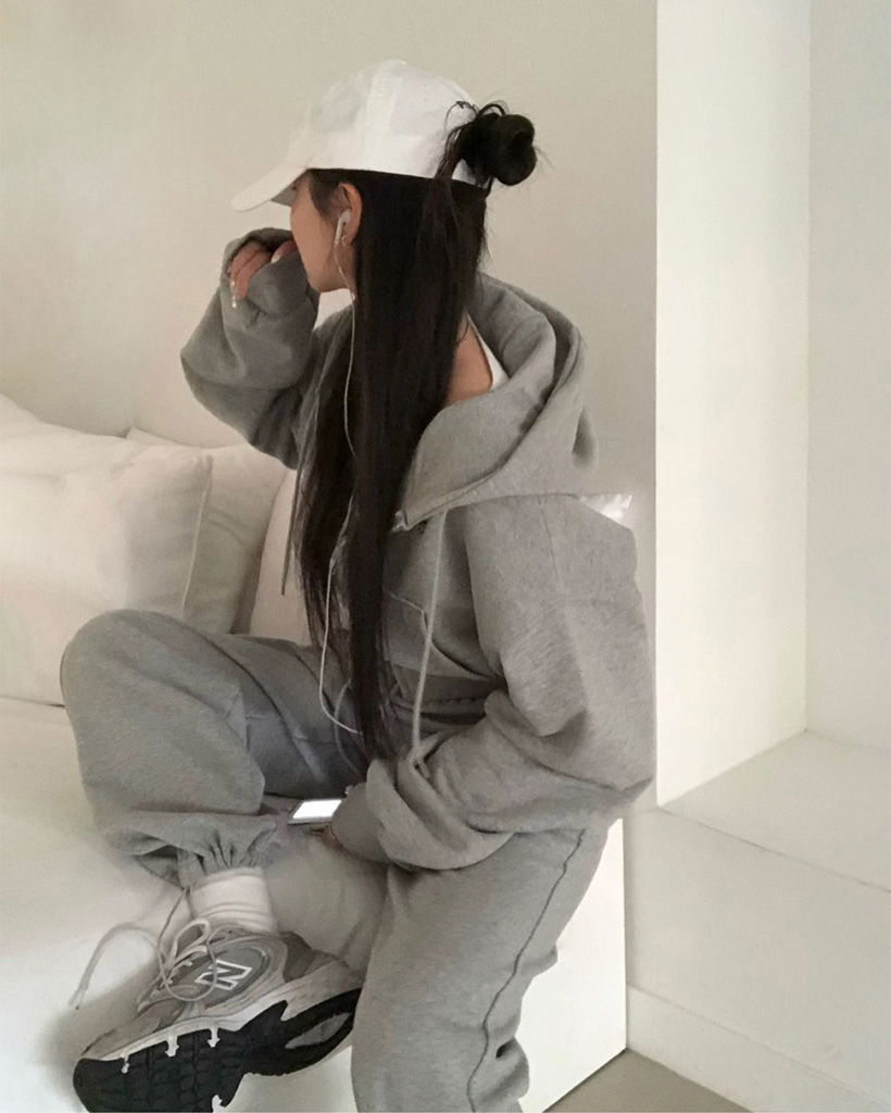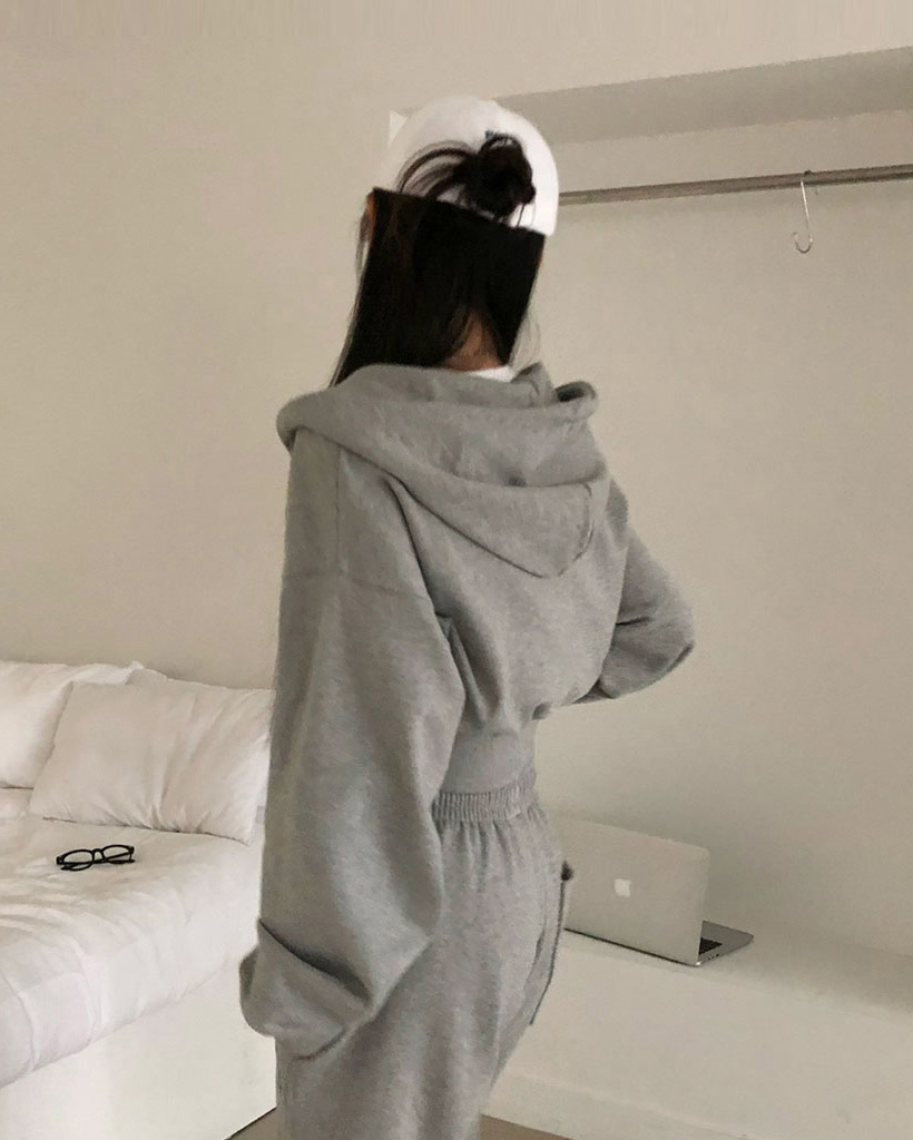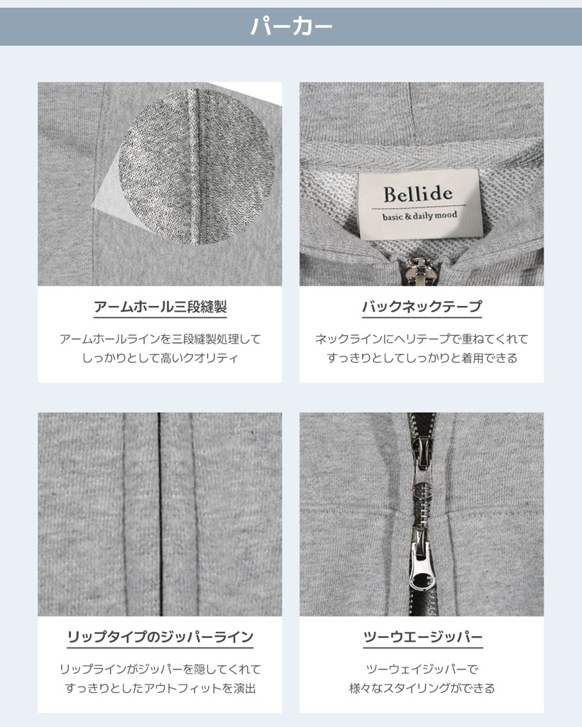 ジップアップパーカーは高くてしっかりとした裾でくびれたスリムなウエストラインを演出でき、