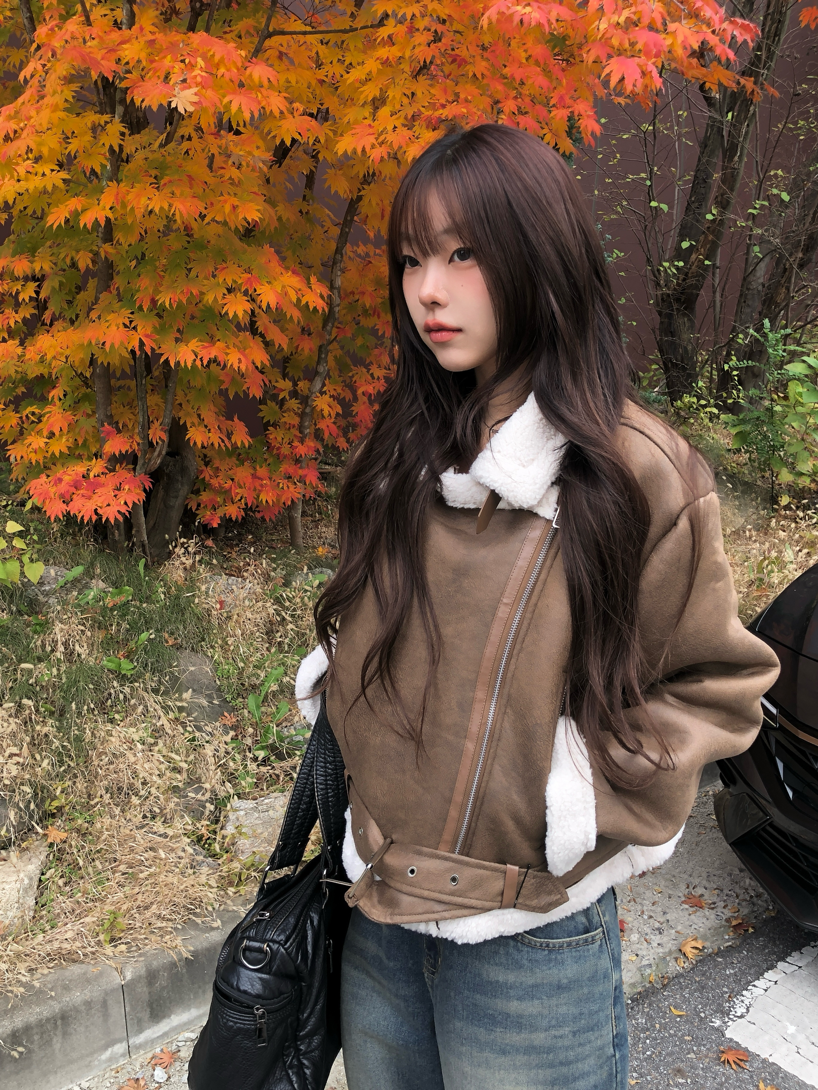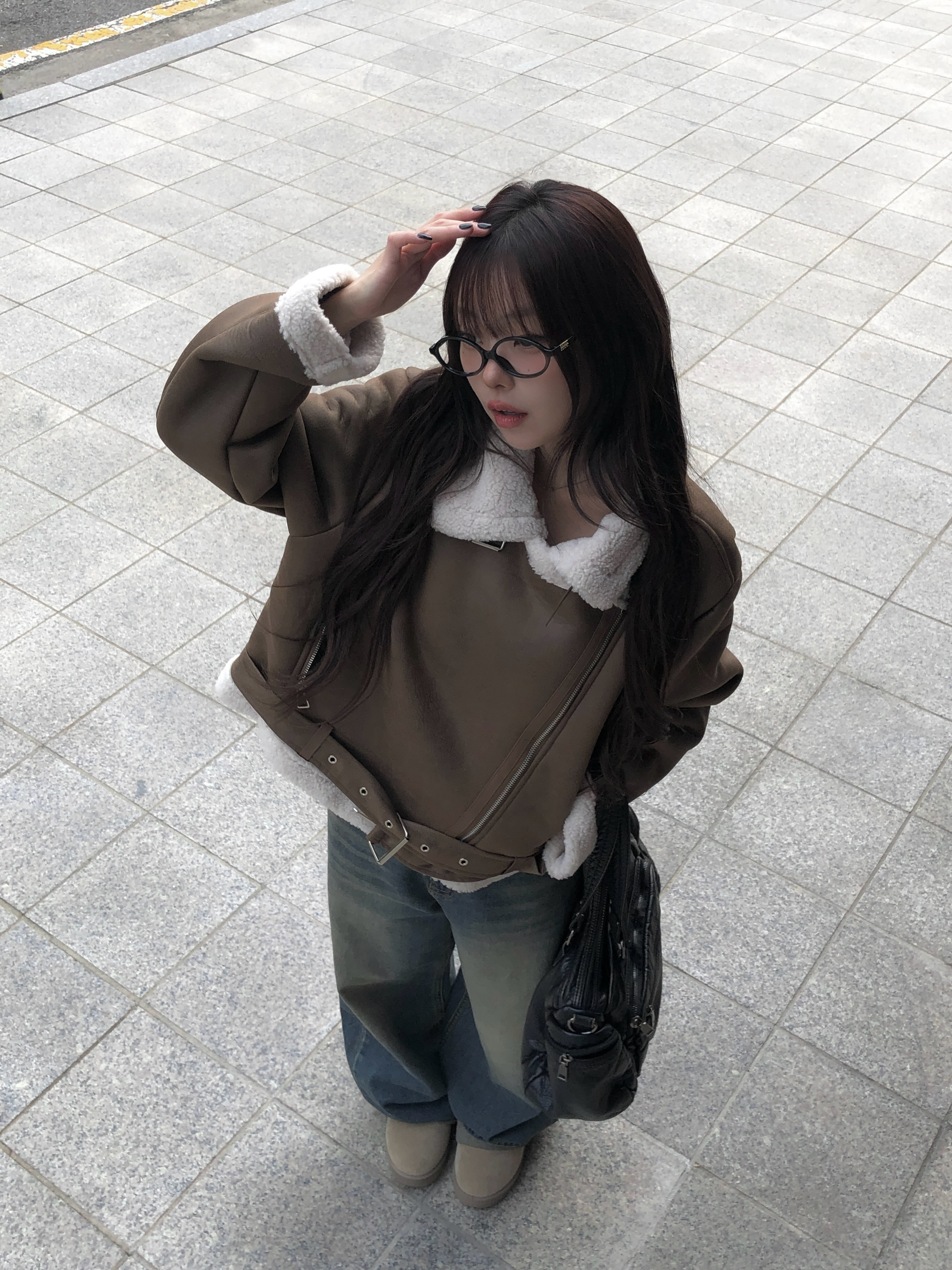 袖口と裾ライン、襟にボア裏地が見えて