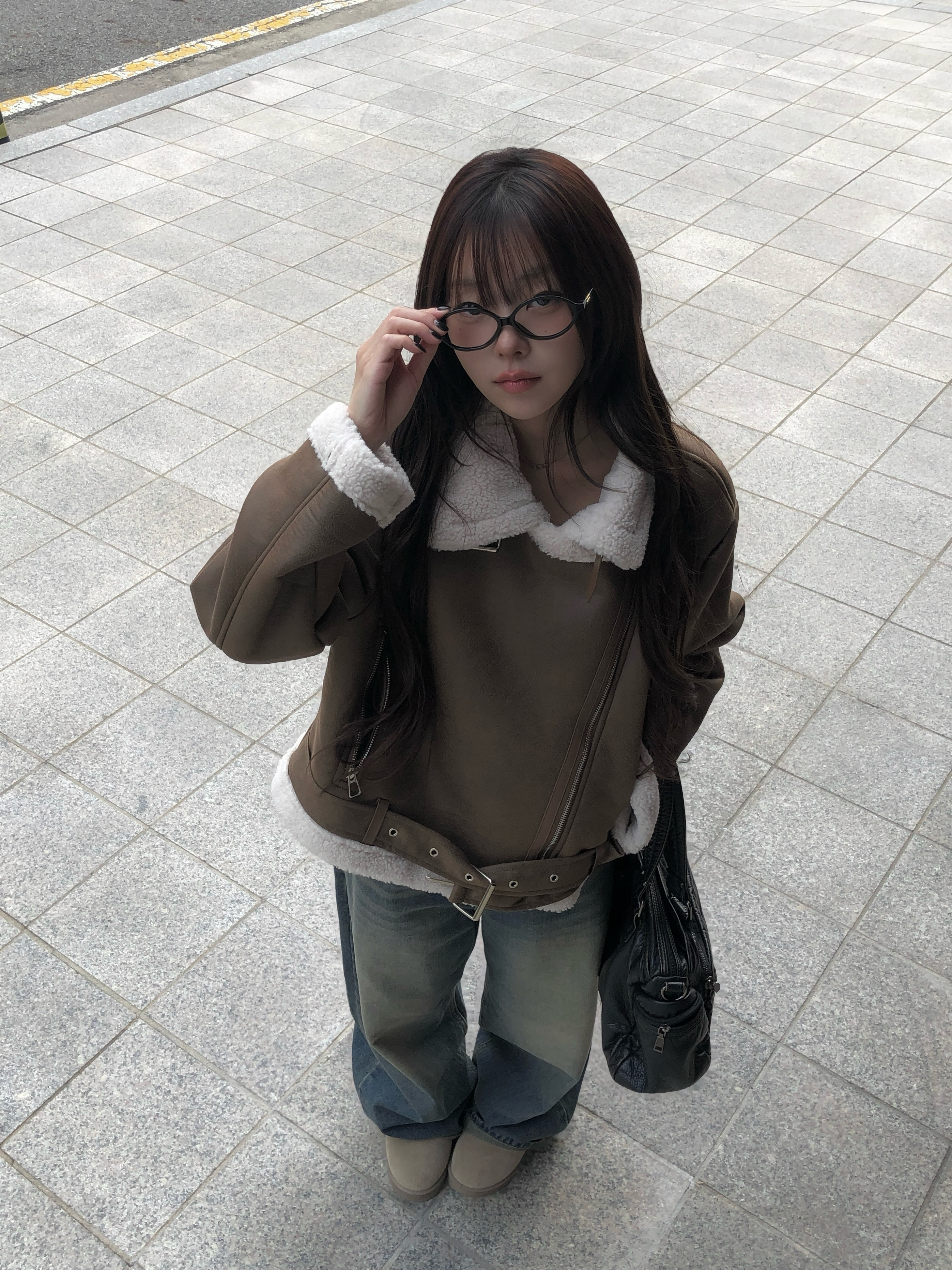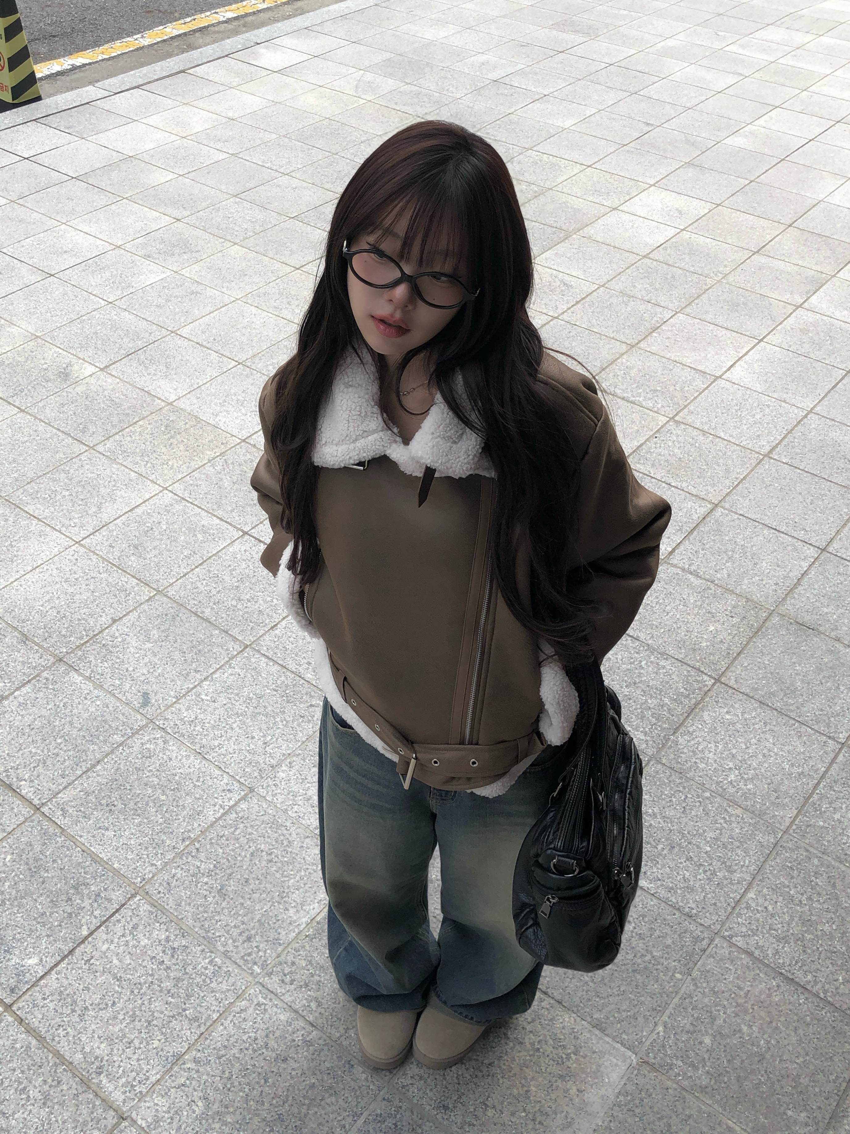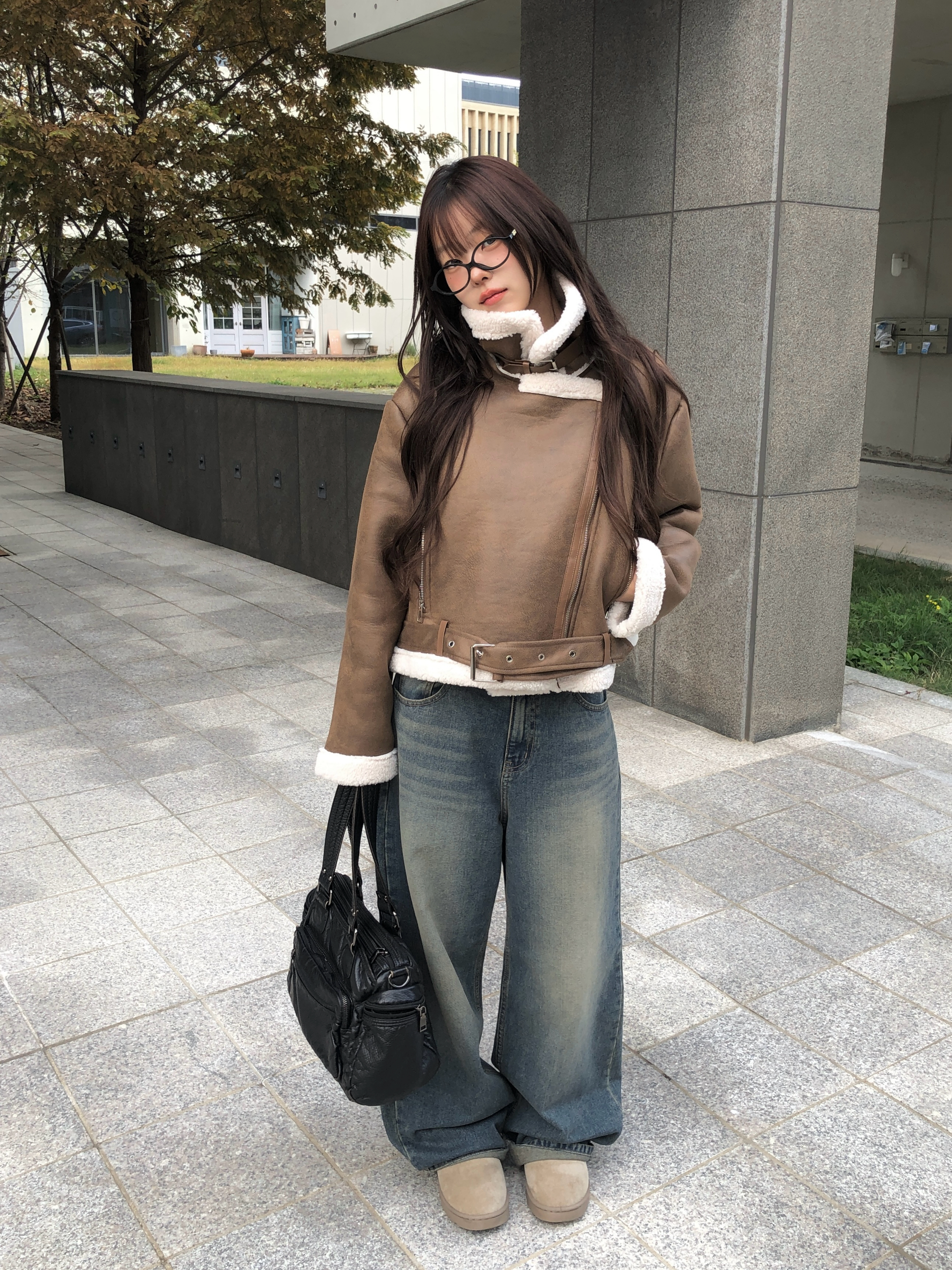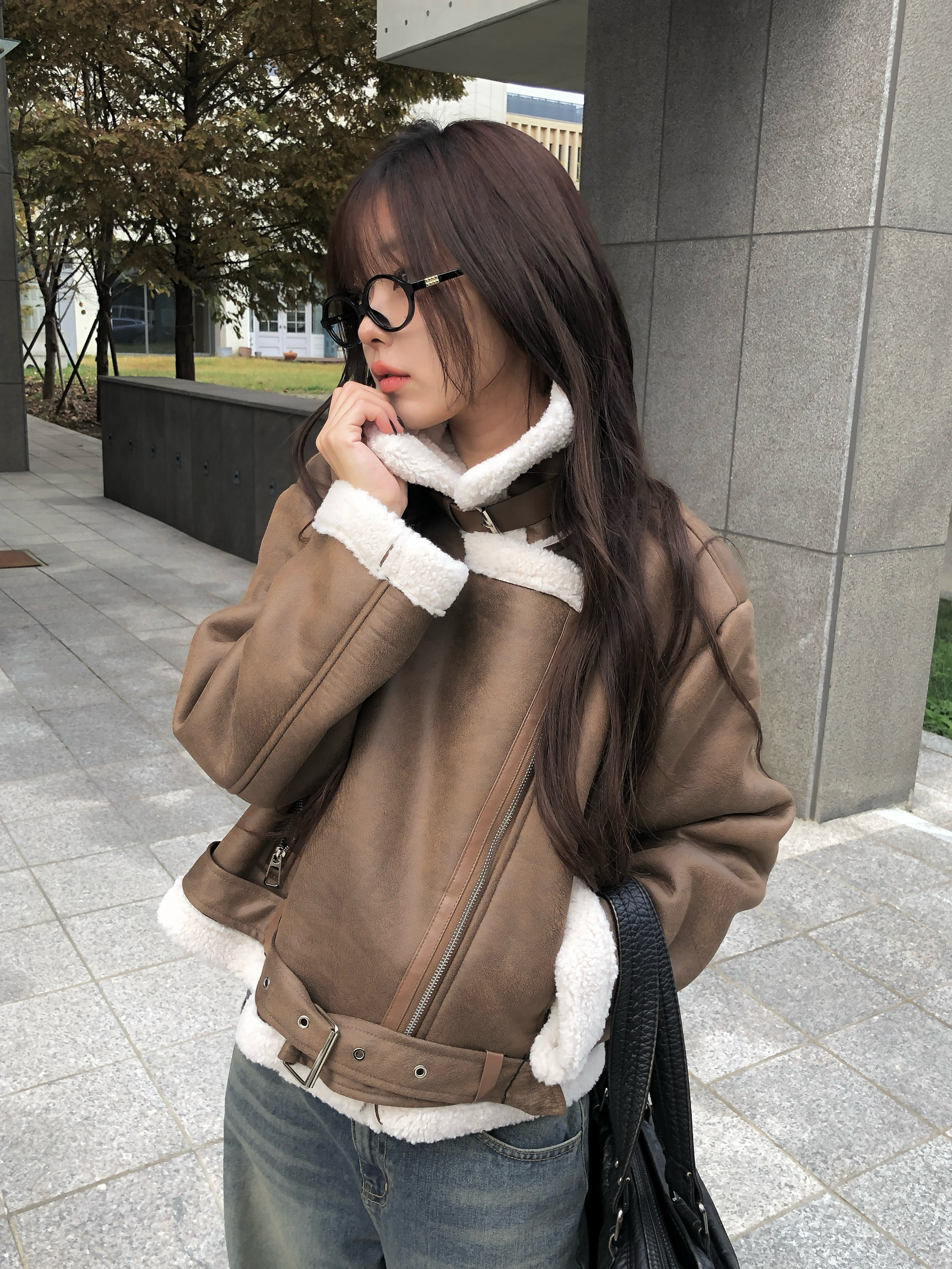 裾バックルベルトスエード調ボアムートンジャケット