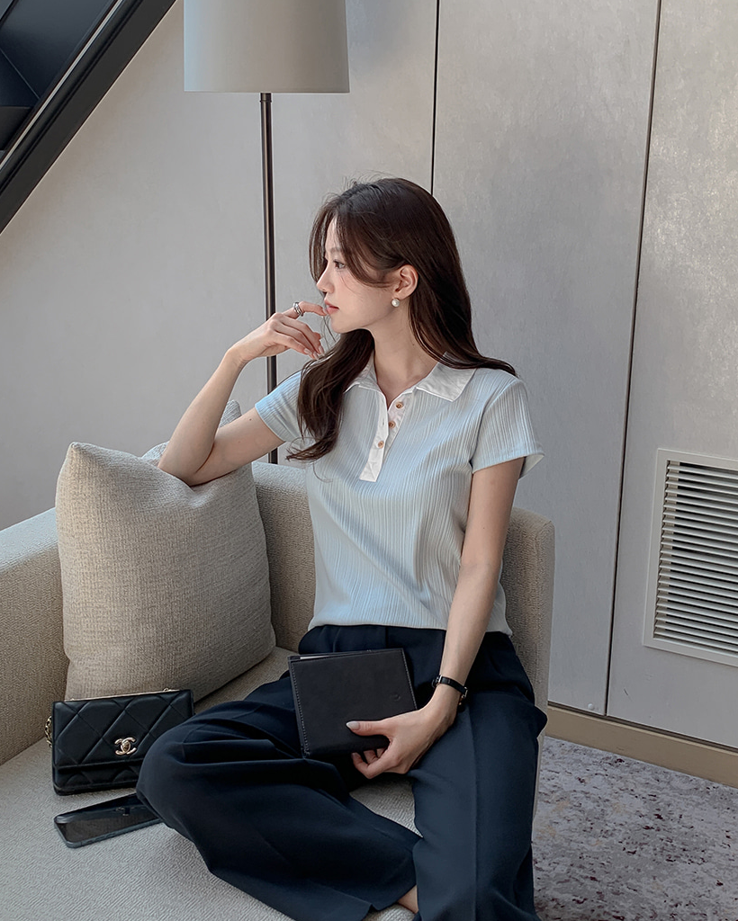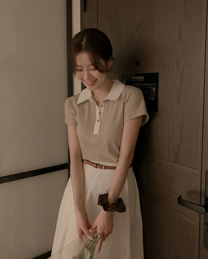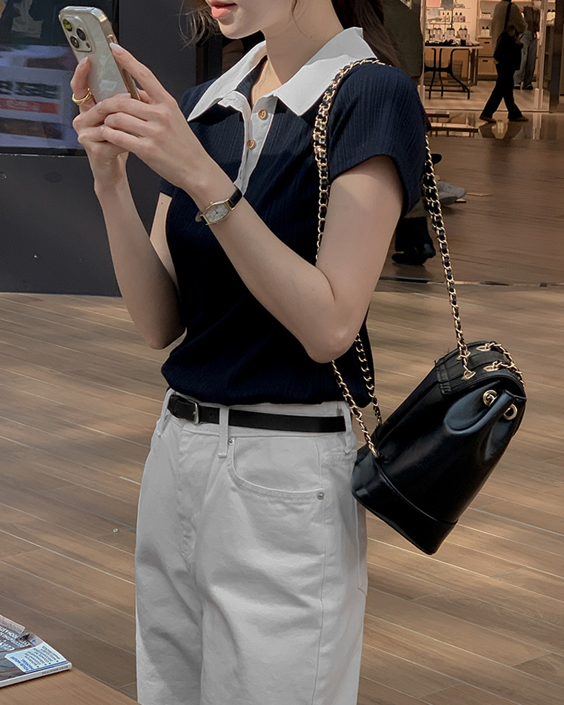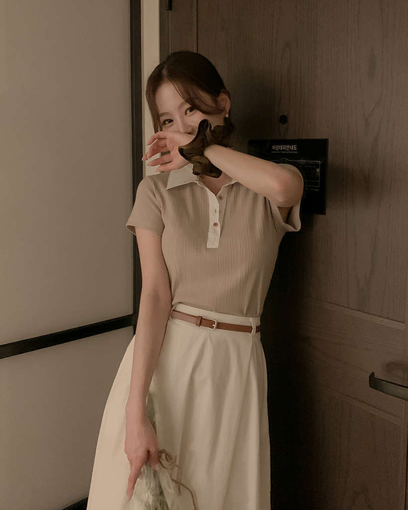 リブ半袖ニットポロシャツ
